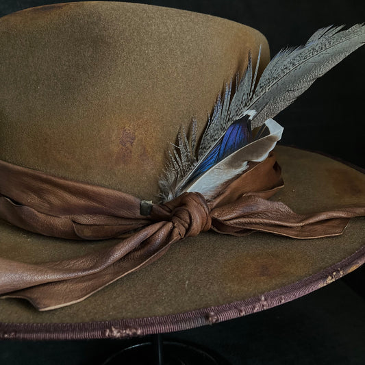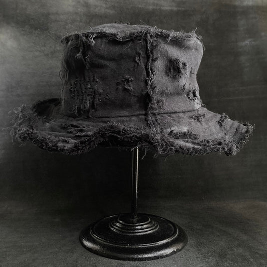 バーンや染め、ペイント、ブリーチなど実験的な加工と手の動きから制作していく帽子。1点1点大切に、デザイナーがハンドメイドで作りあげます。