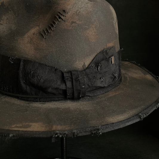 Burned stain damage fedora hat