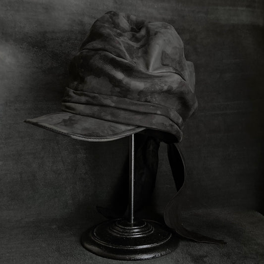 Bleaching black leather martial turn cap