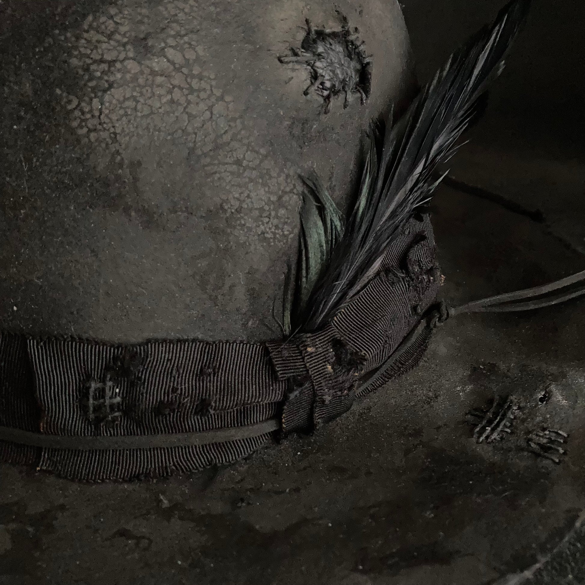 Decoration: grosgrain ribbon, leather, leather cord, feather