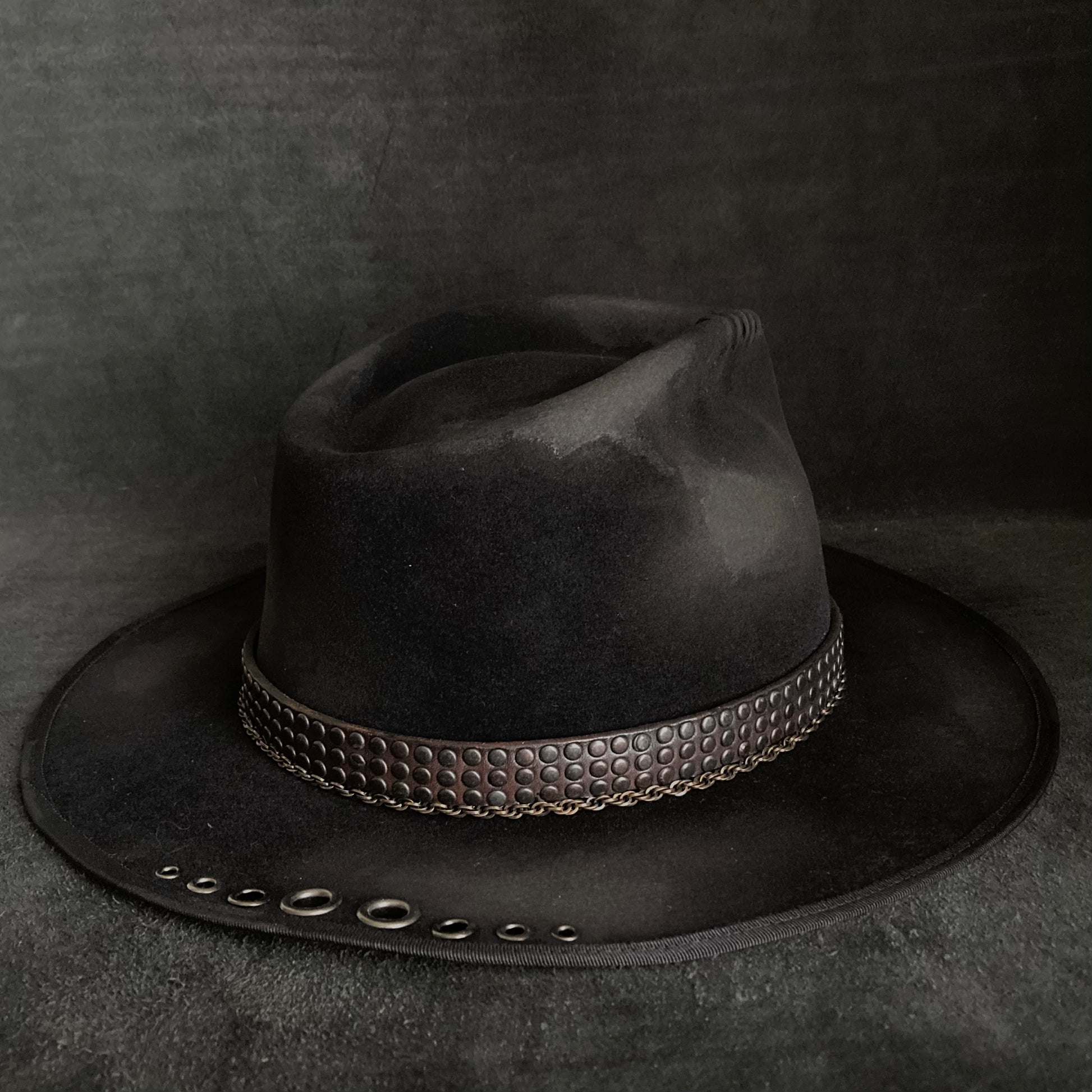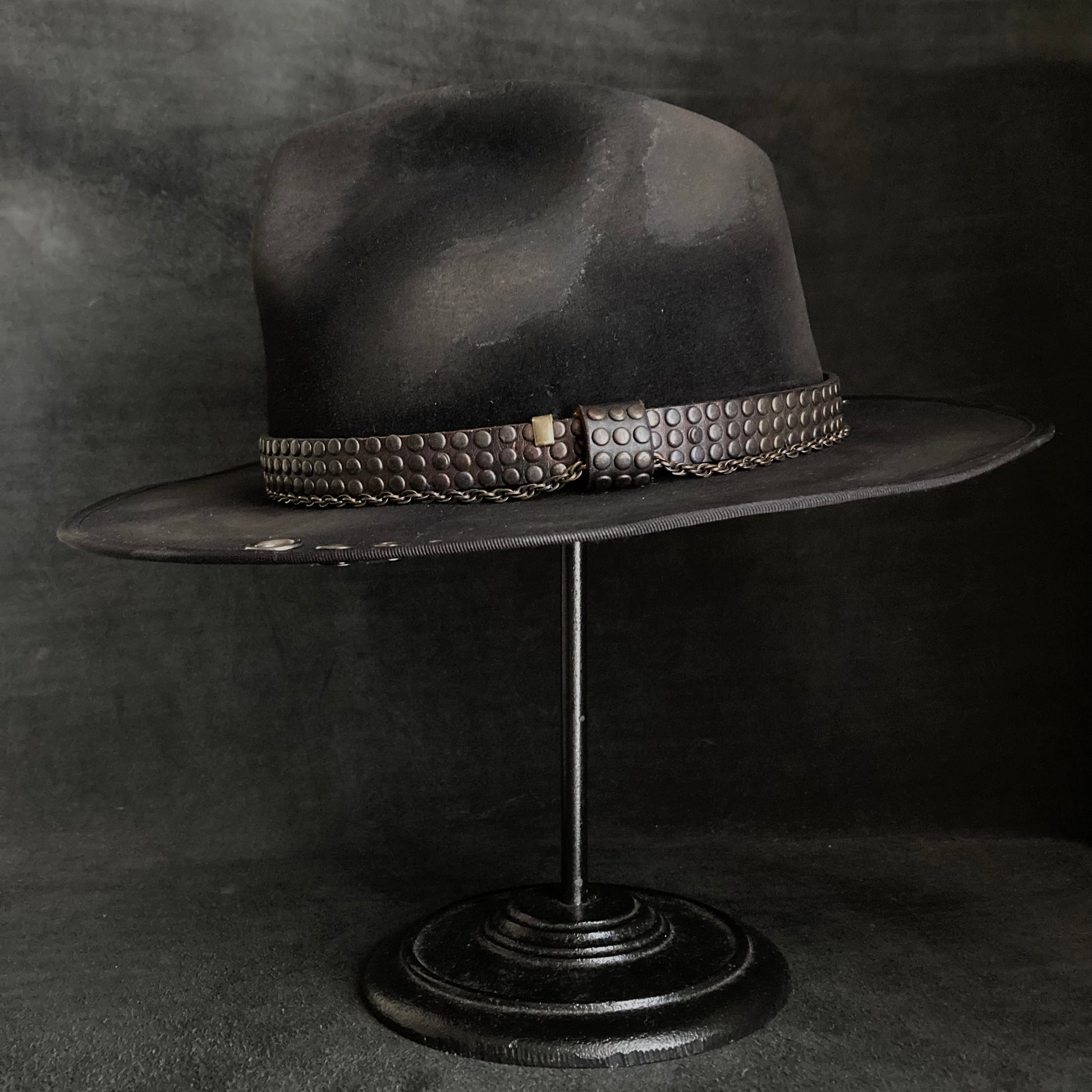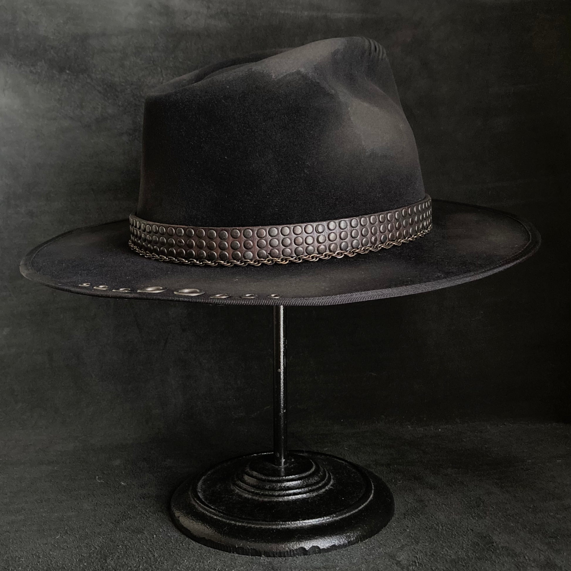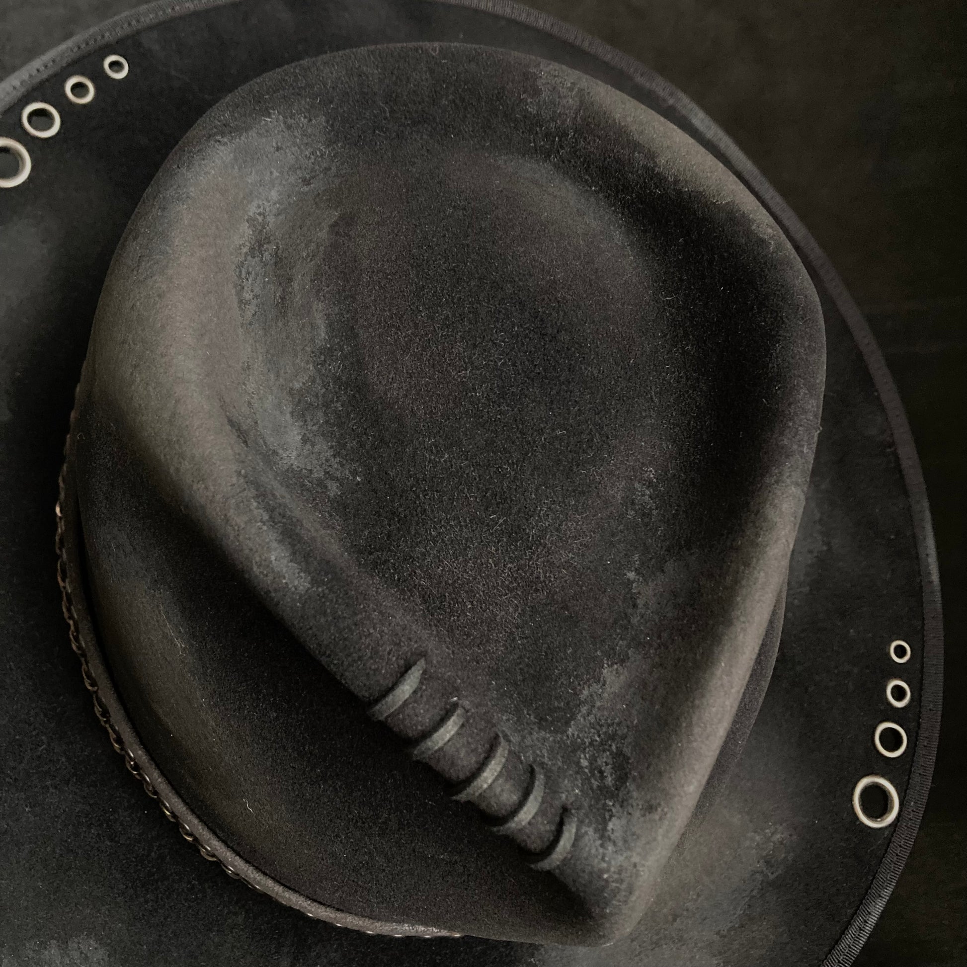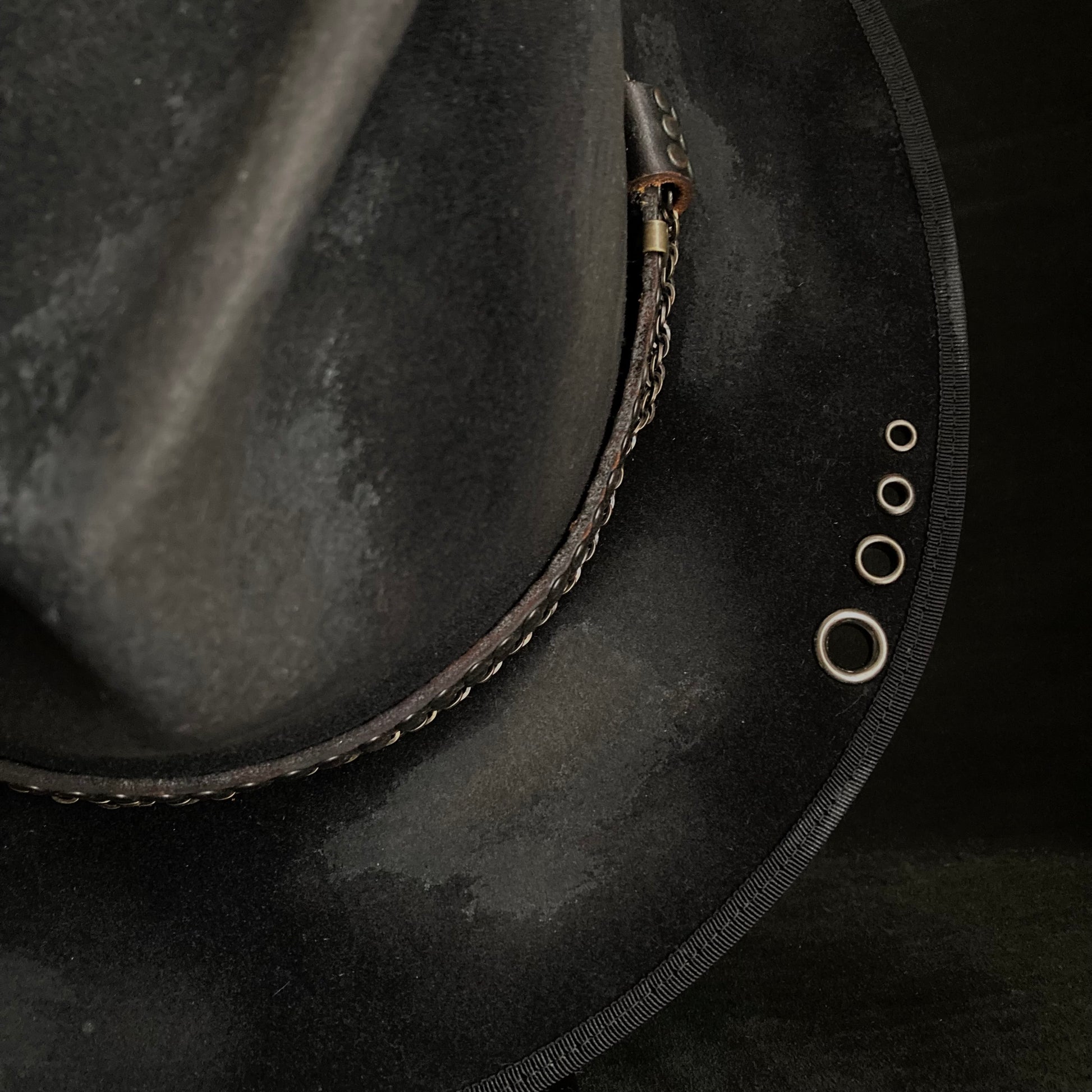 また、ブリムに飾りハトメを打ち込んでいます。
