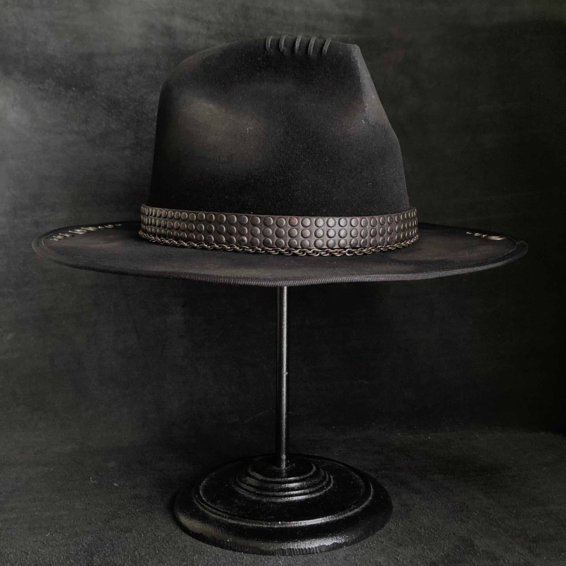 上質なブラックのラビット素材を使用した中折れハット。