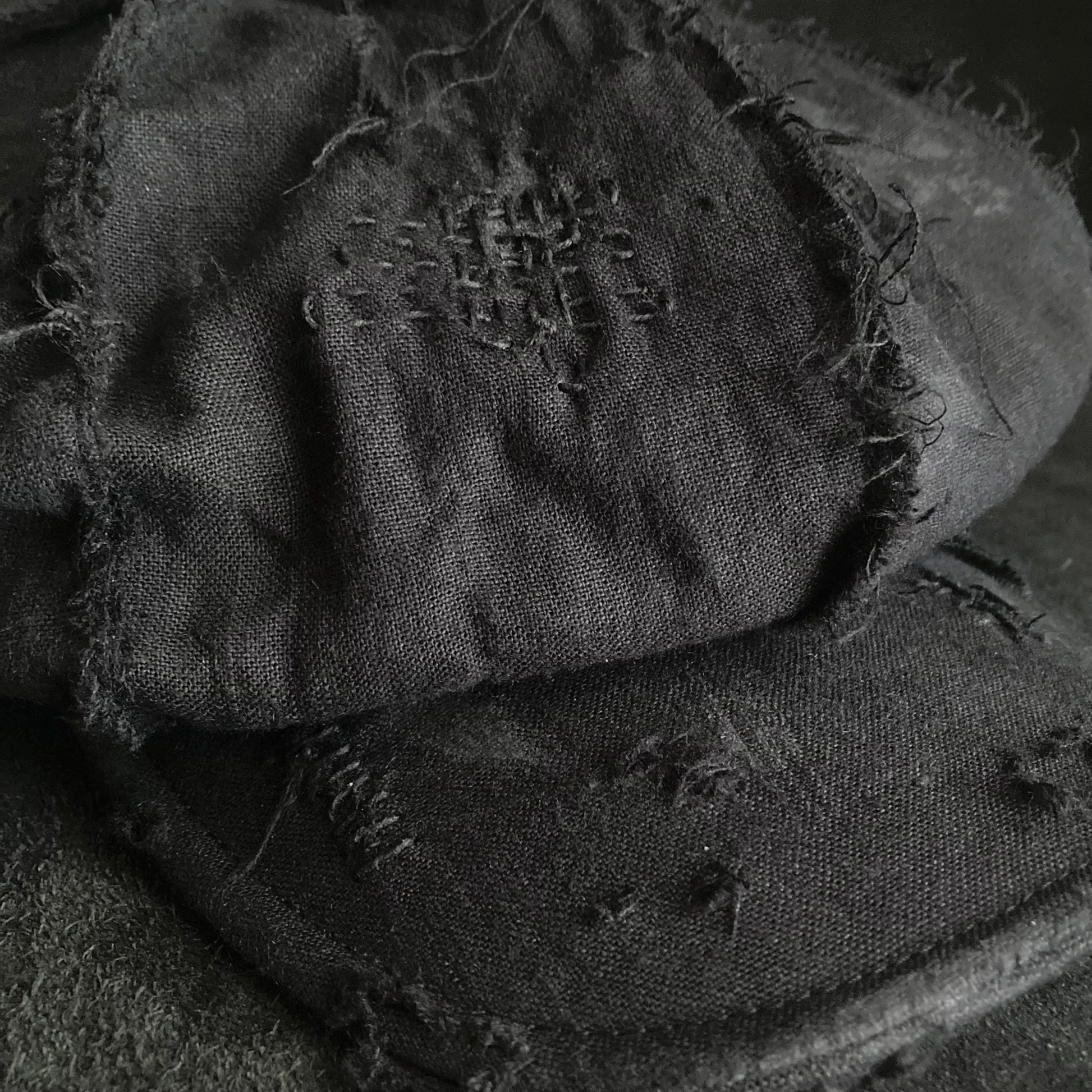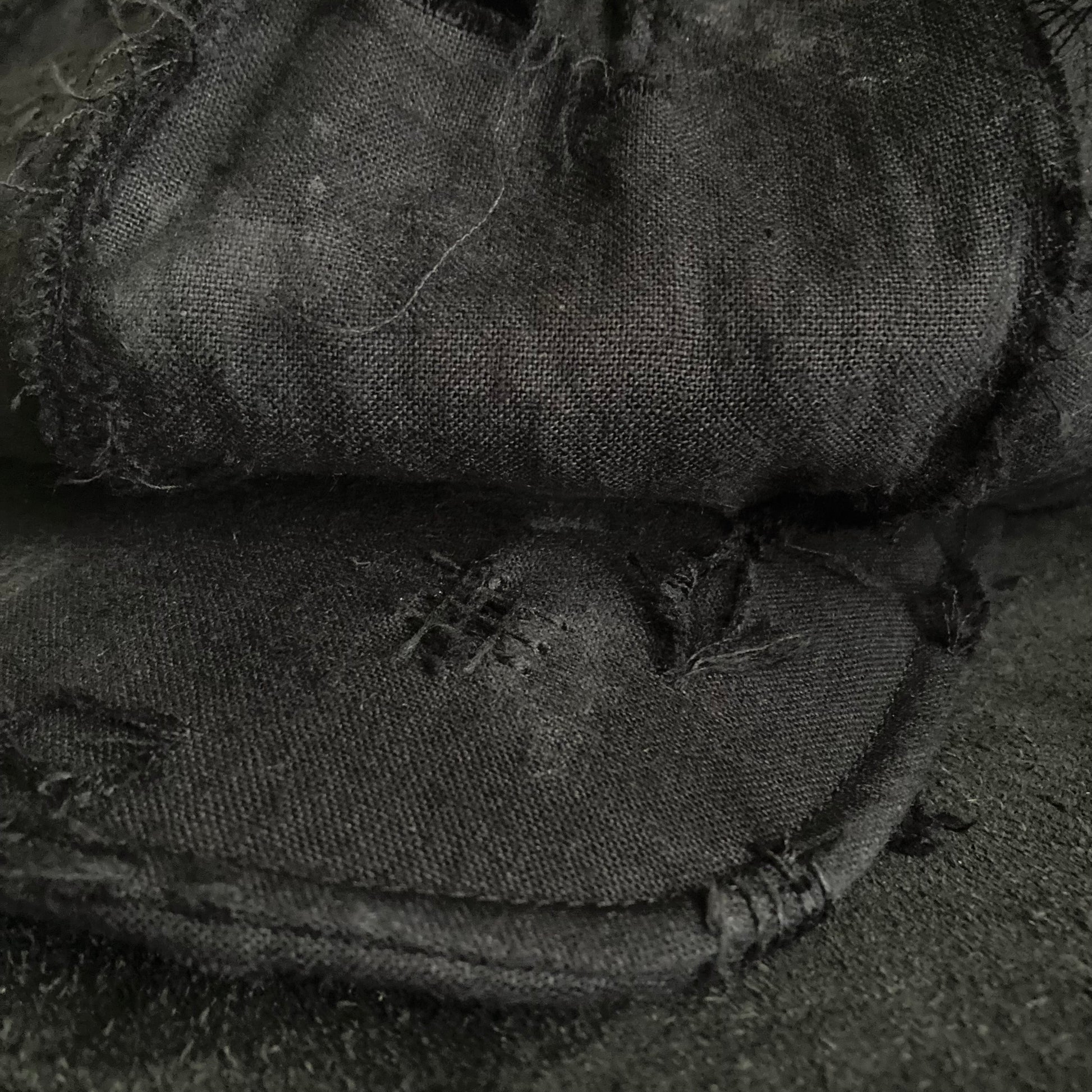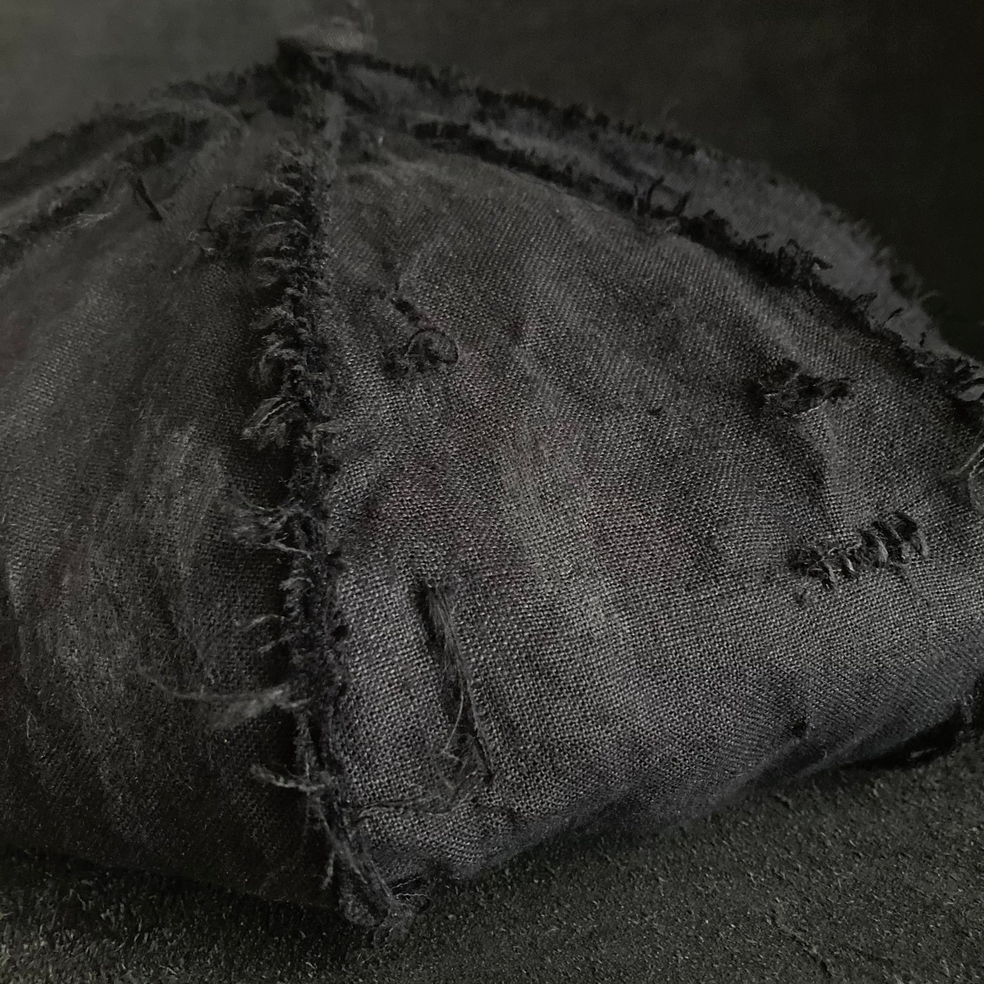 ブラックのリネン生地をダメージ&汚し加工をして、制作しています。
