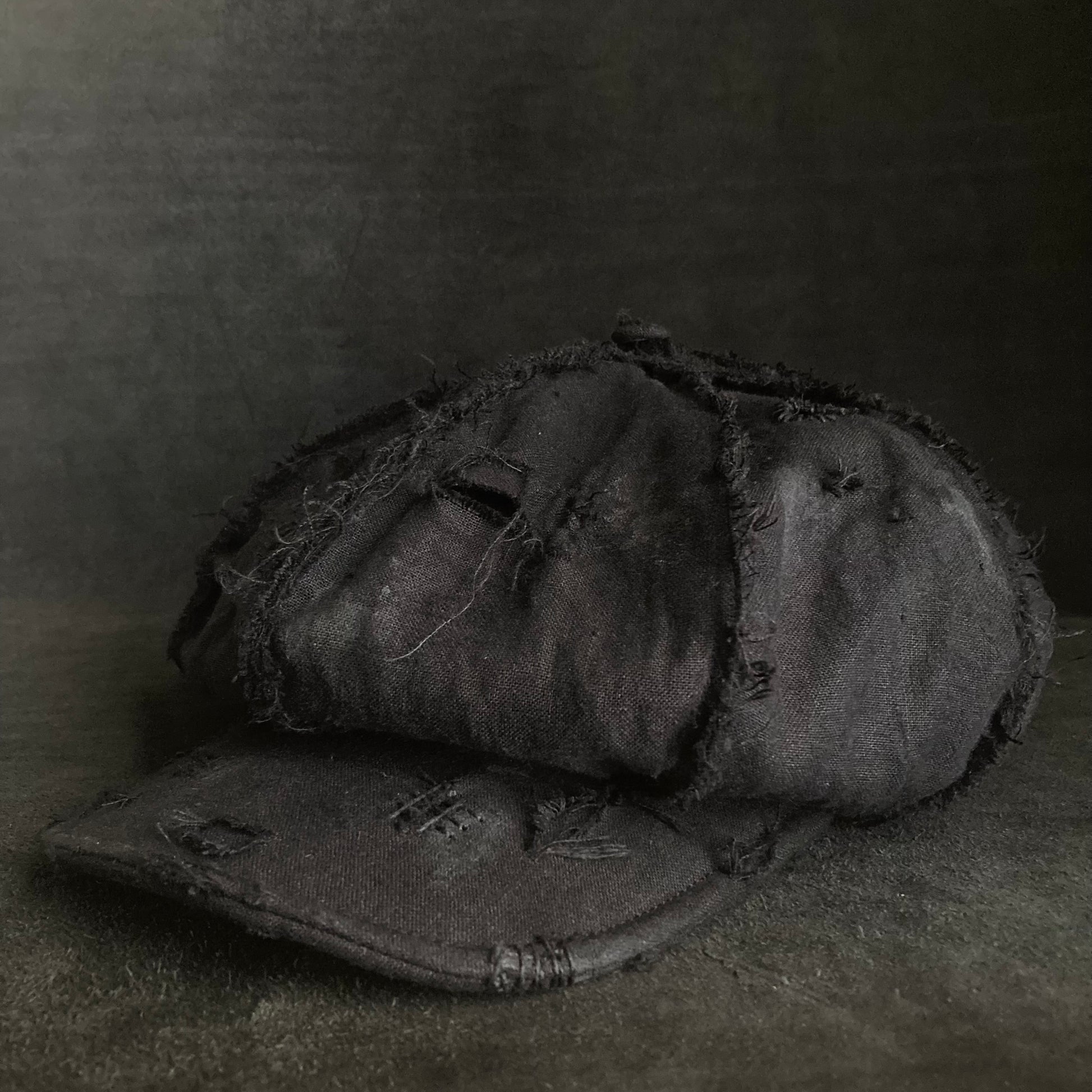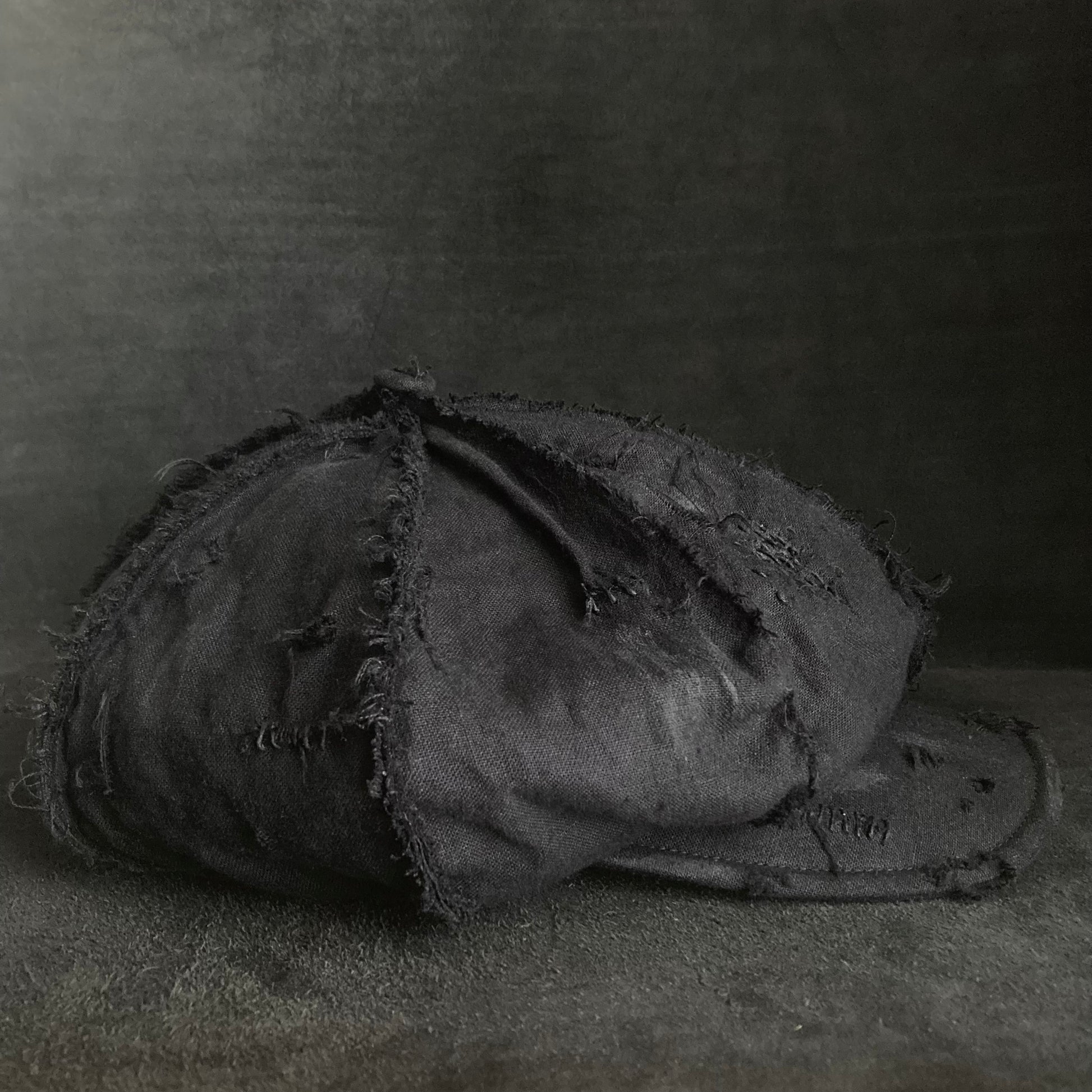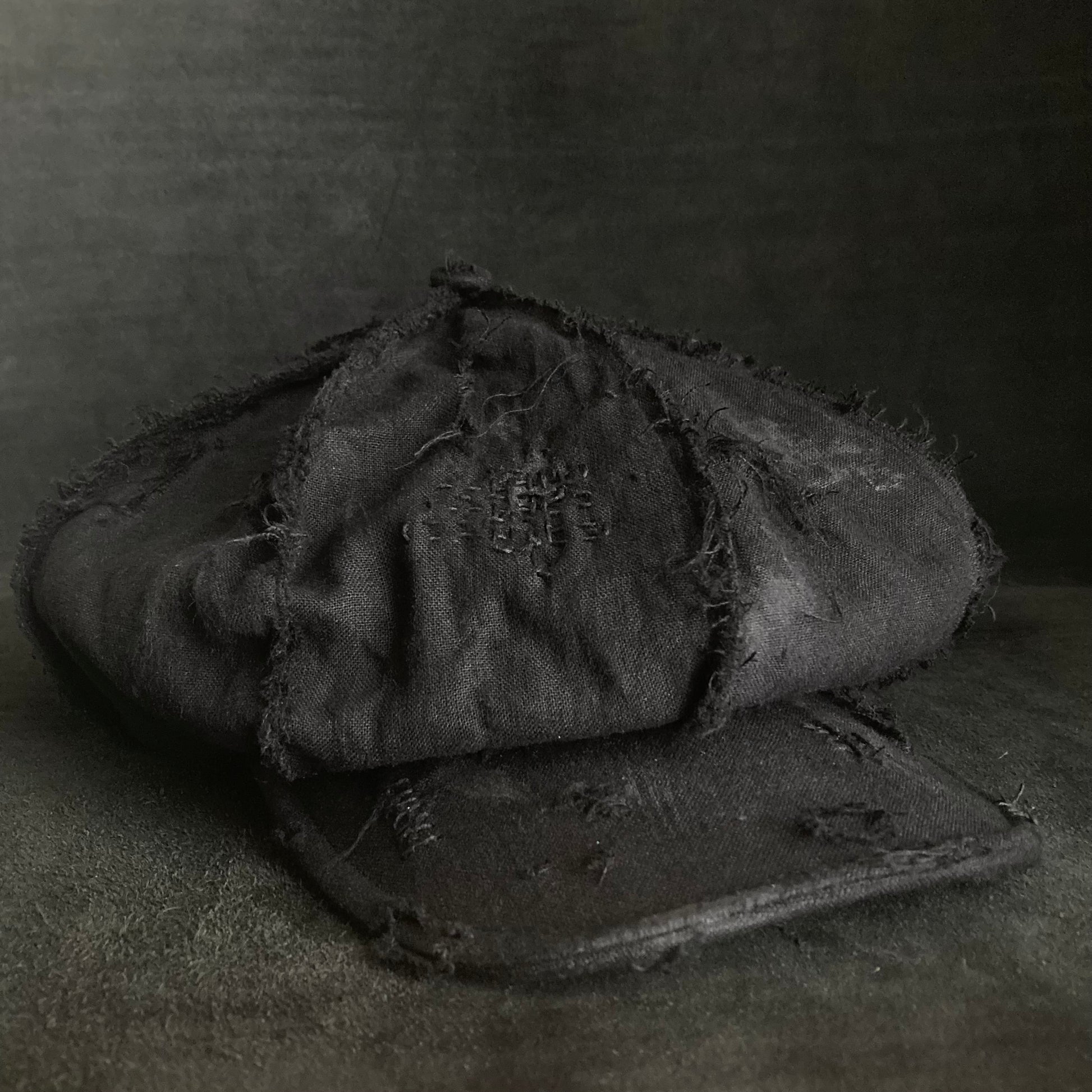 ブラックのリネン生地をダメージ&汚し加工をして、制作しています。