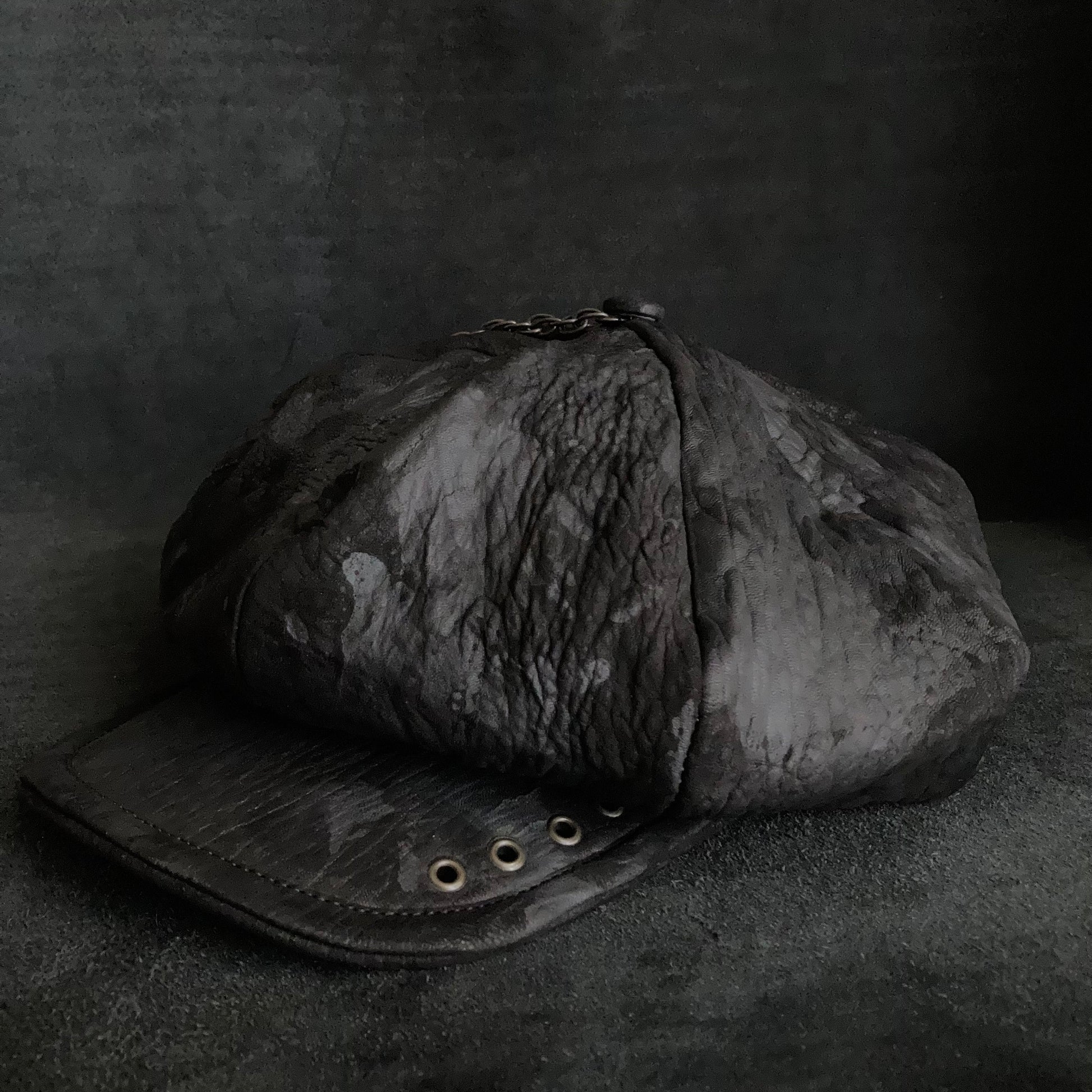 Big volume bleach leather chain casquette (brim core)