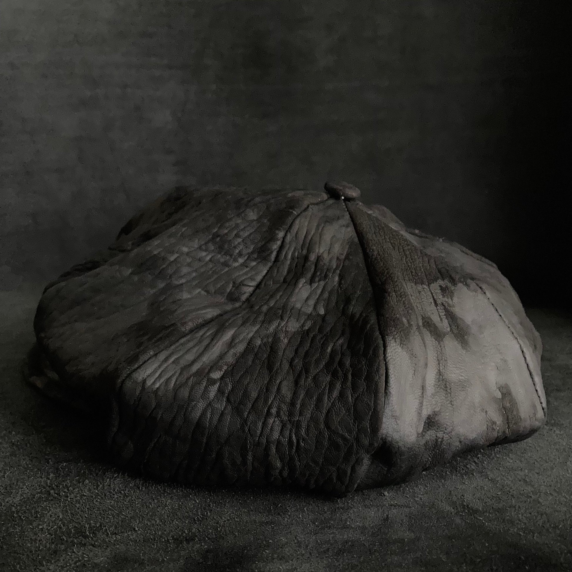 ブリーチ加工をしたブラックレザーを使用して、制作しています。