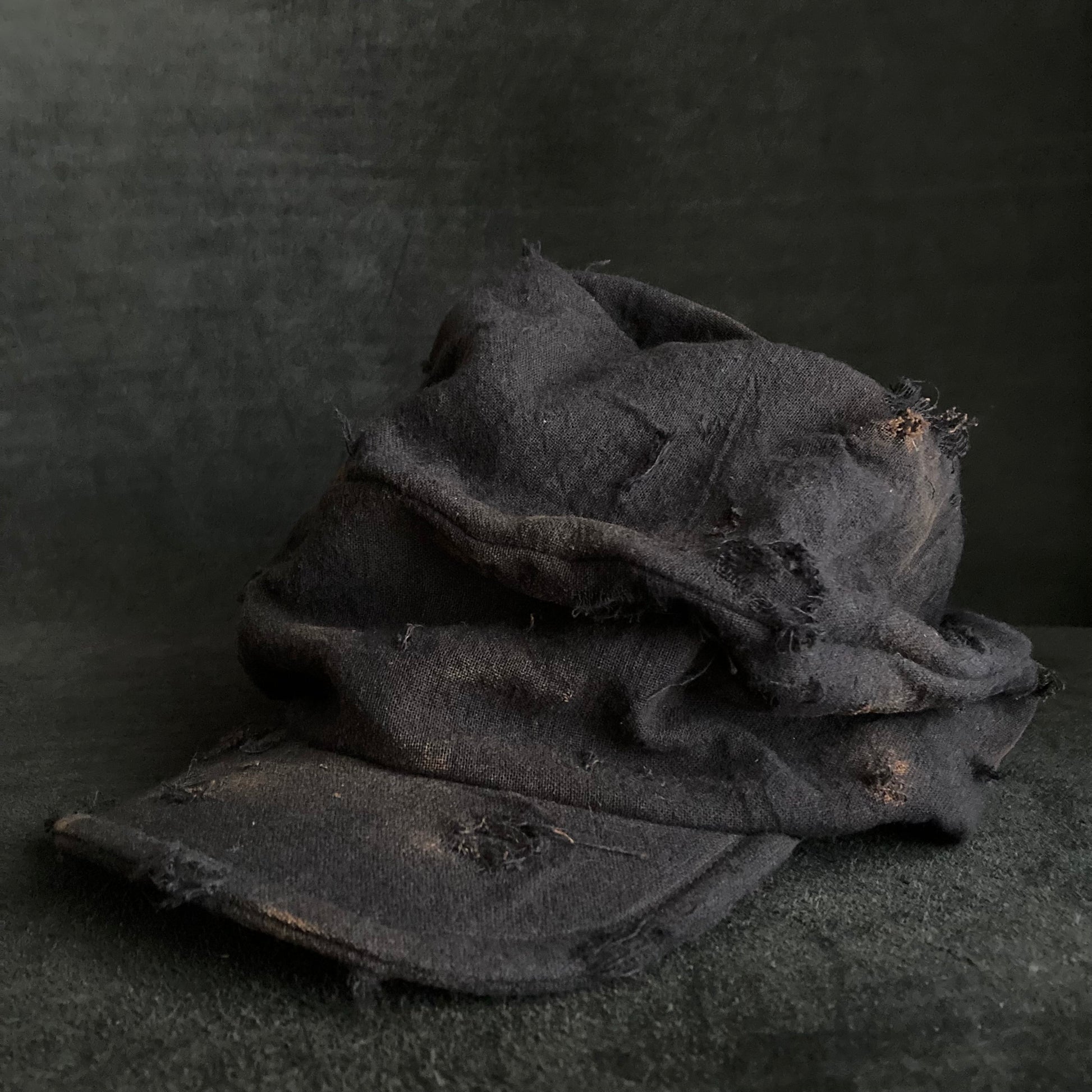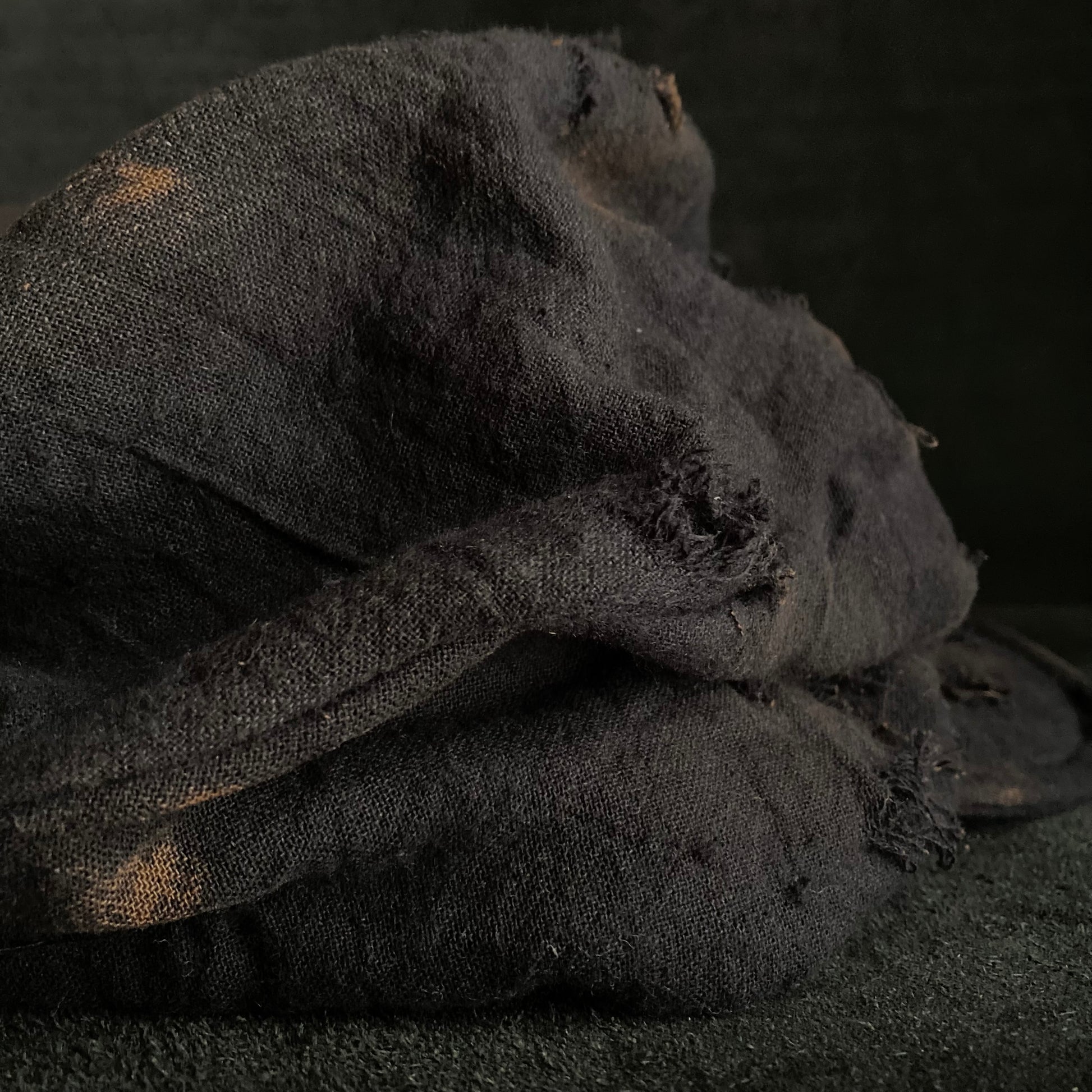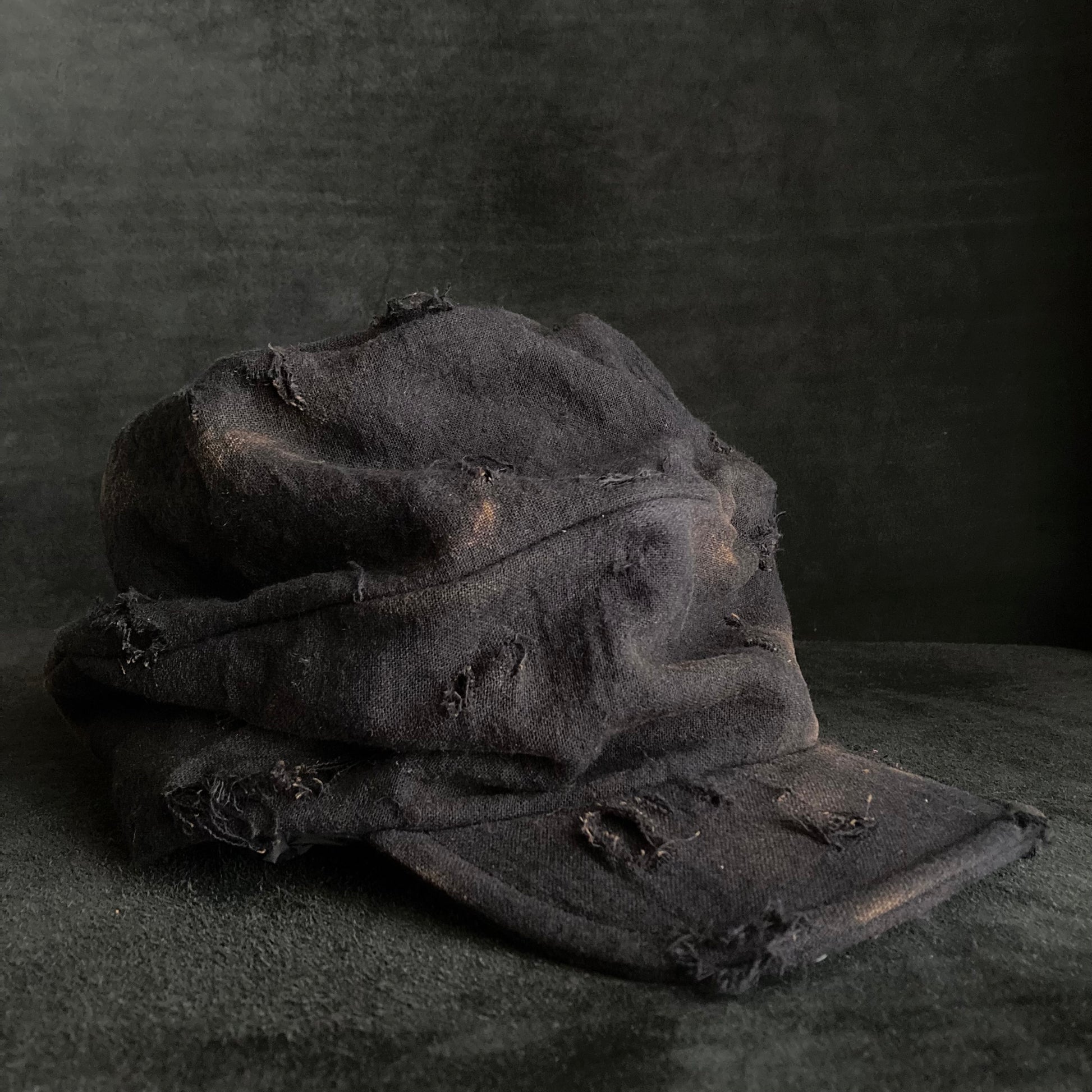 Black cotton linen burned turn cap (brim core)