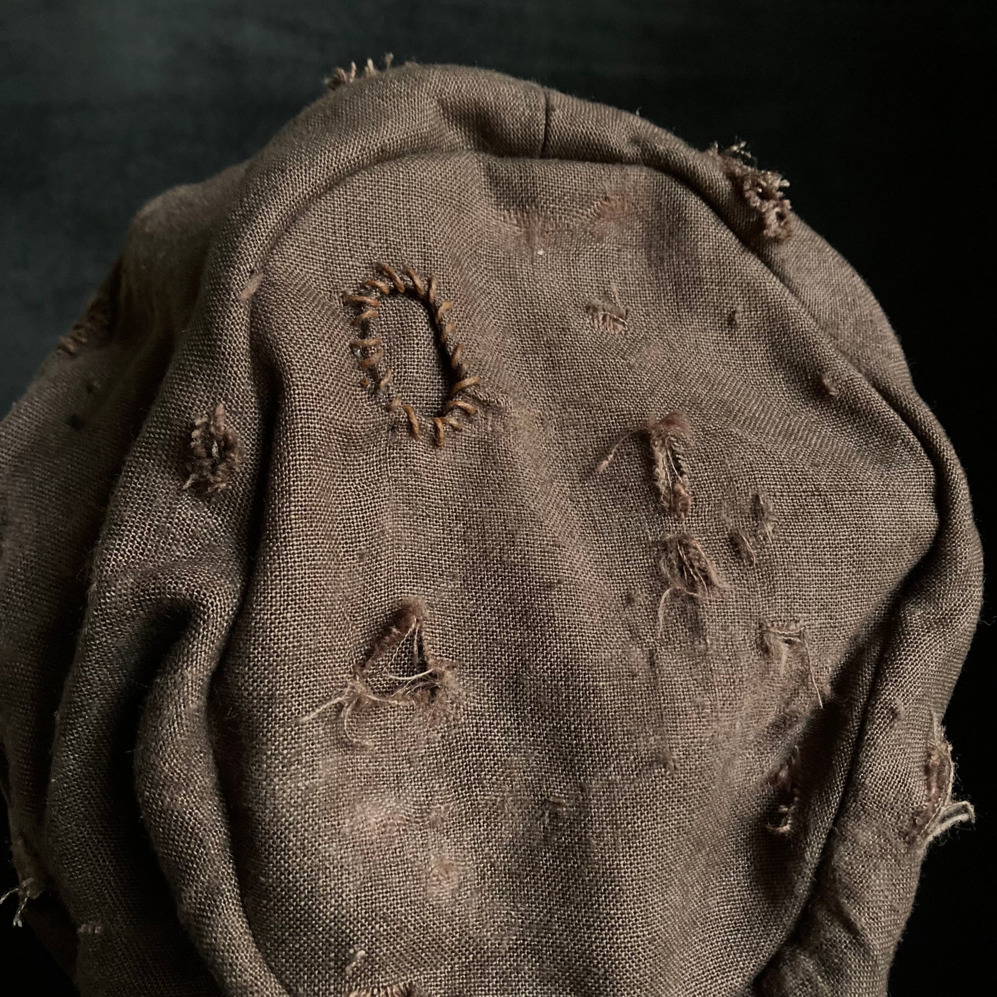 数か所、ロウ引き糸で飾りステッチを入れています。