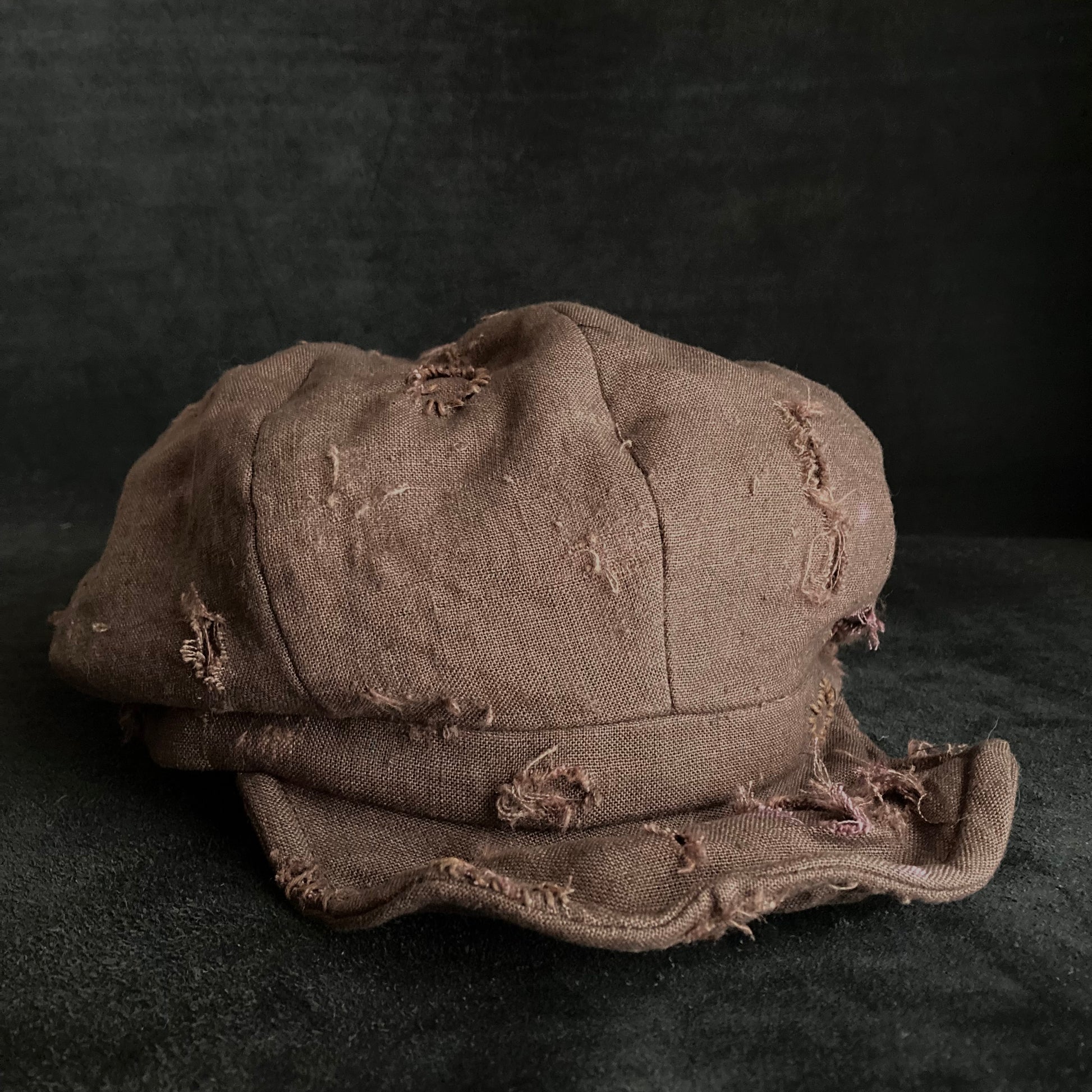 Brown linen damage tear casquette