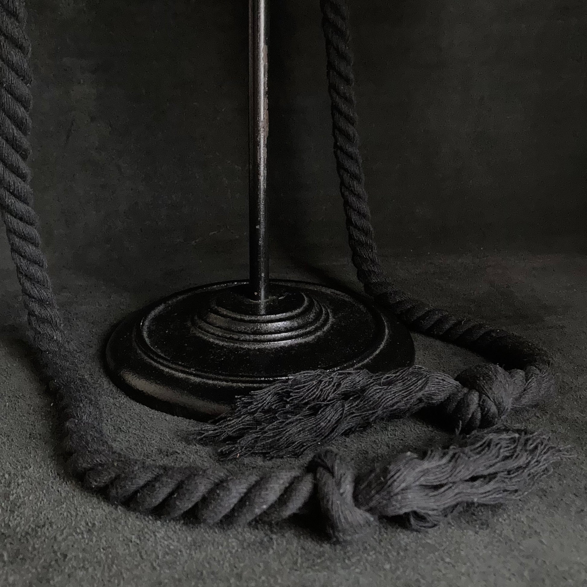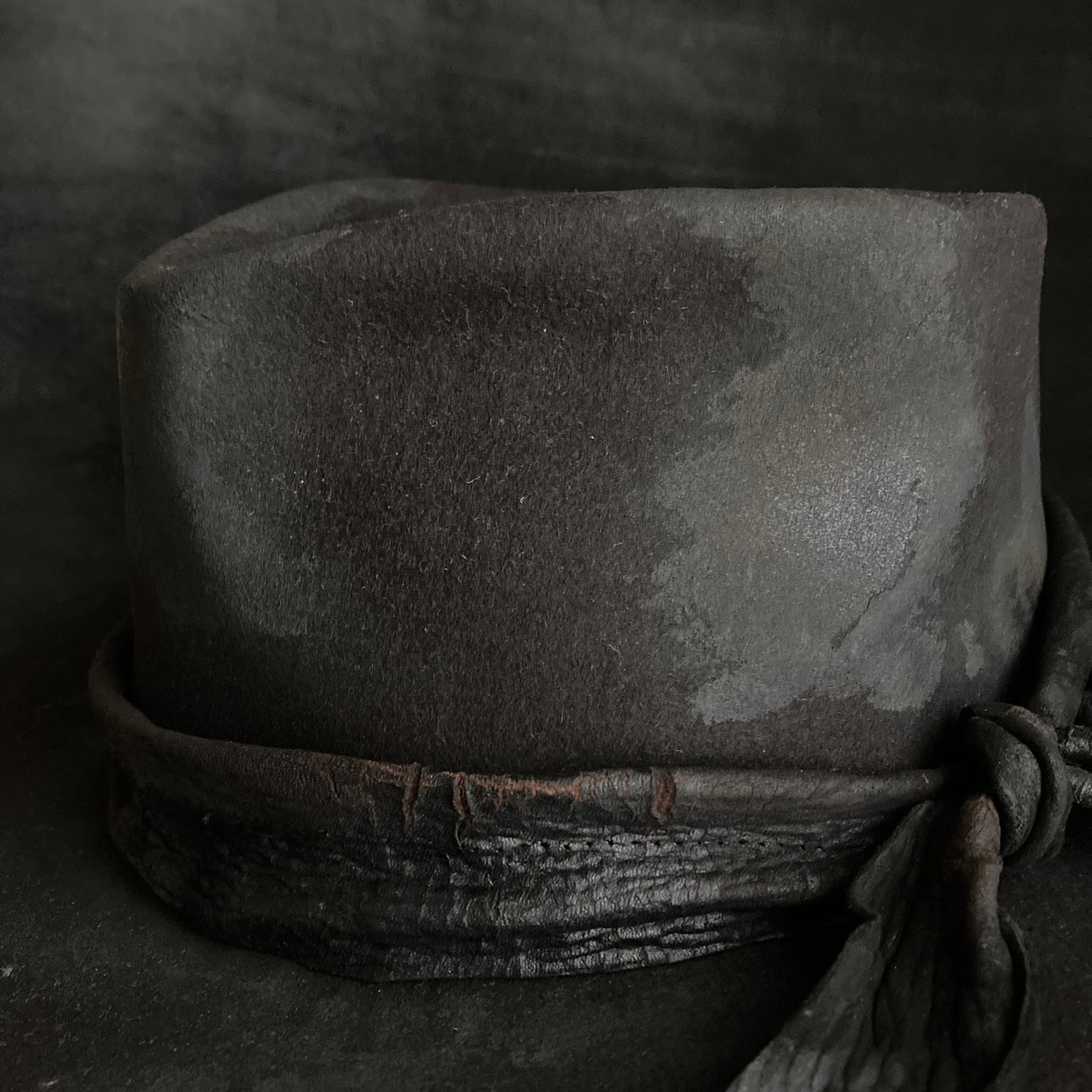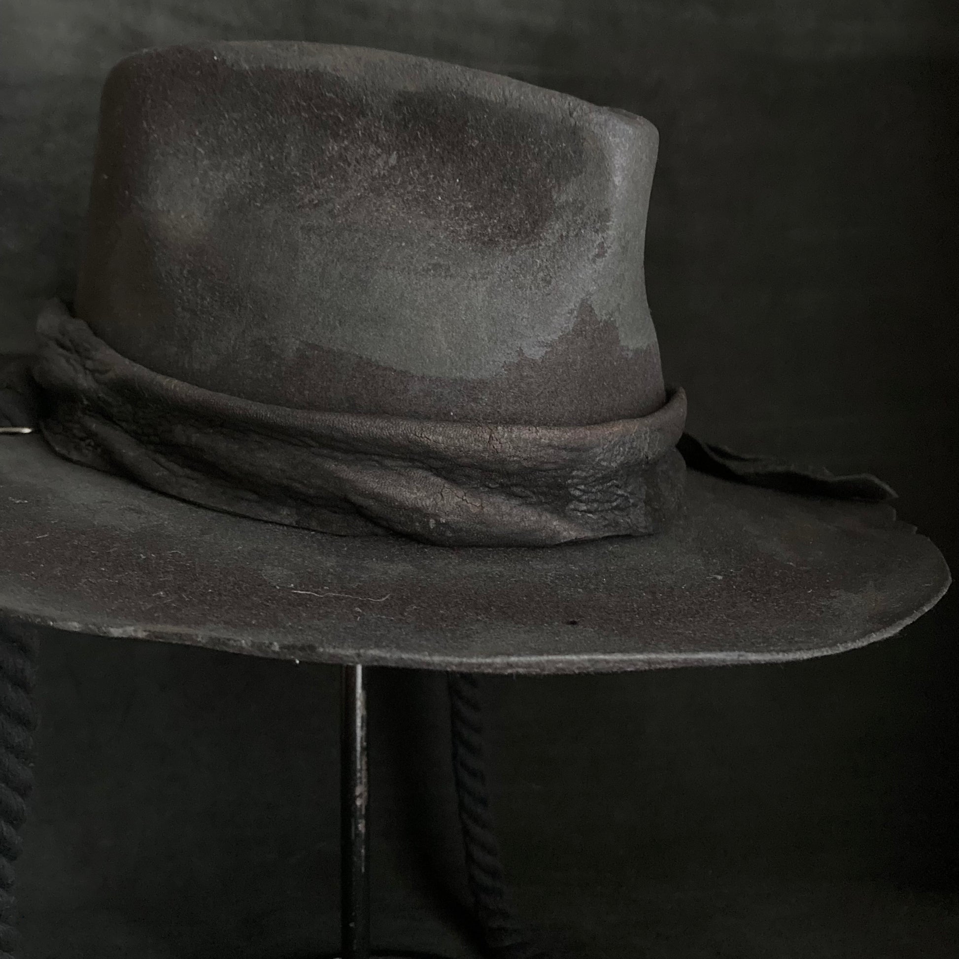 ブリムに穴をあけて、ロープが耳の後ろから垂れ下がるようにしています。