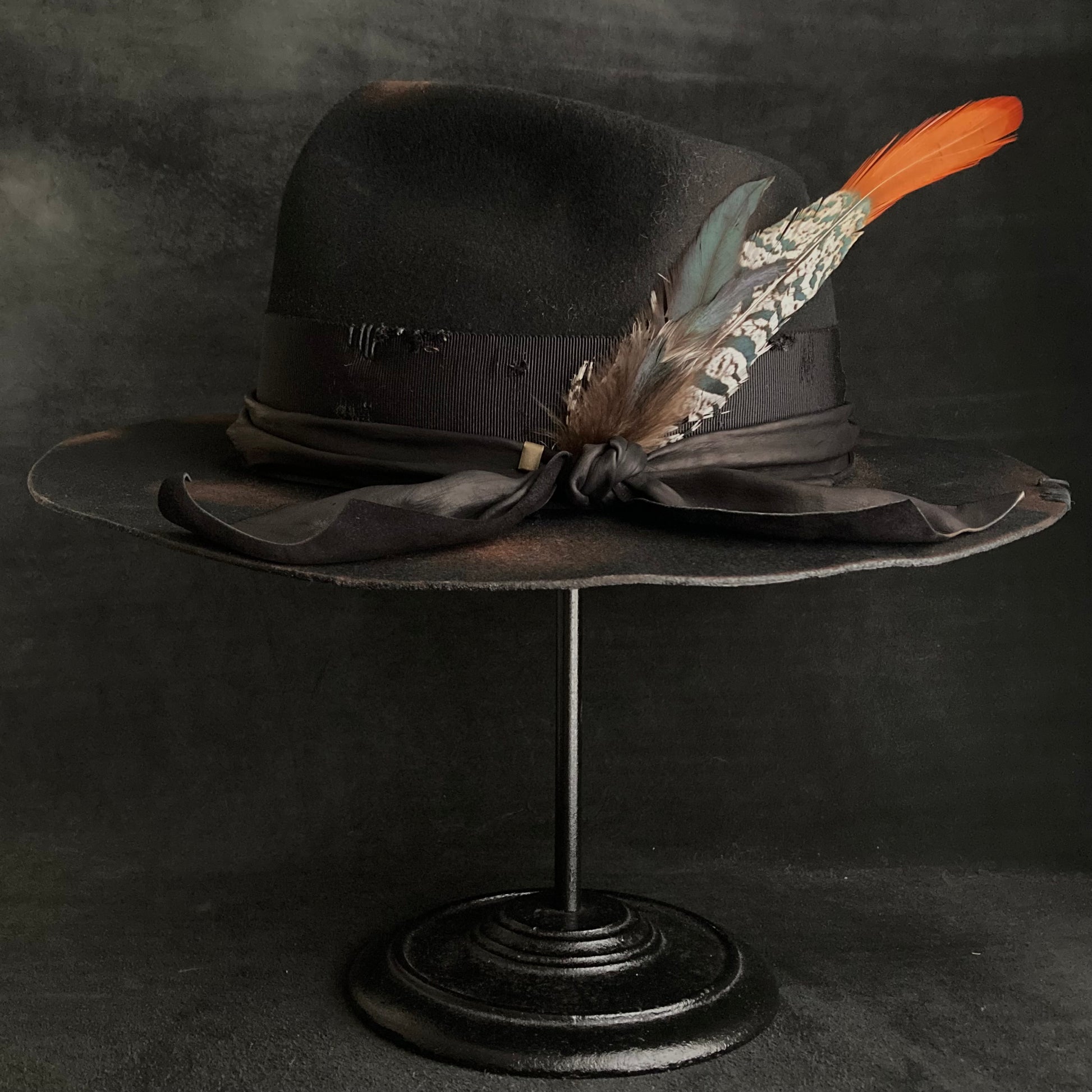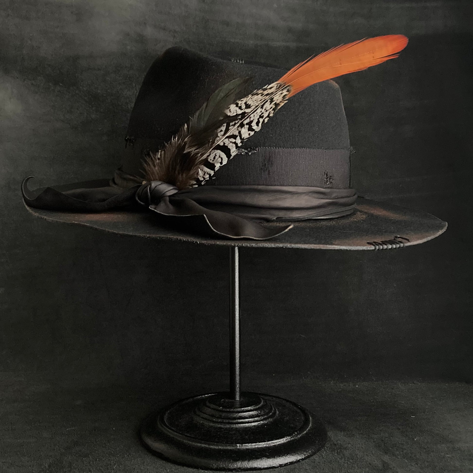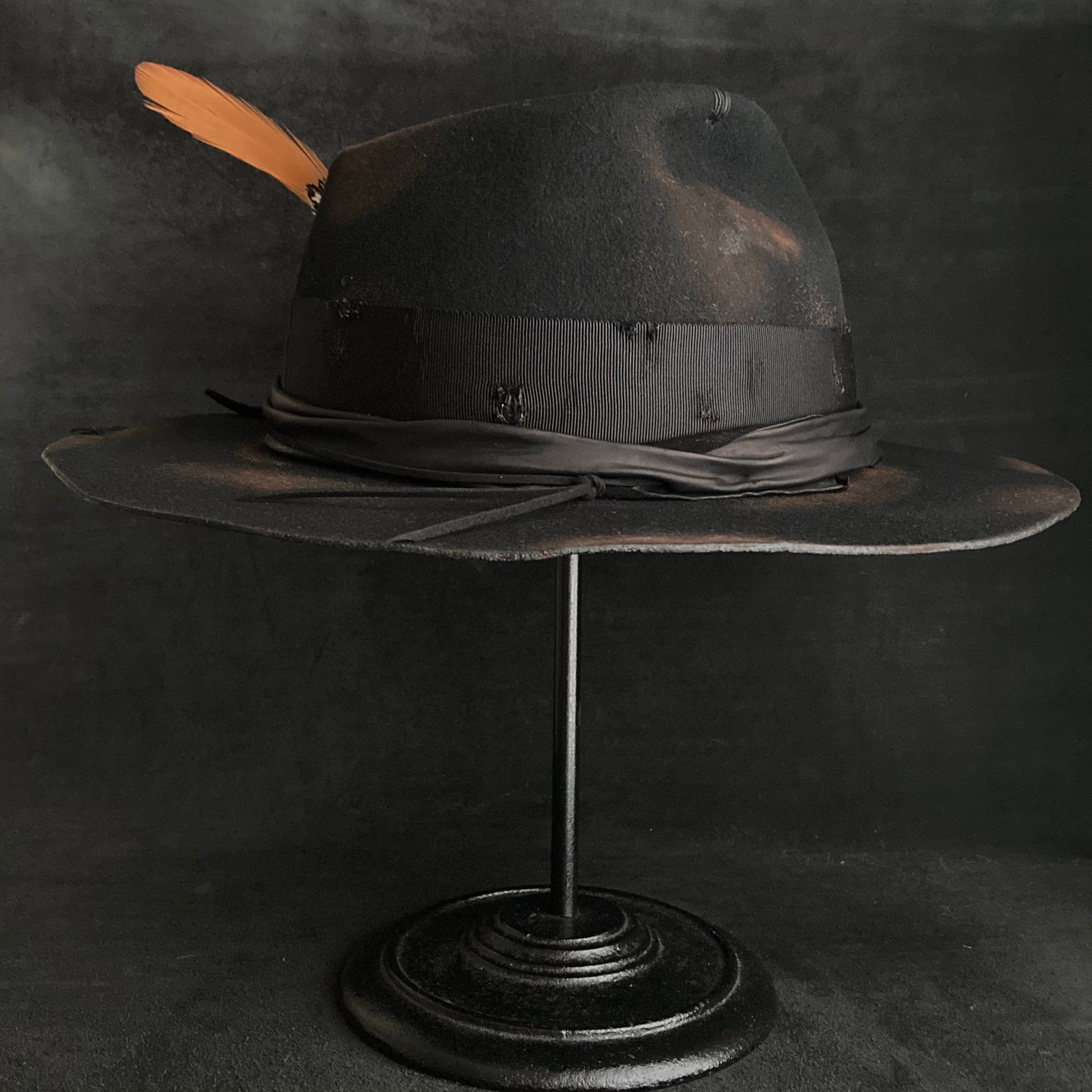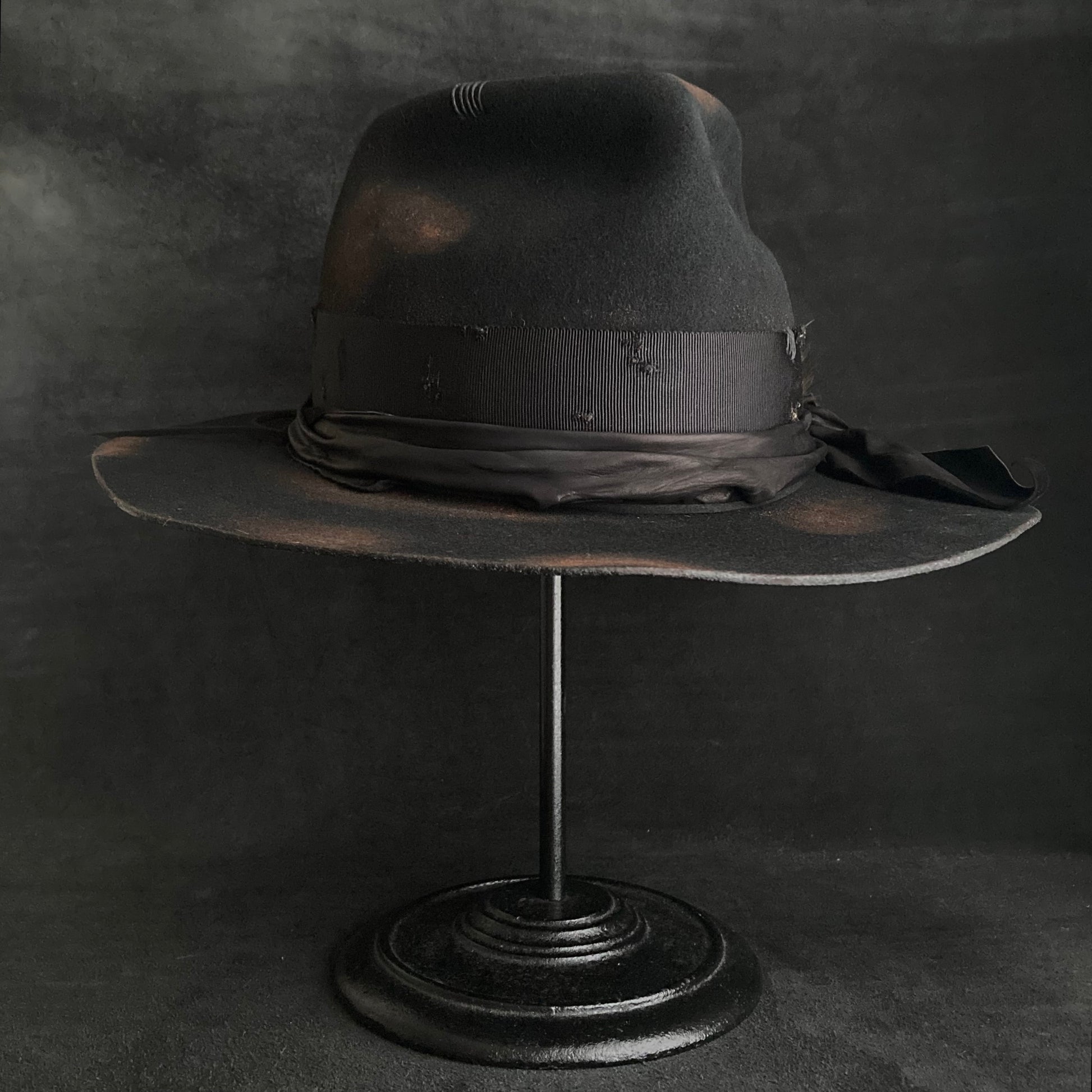 Burned black hand feel fedora hat