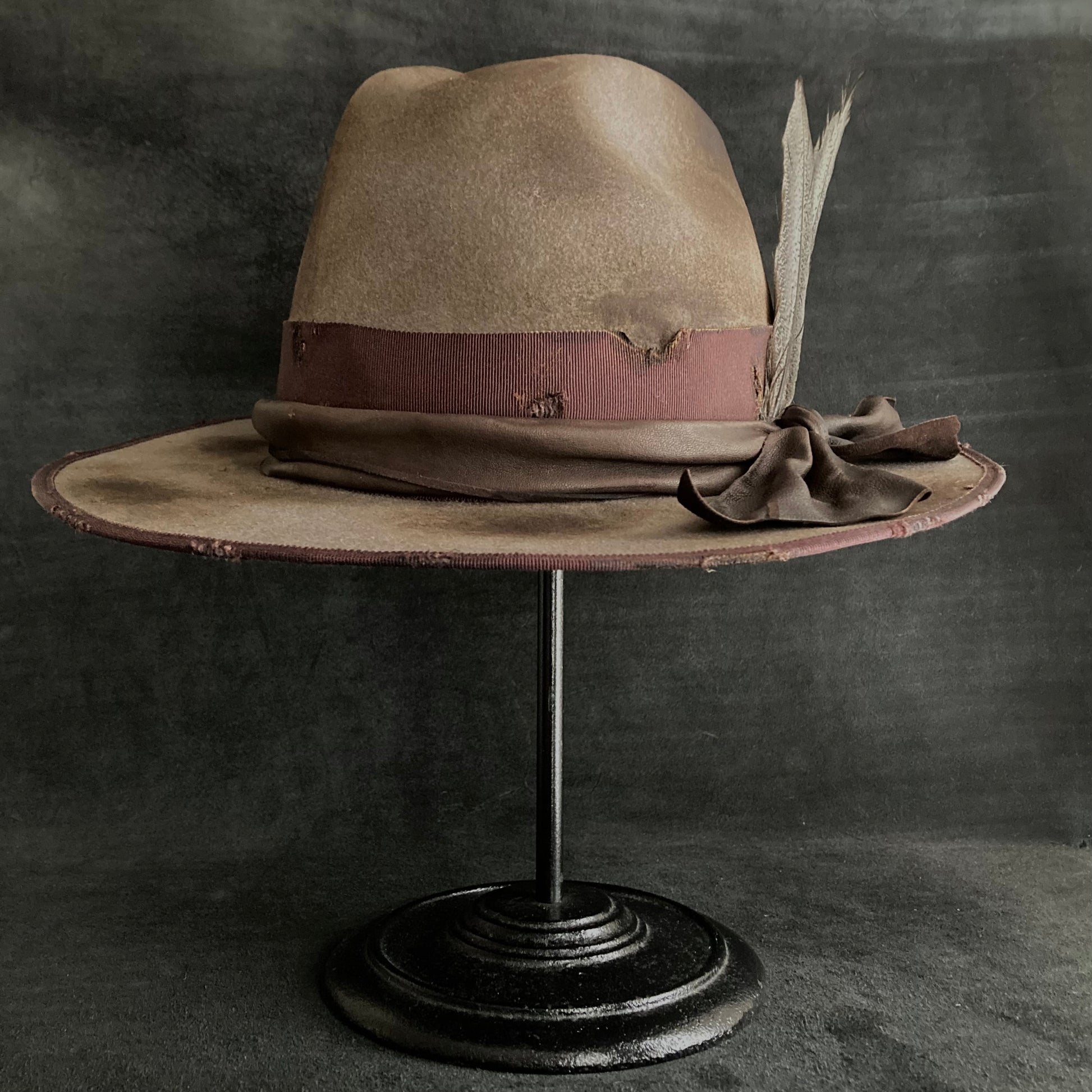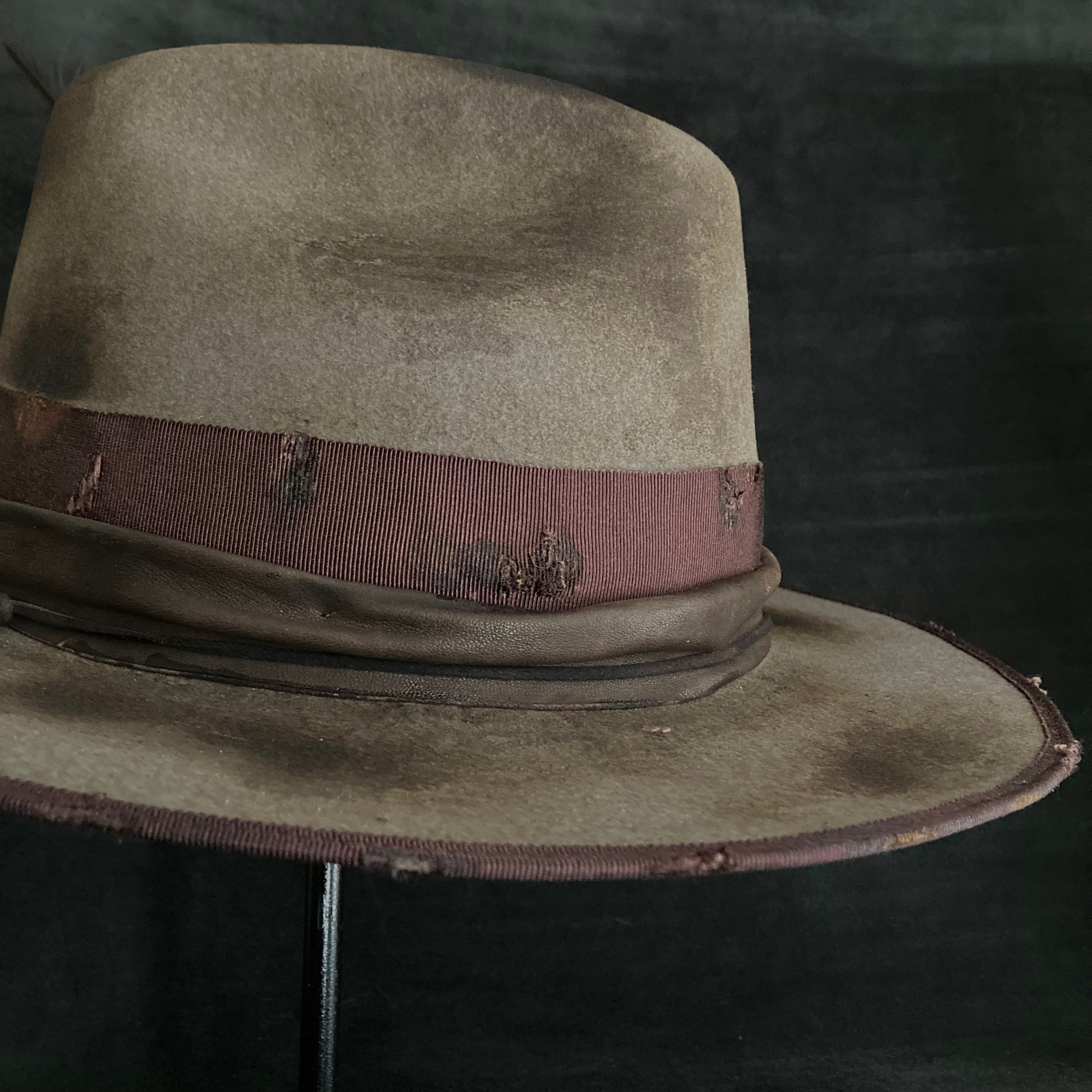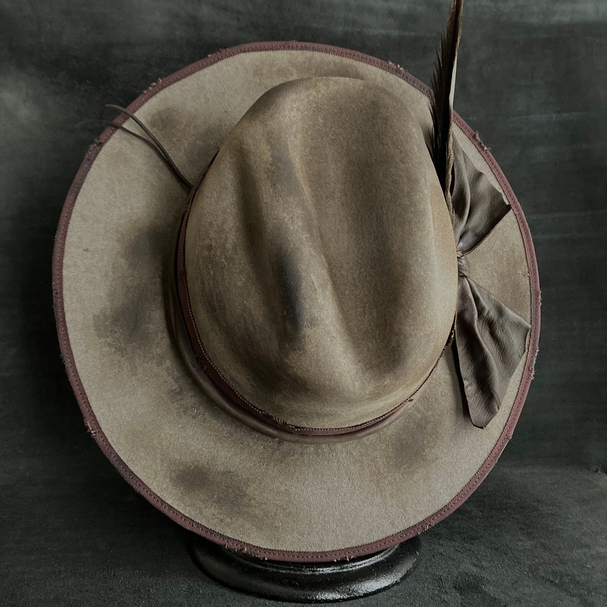 ブリムはパイピング仕上げで、ダメージ加工しています。