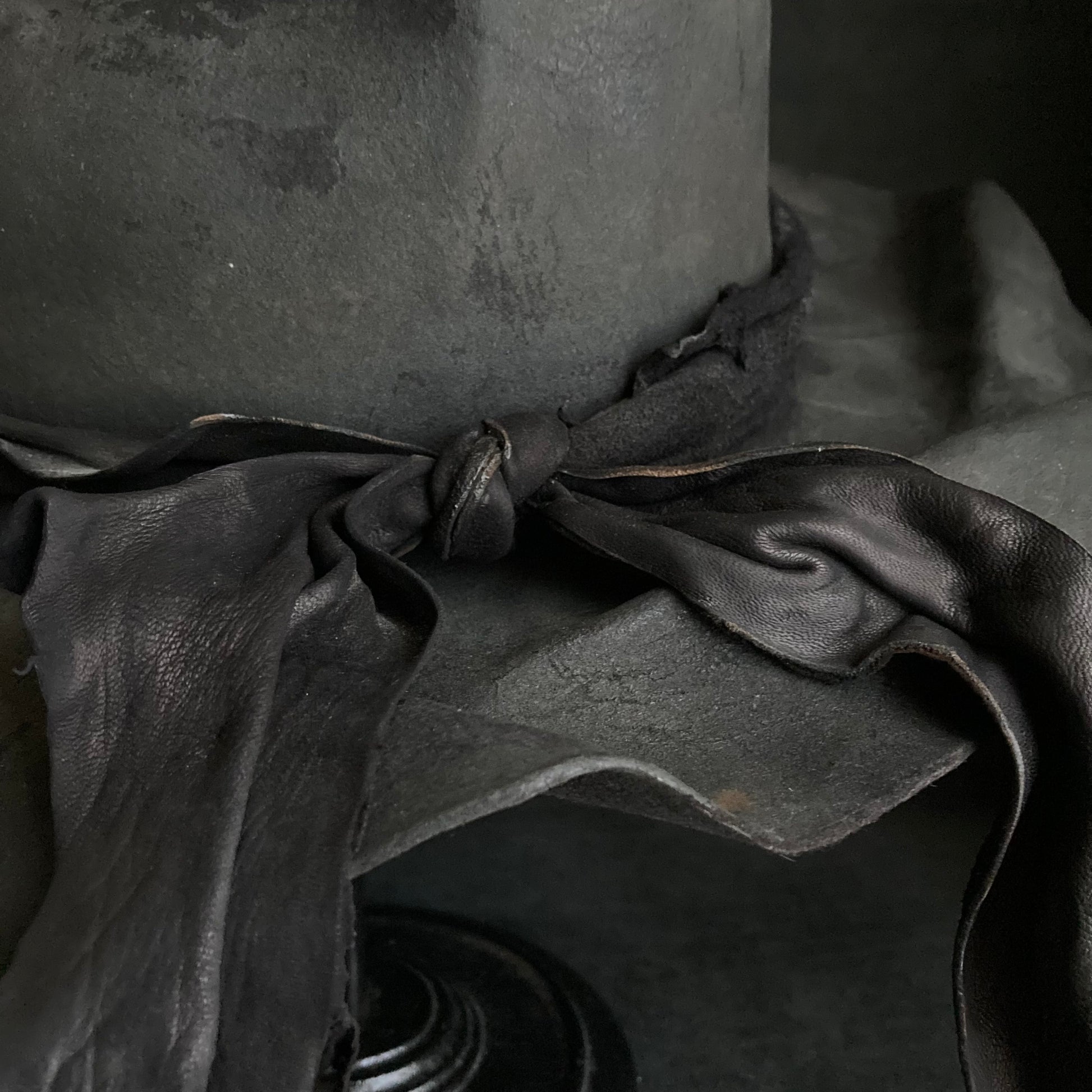 飾りにはブリーチ加工したレザーを巻いています。