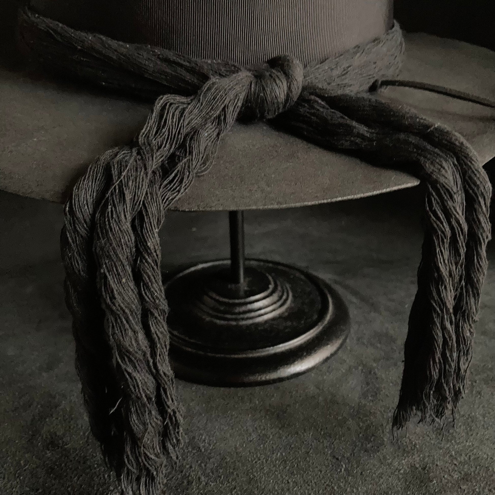 飾りには、垂れ下がるように巻いた長めの綿ロープと革紐を使用しています。
