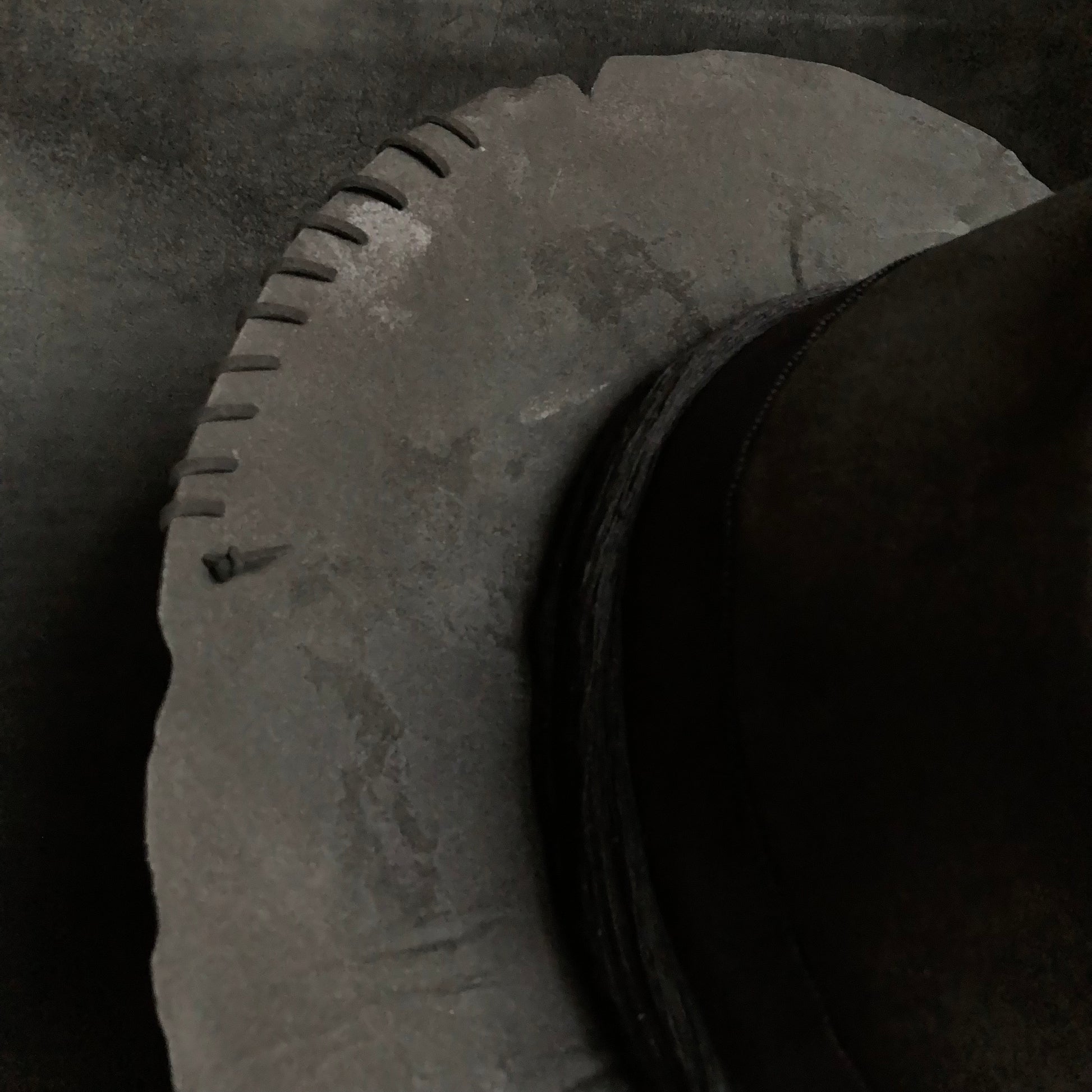 全体を炭のような雰囲気になるまでバーン加工した「 charcoal 」シリーズ。特殊な保護剤を上から塗って加工をとれにくくしています。