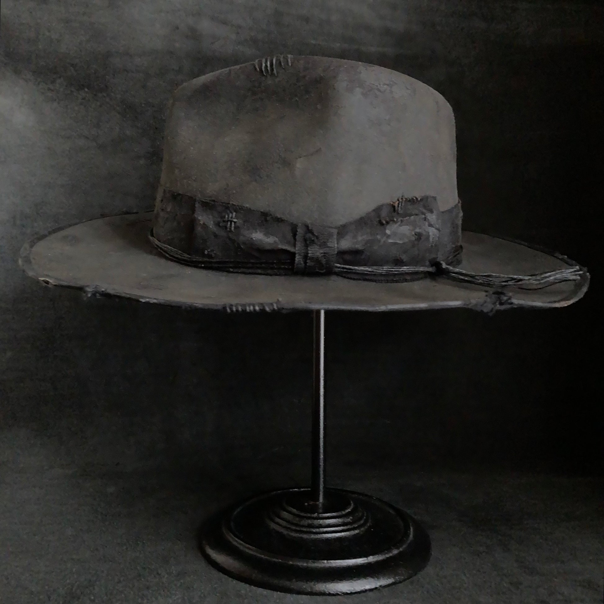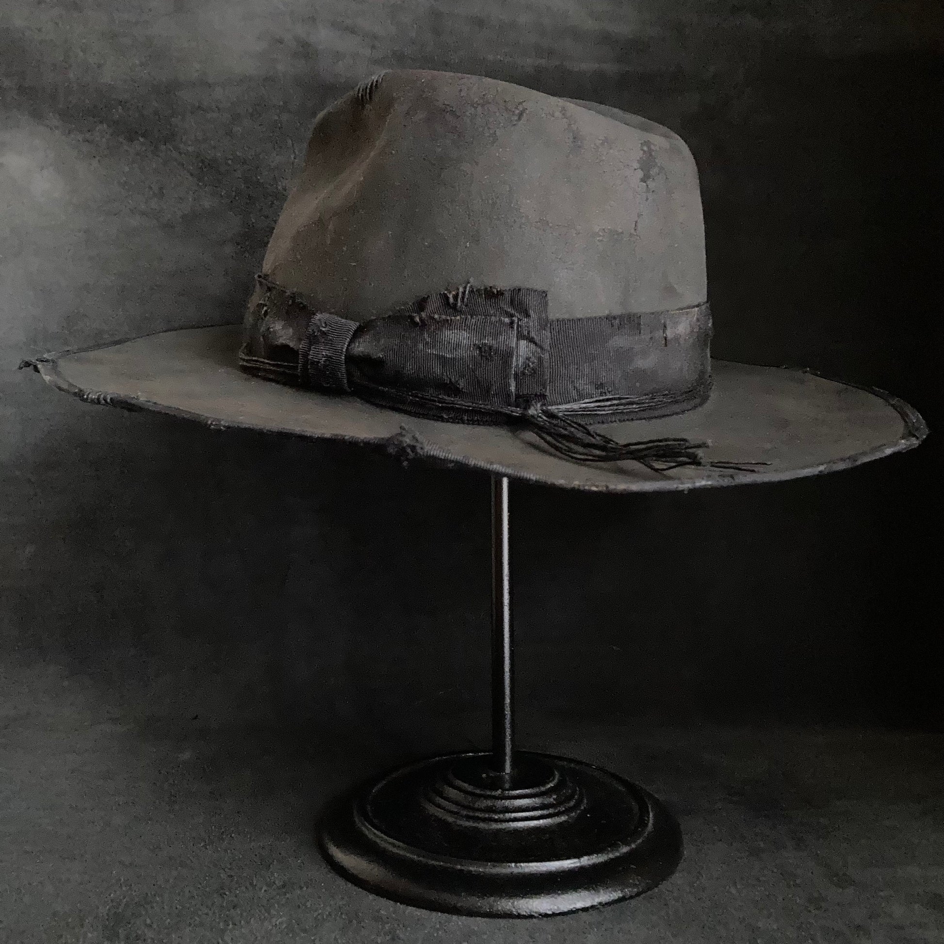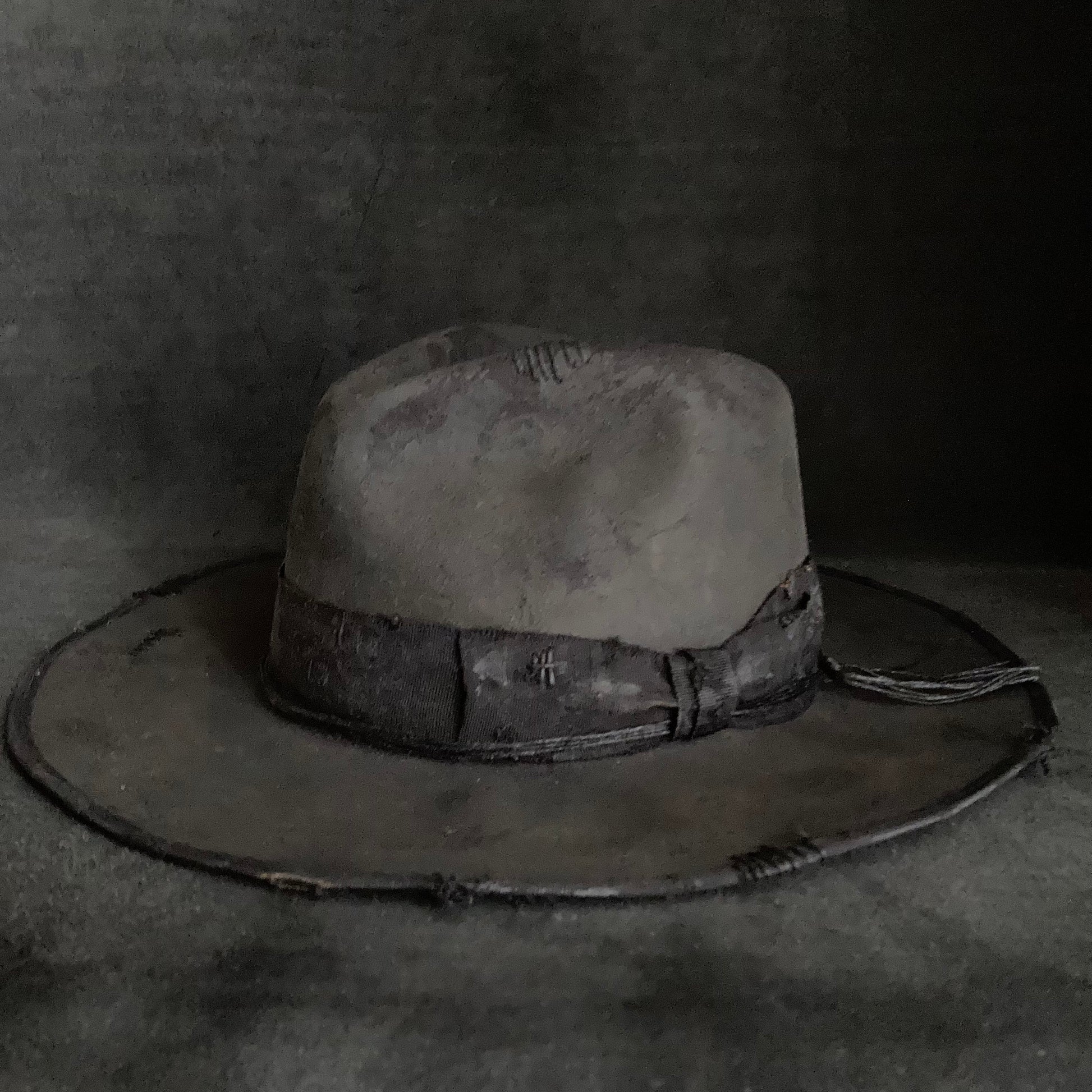 Charcoal damage grosgrain ribbon fedora hat