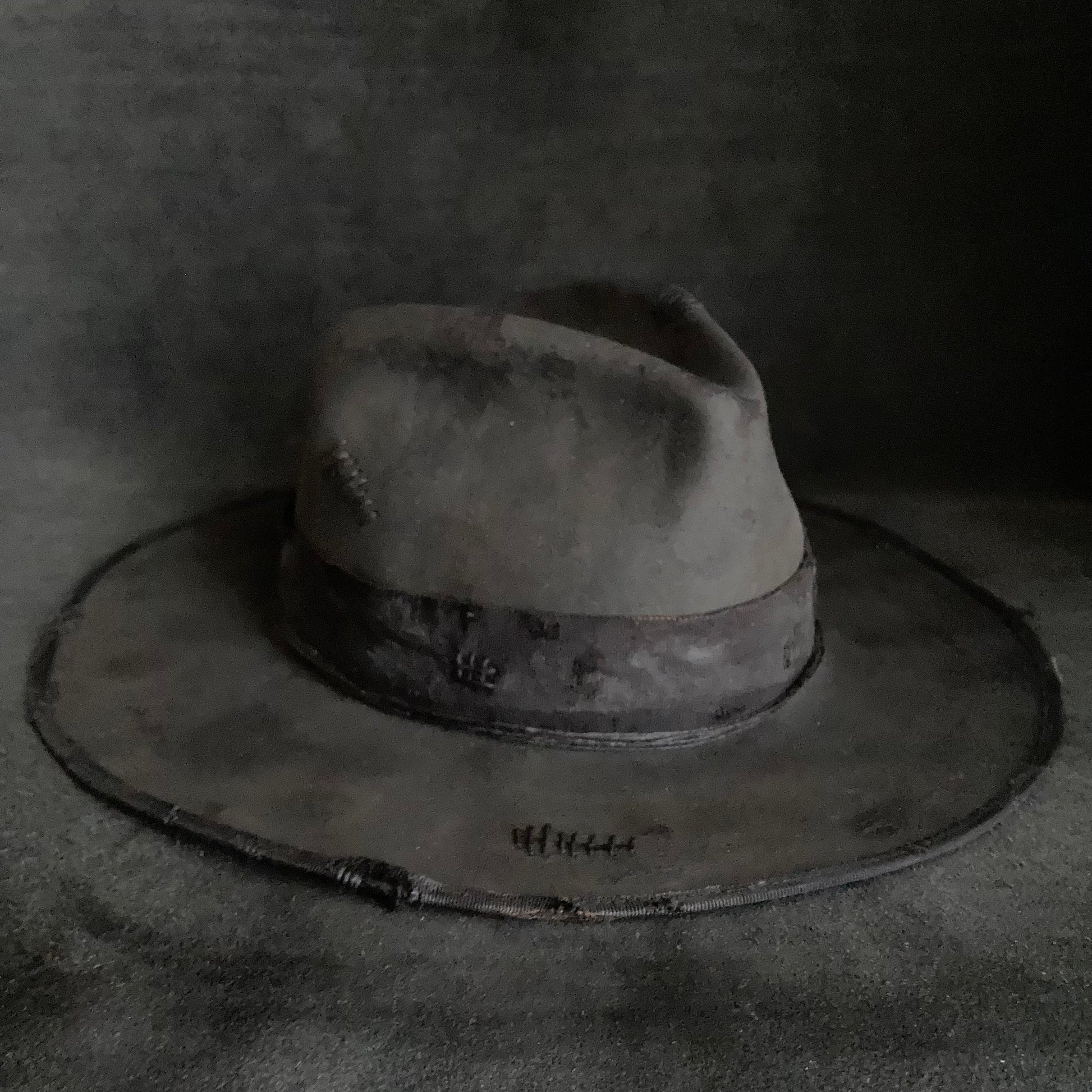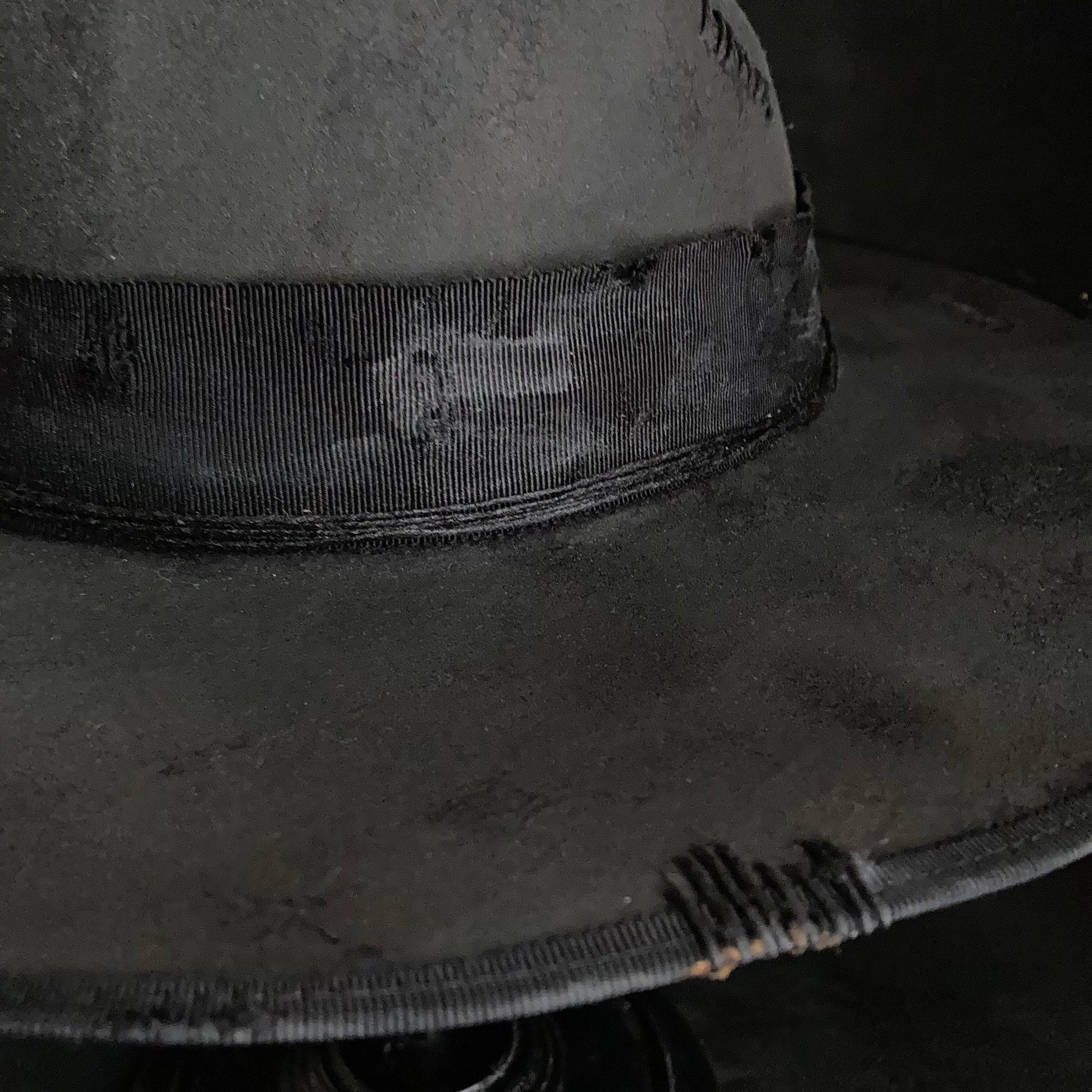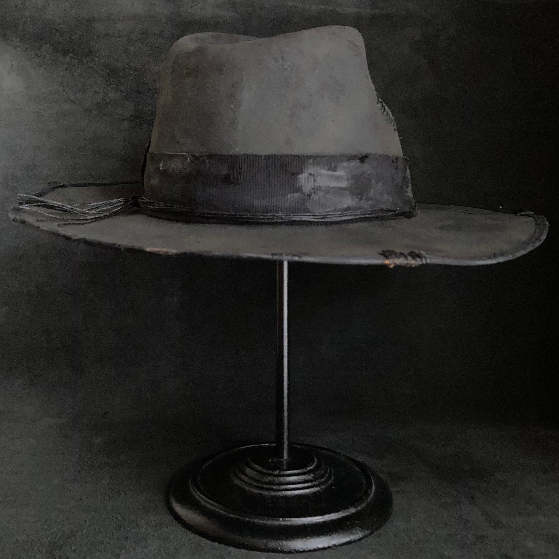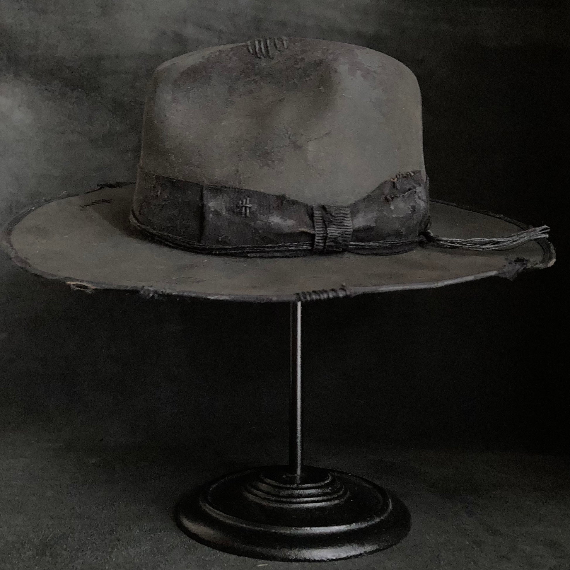 Charcoal damage grosgrain ribbon fedora hat