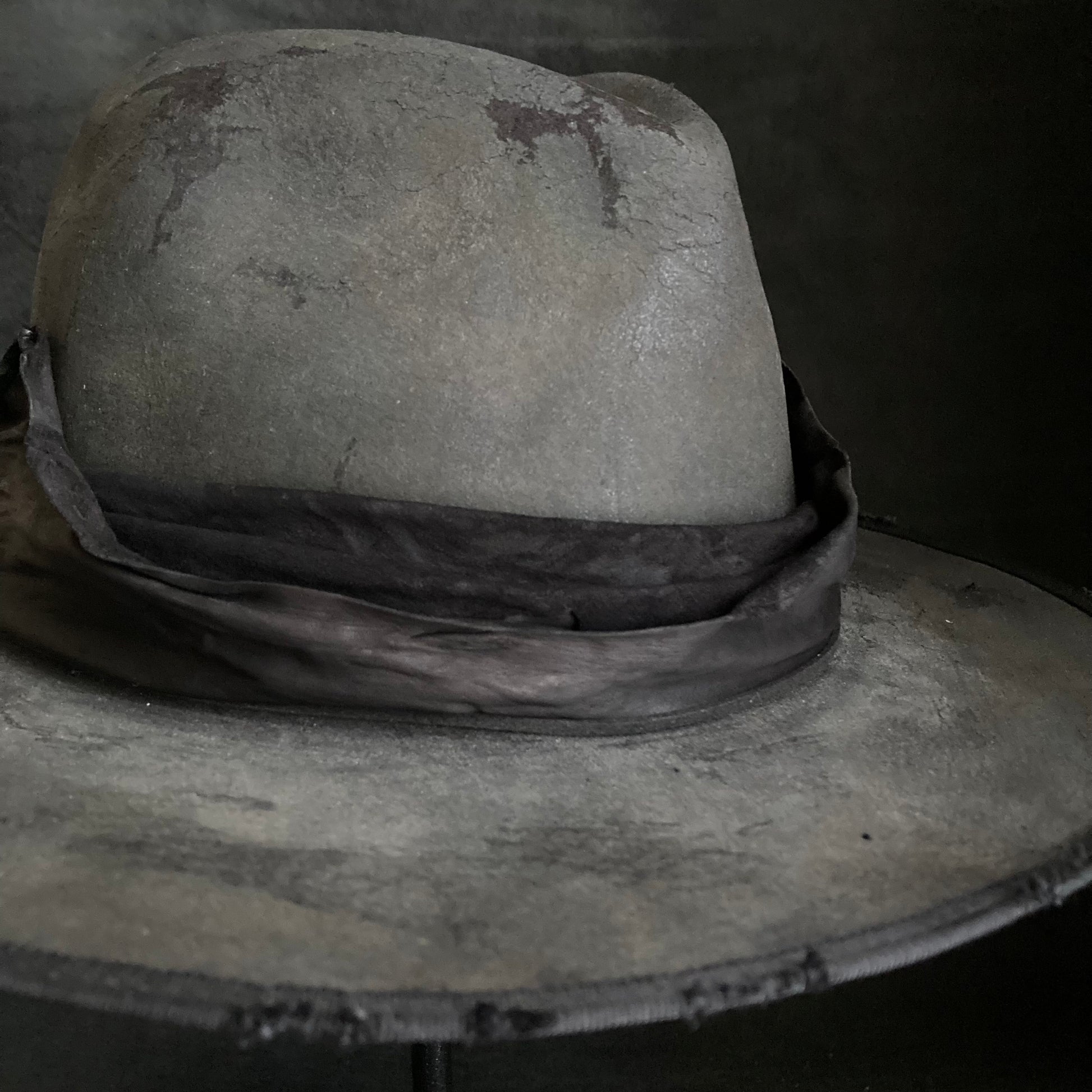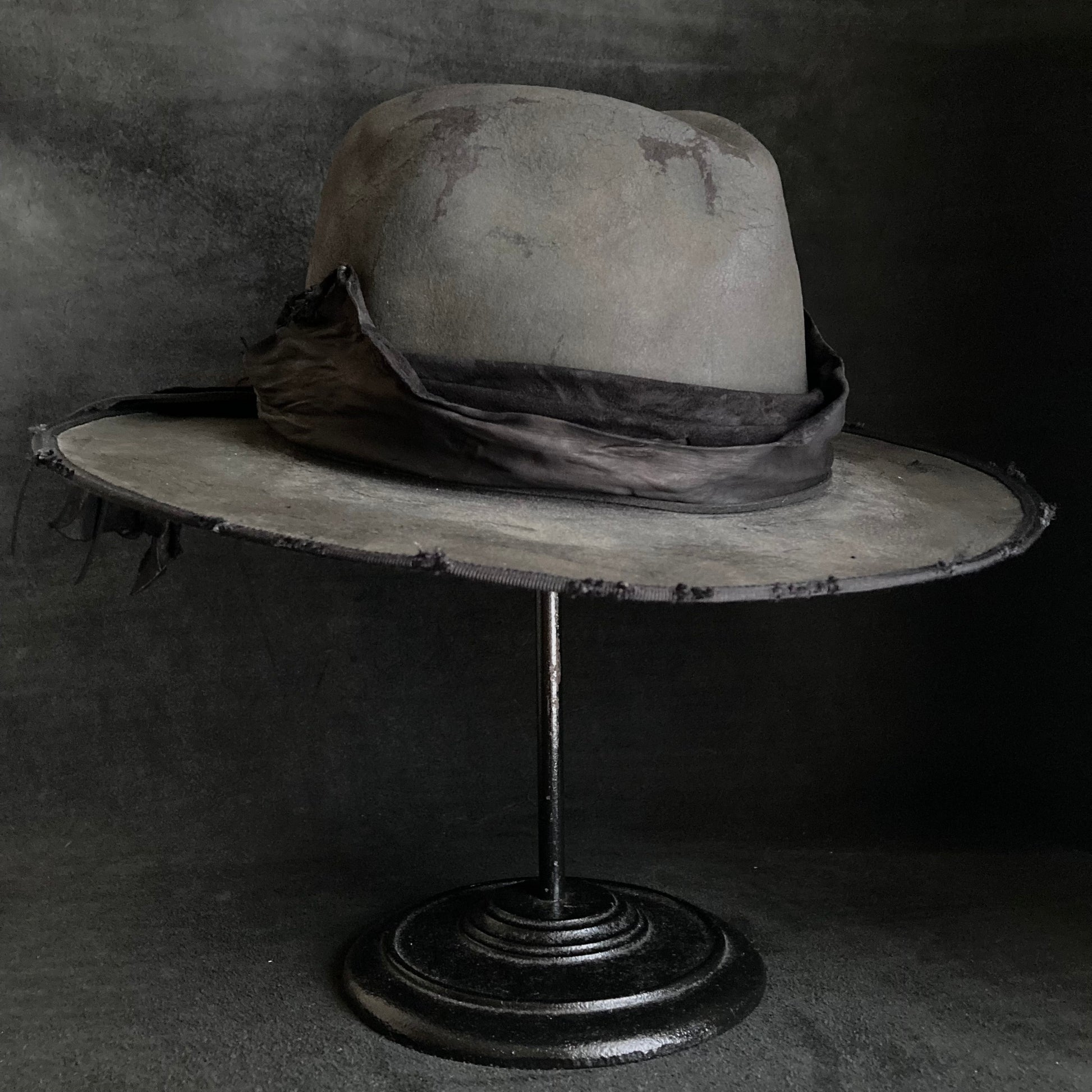 ブリム(つば)はフラットで、ダメージ加工したパイピング仕上げです。