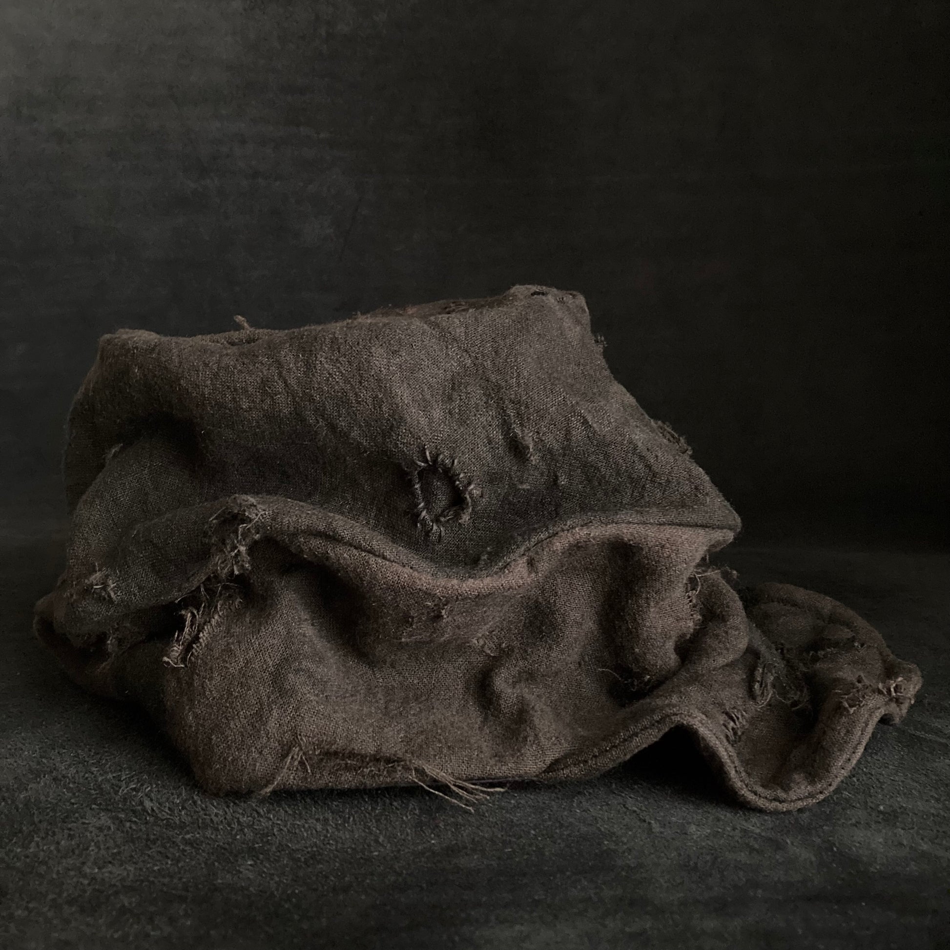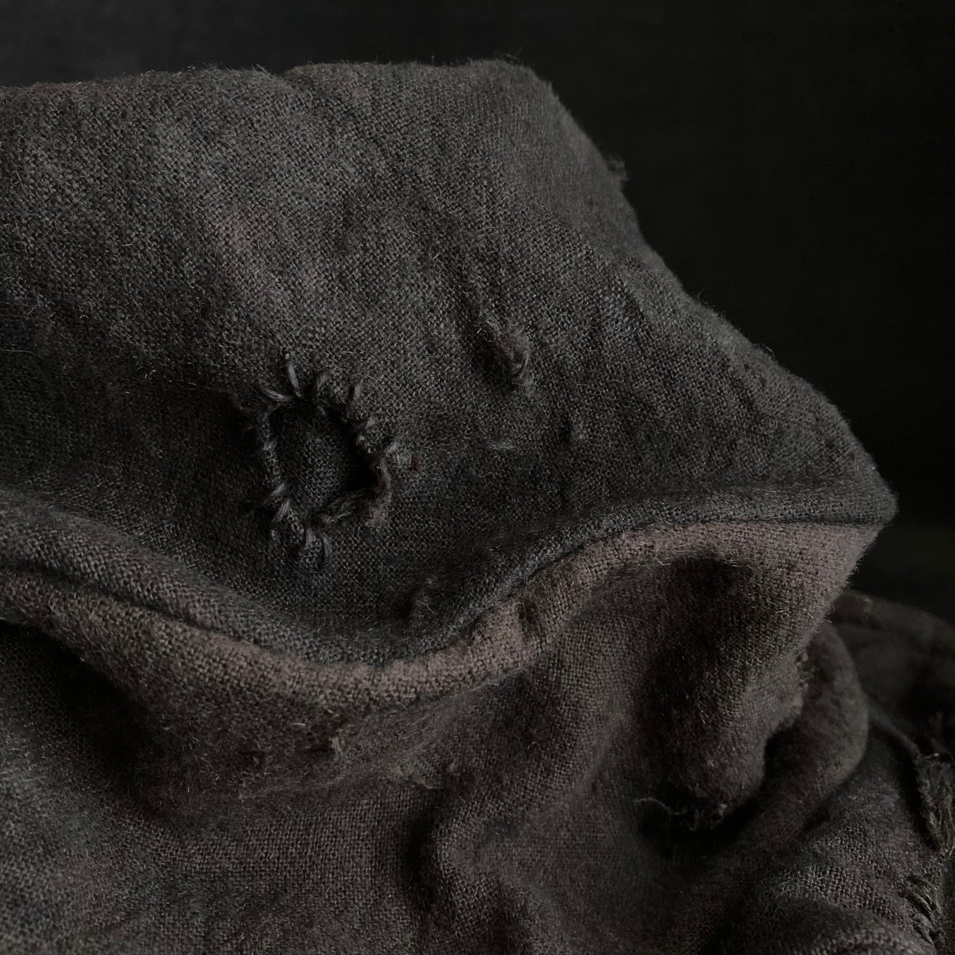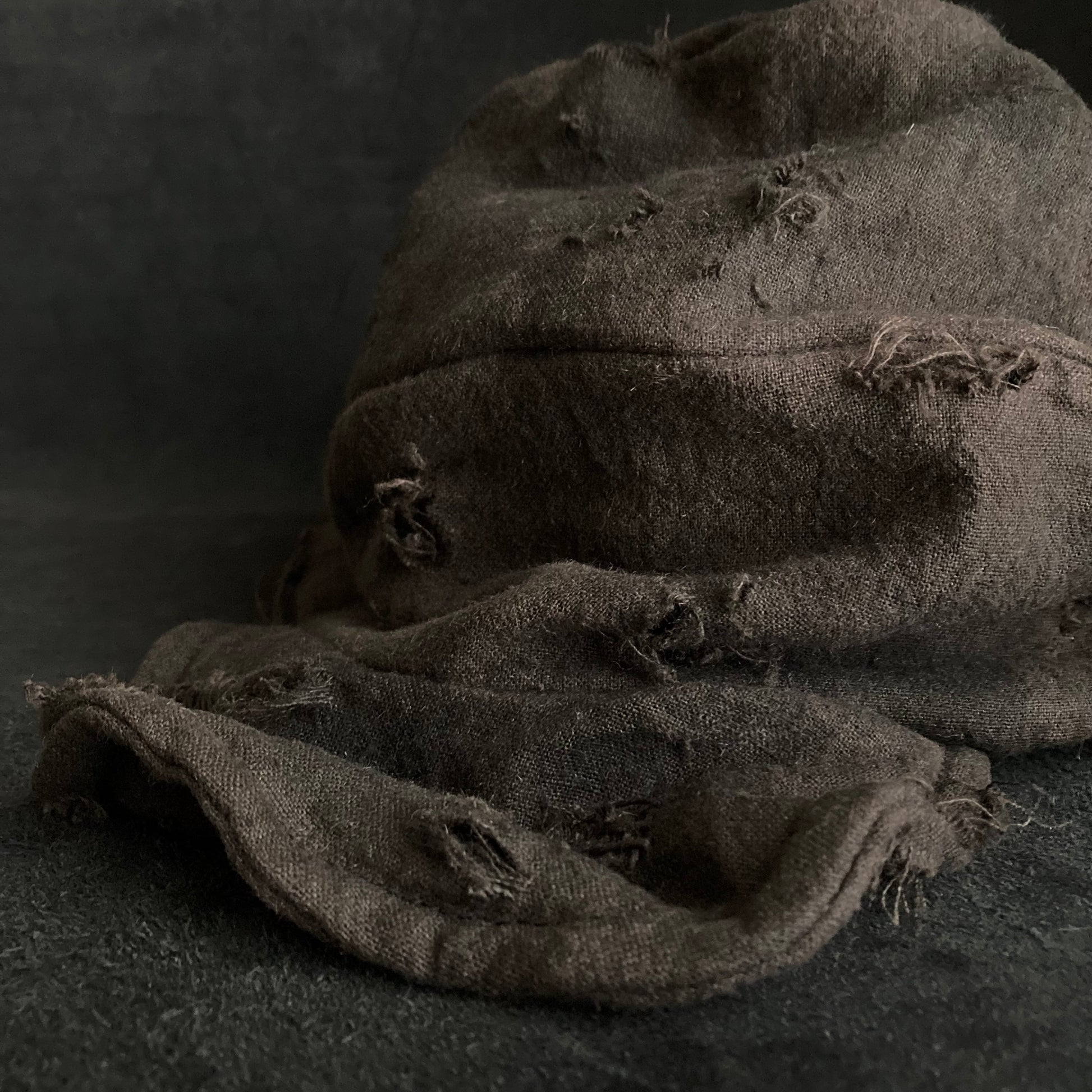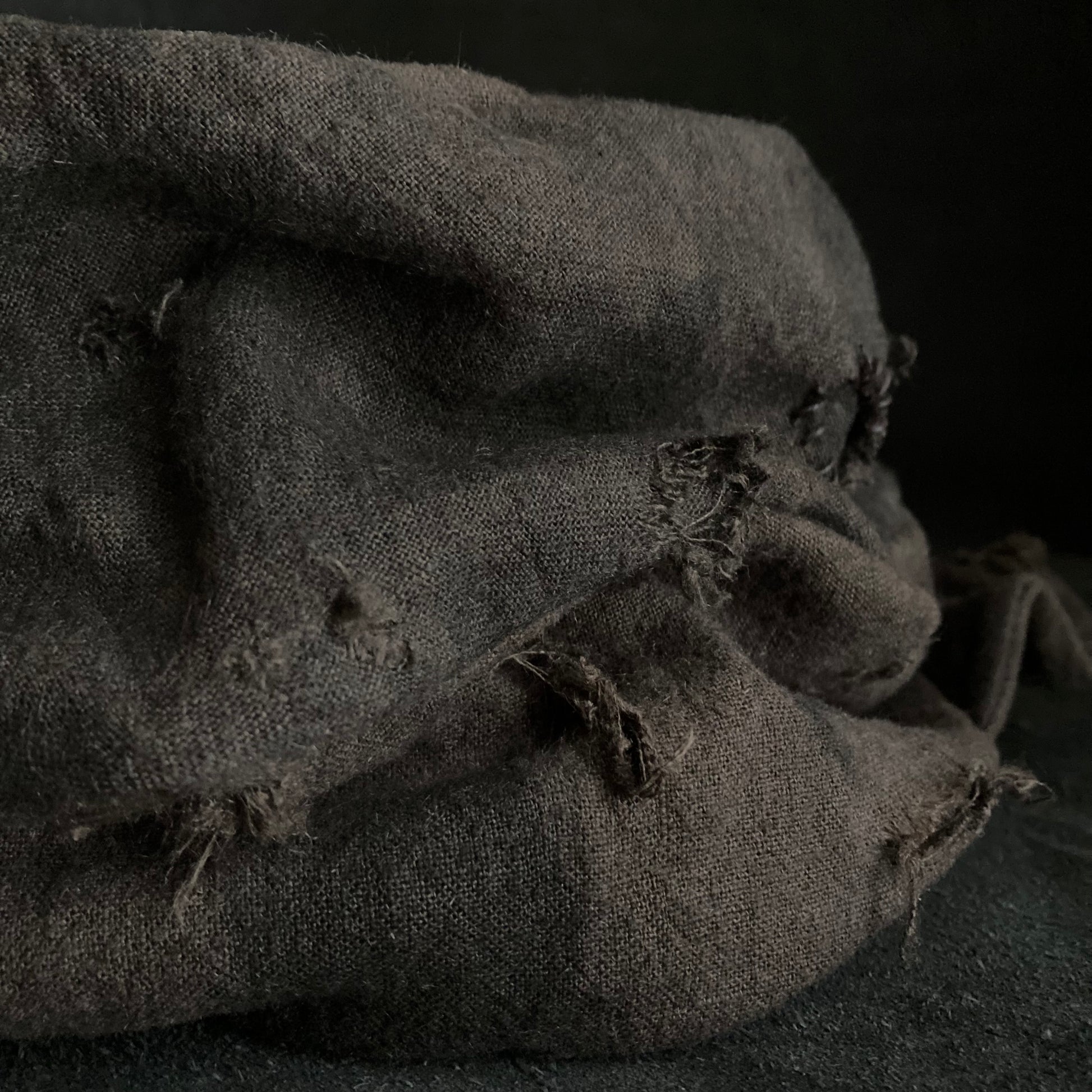 ブラウンの綿麻をブラックむら染めしました。