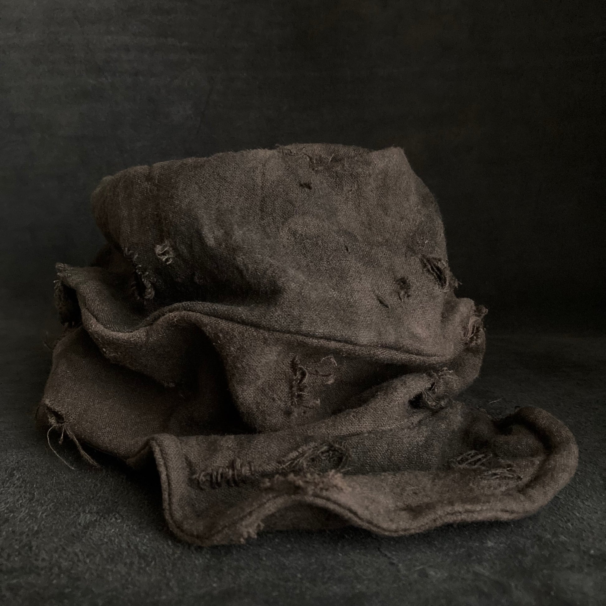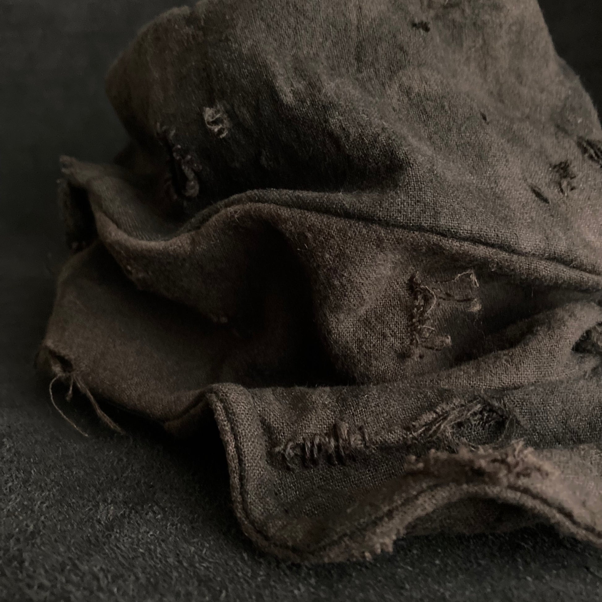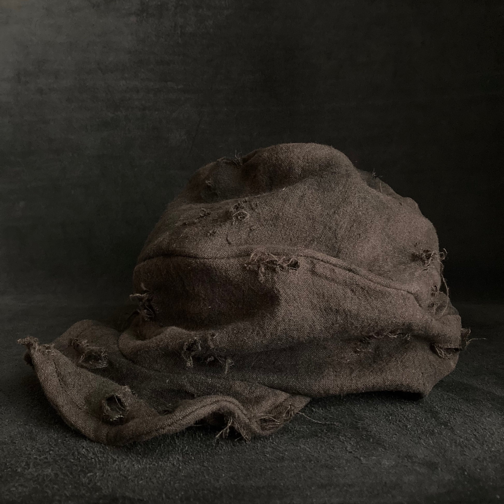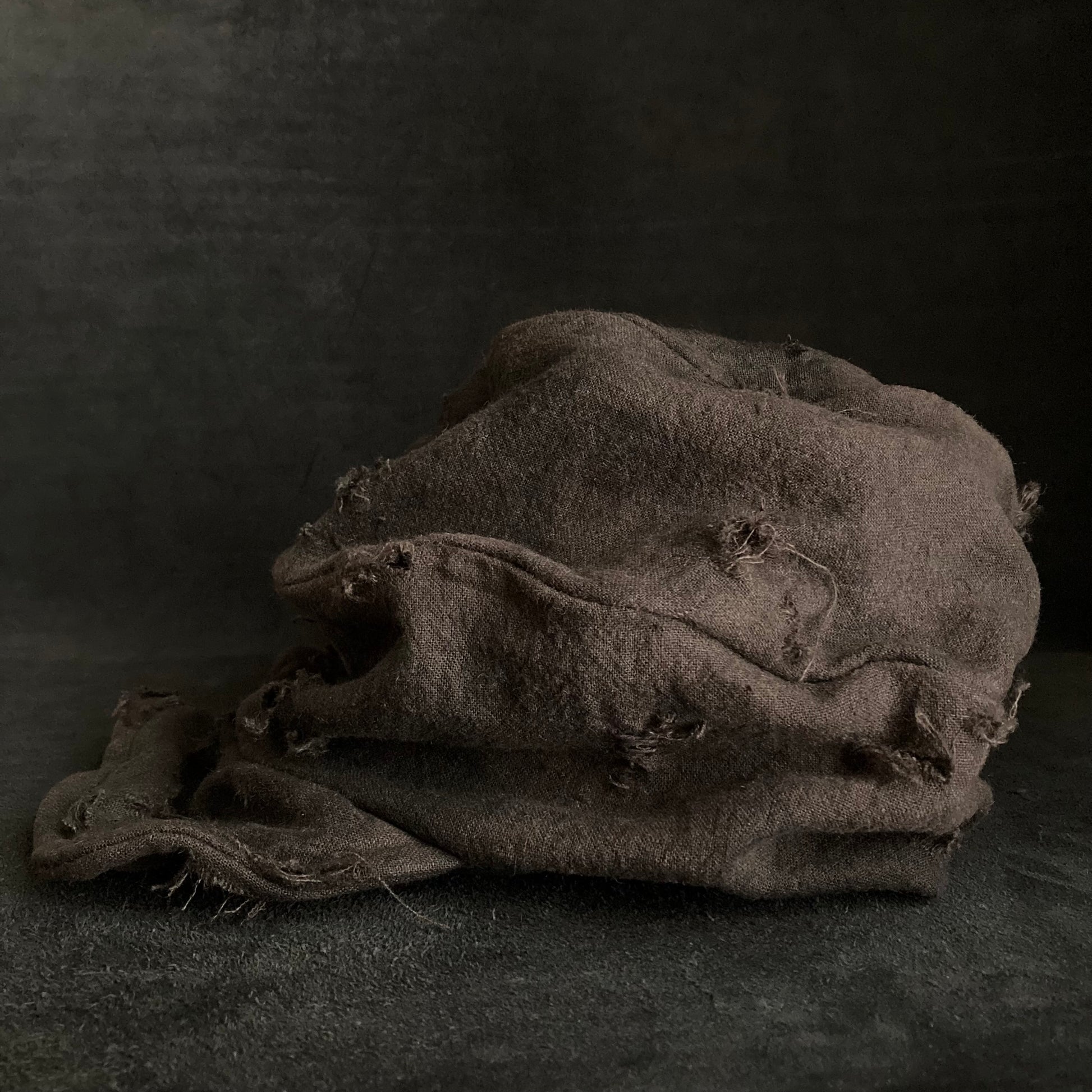 ブラウンの綿麻をブラックむら染めしました。