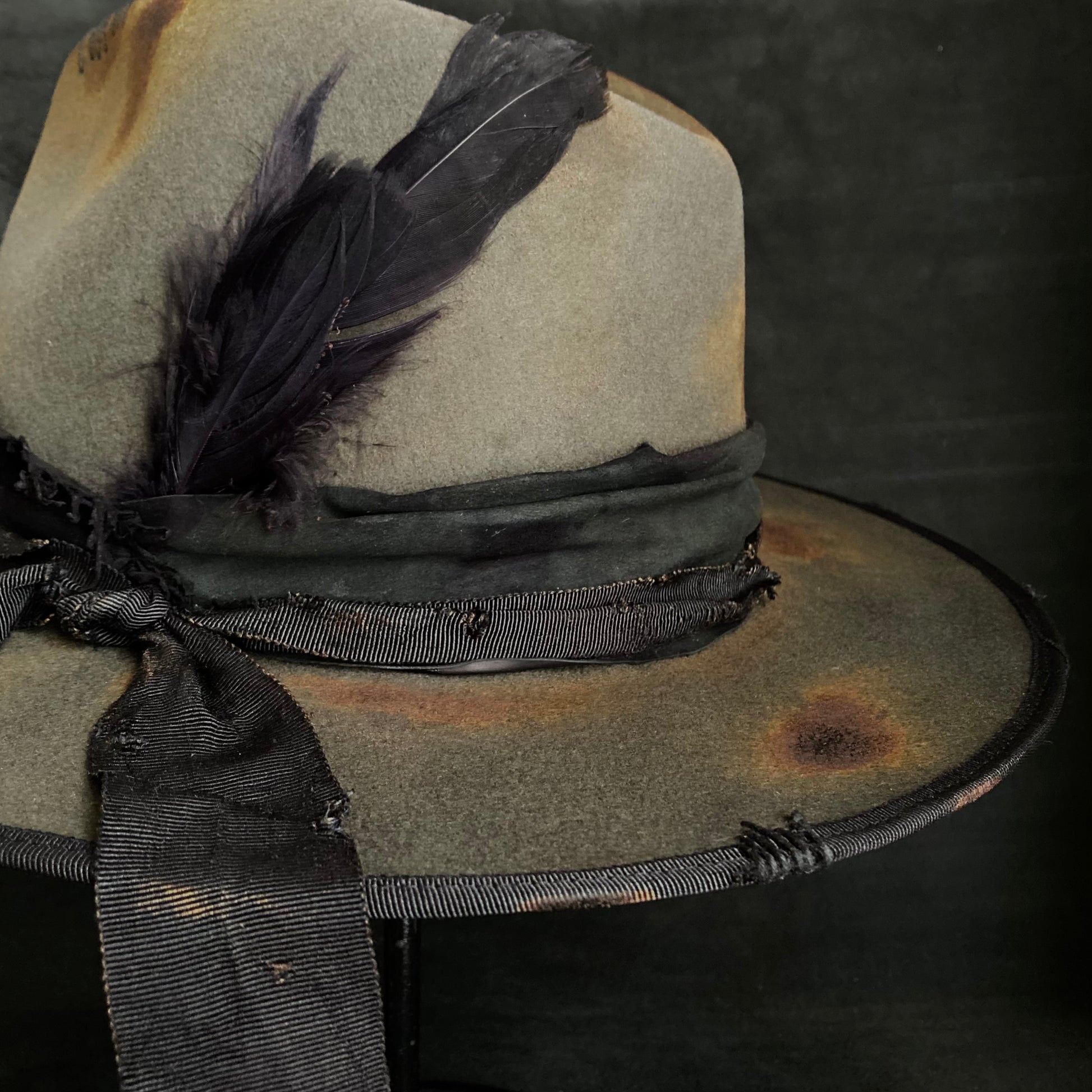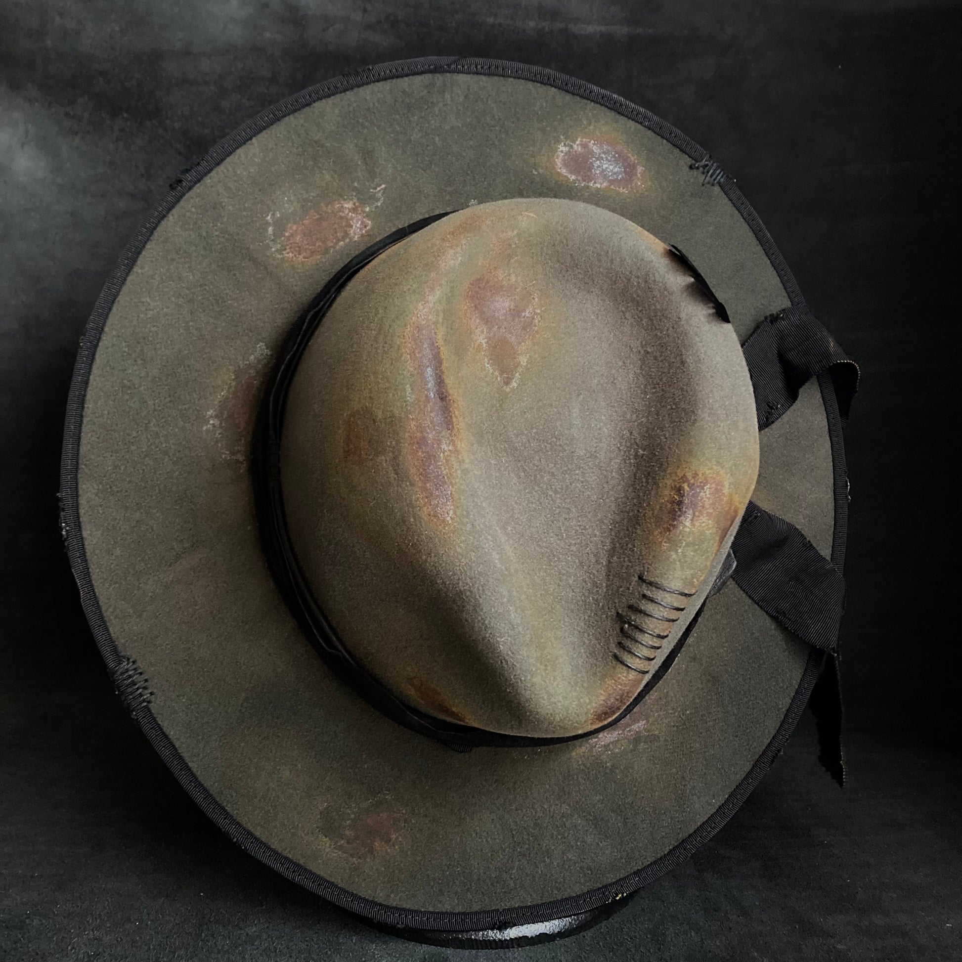 ブリム(つば)はダメージ加工したグログランリボンでパイピング仕上げです。