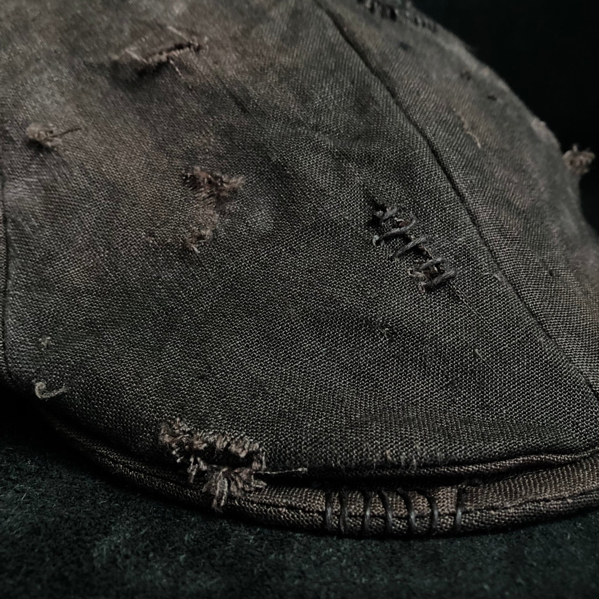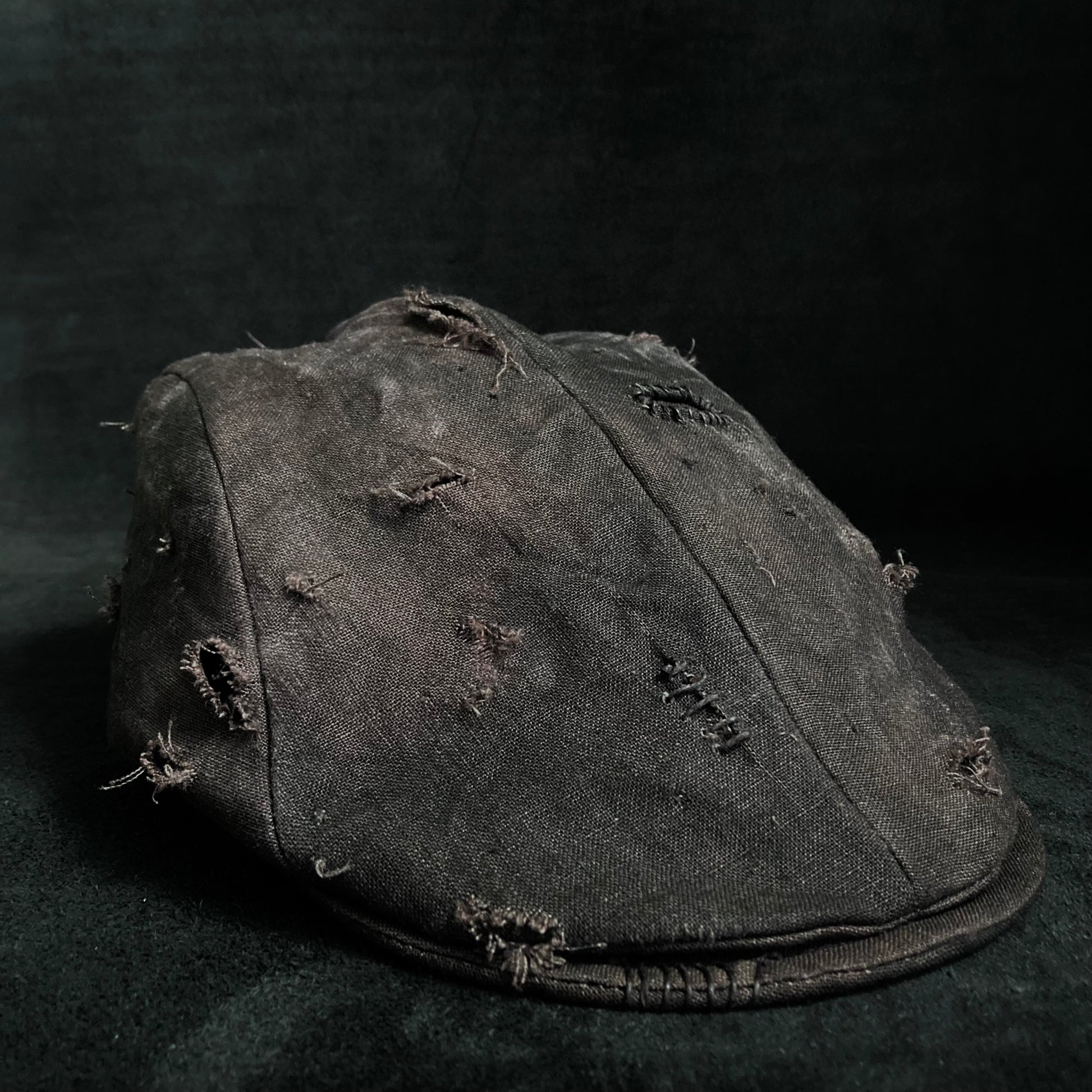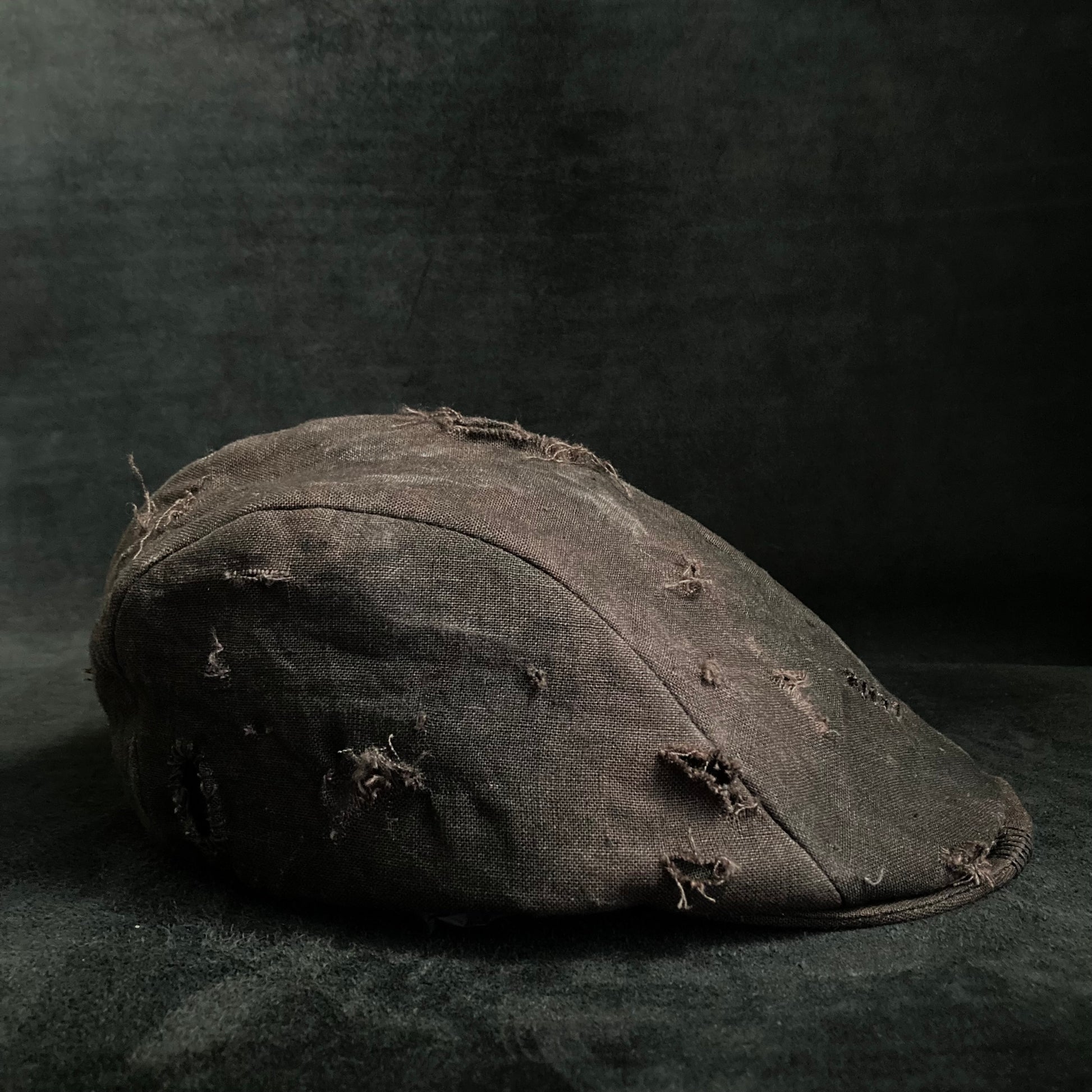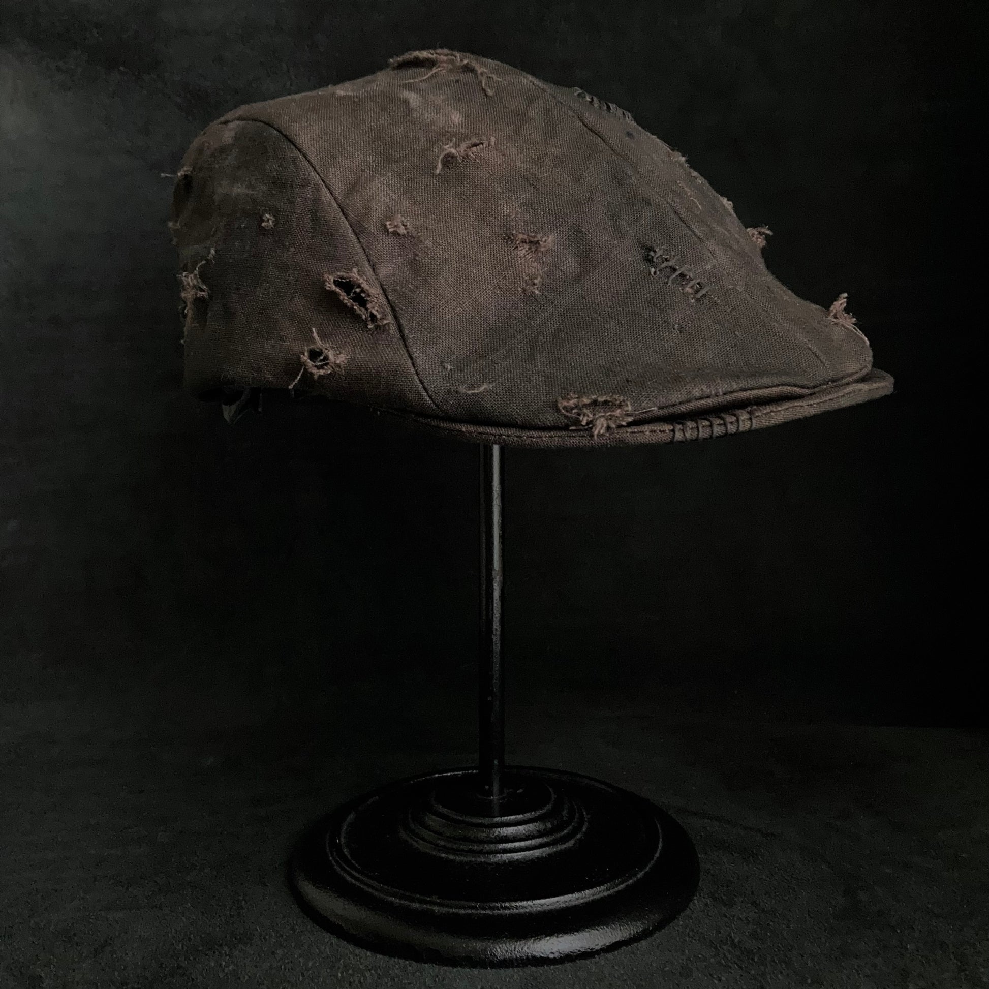 むら染め加工したブラウンリネンのハンチング。