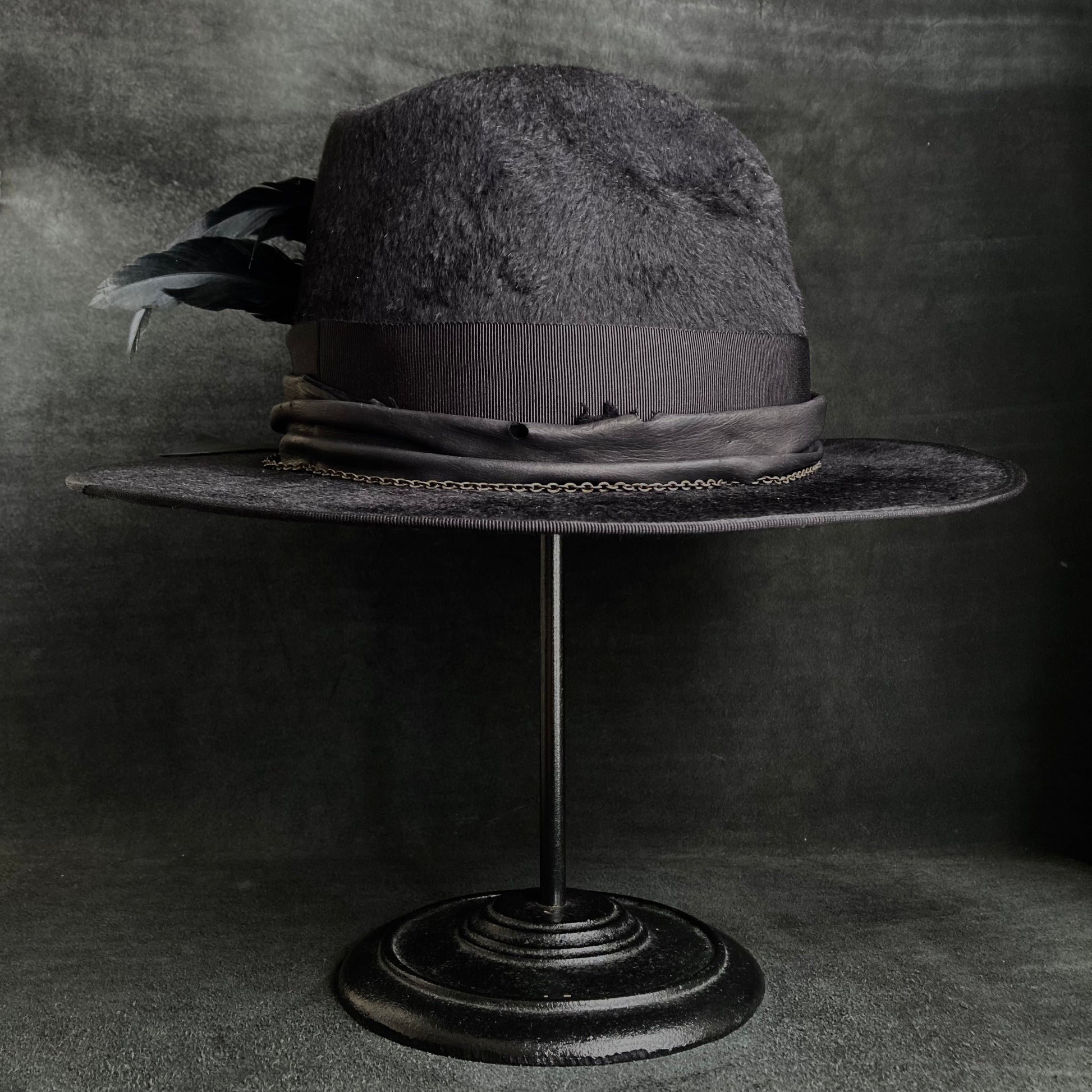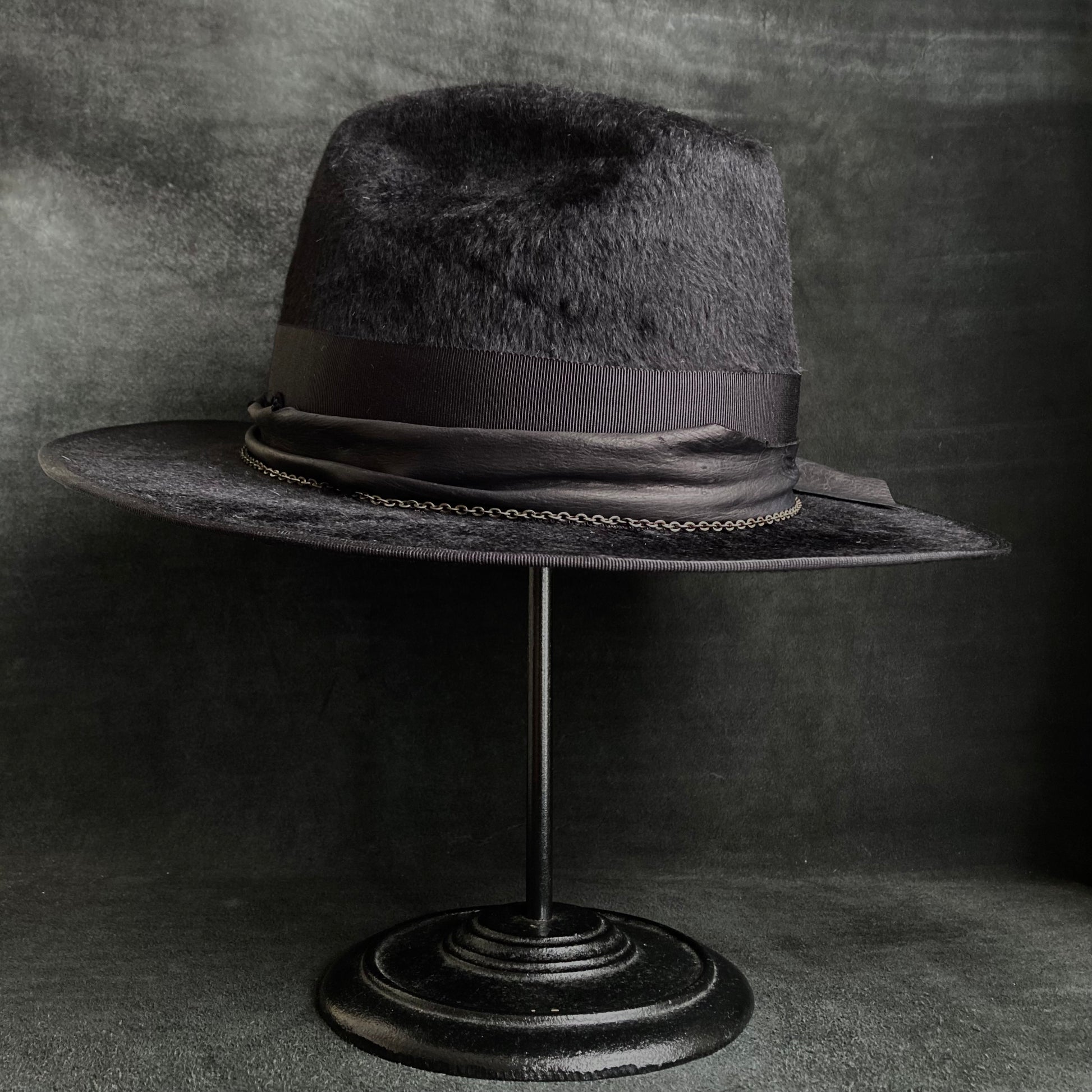 毛足が長いファータイプのラビット素材を使用した中折れハット。