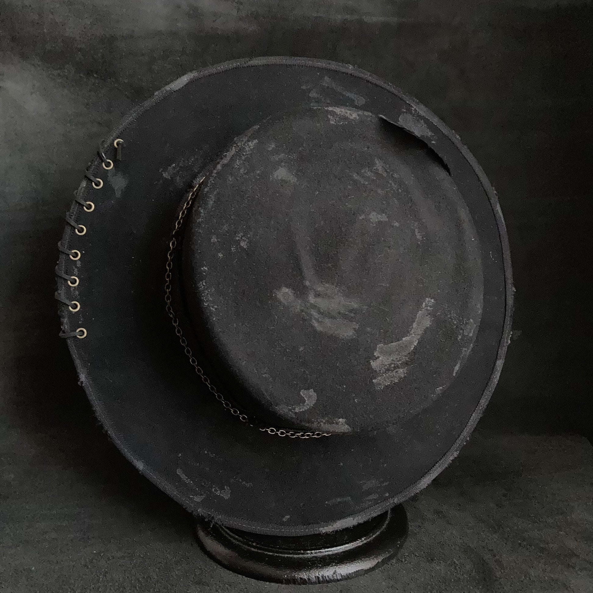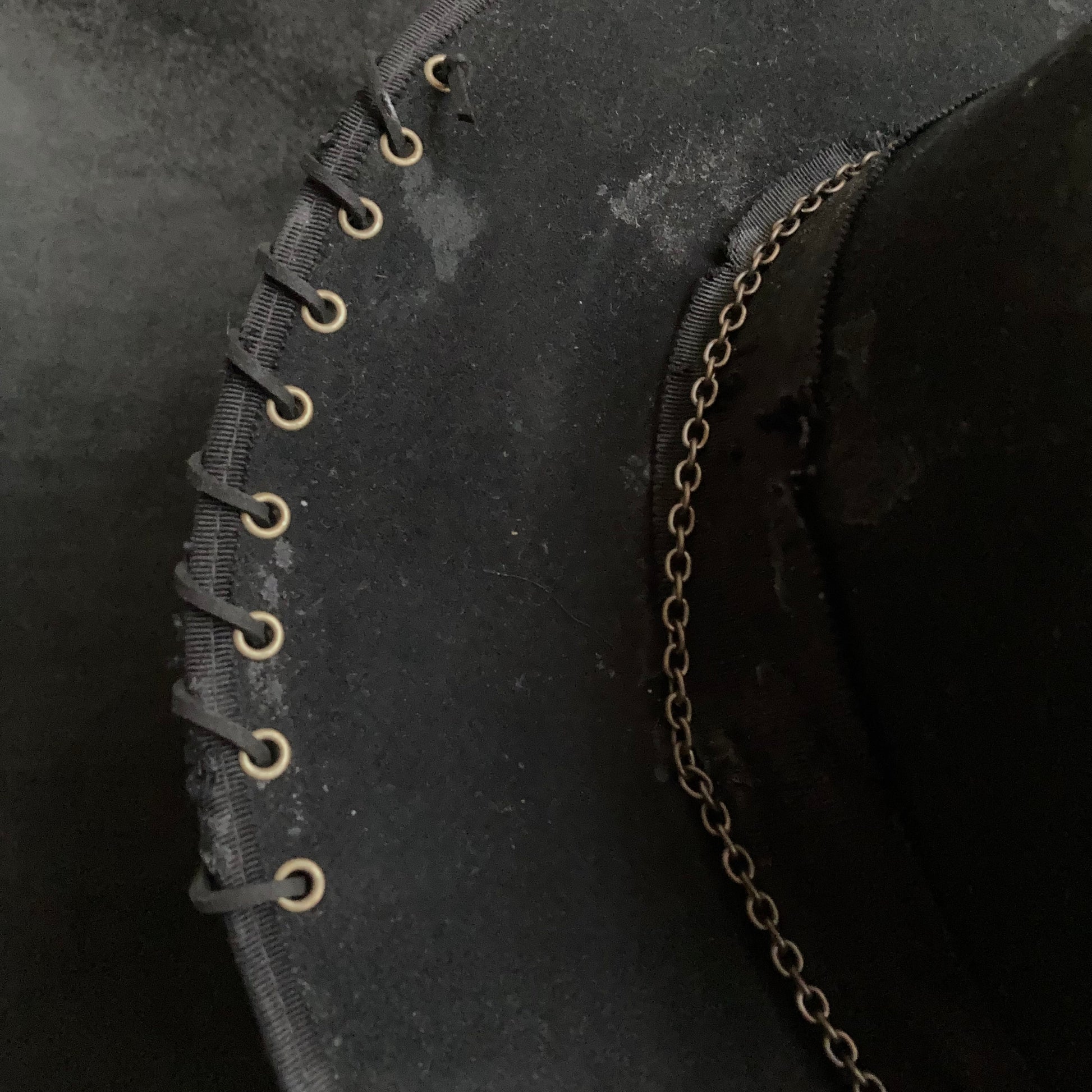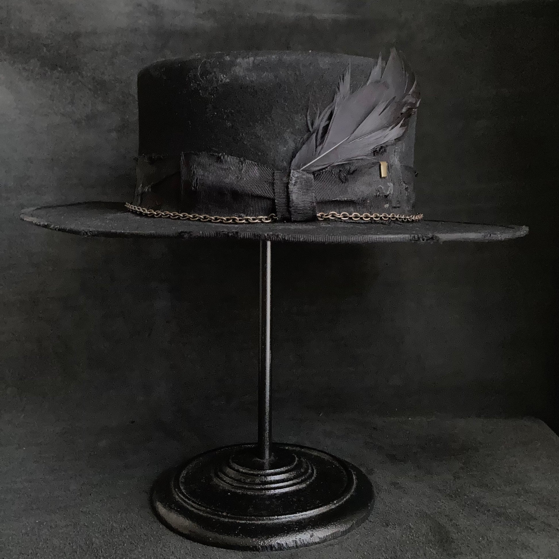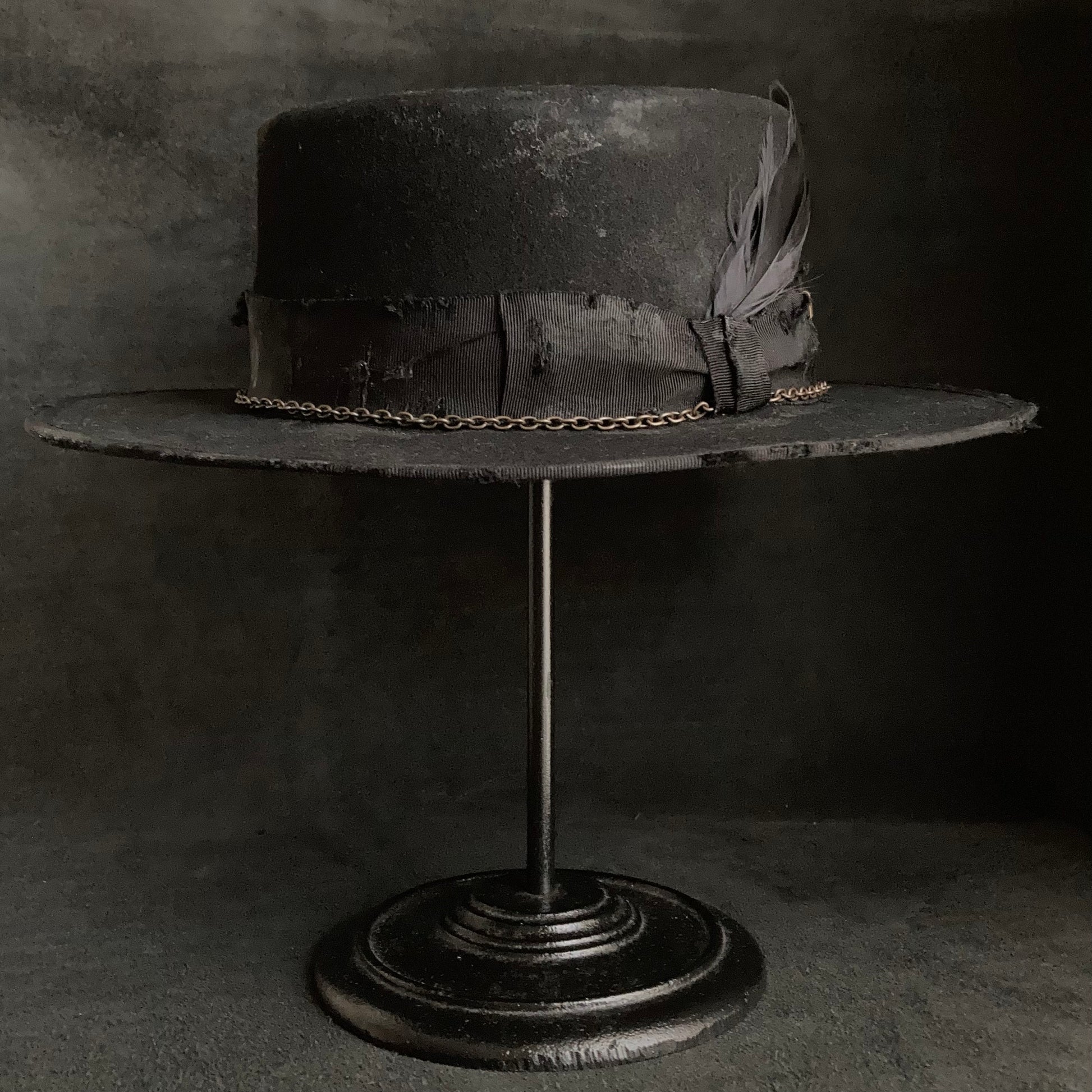 飾りには、ダメージ加工したグログランリボンとアンティークゴールドのチェーンを使用しました。