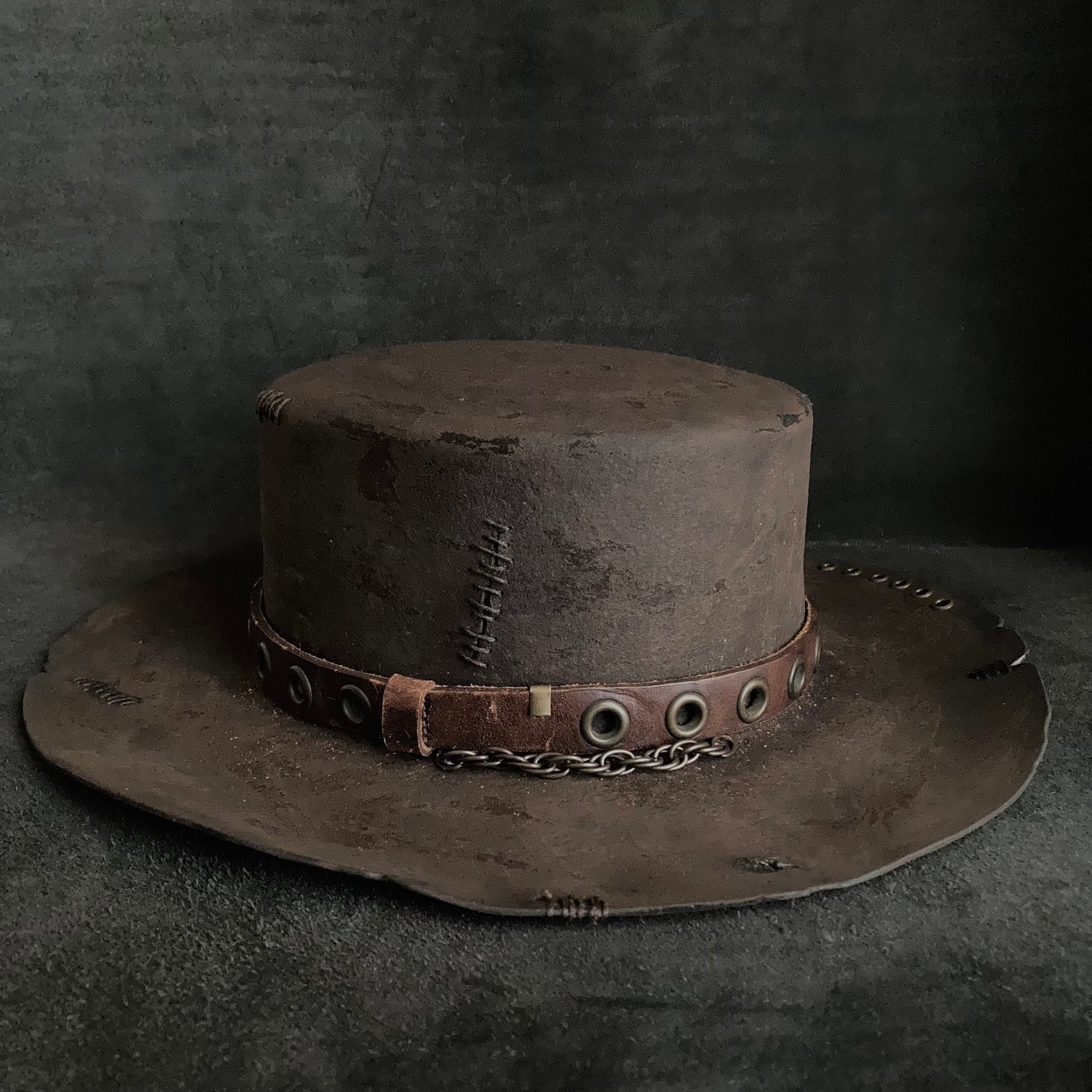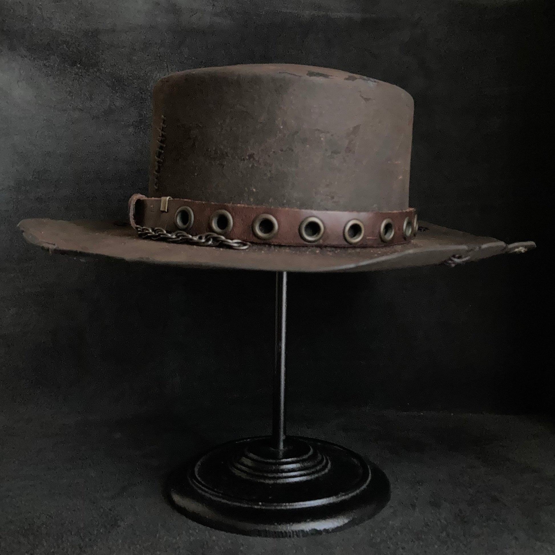 飾りにはハトメ飾りのレザーベルト、チェーンを使用しています。