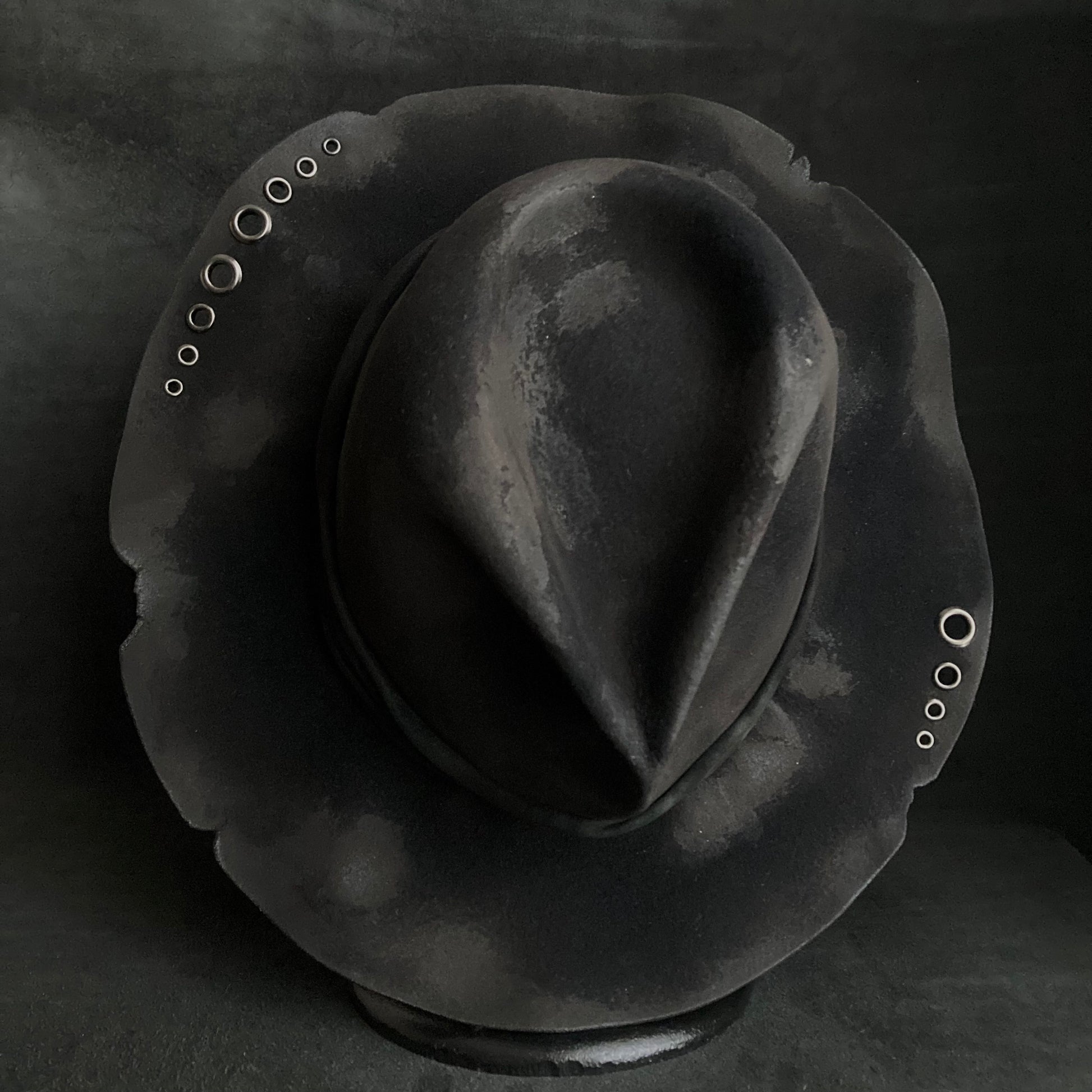 Eyelet burned black rabbit fedora hat