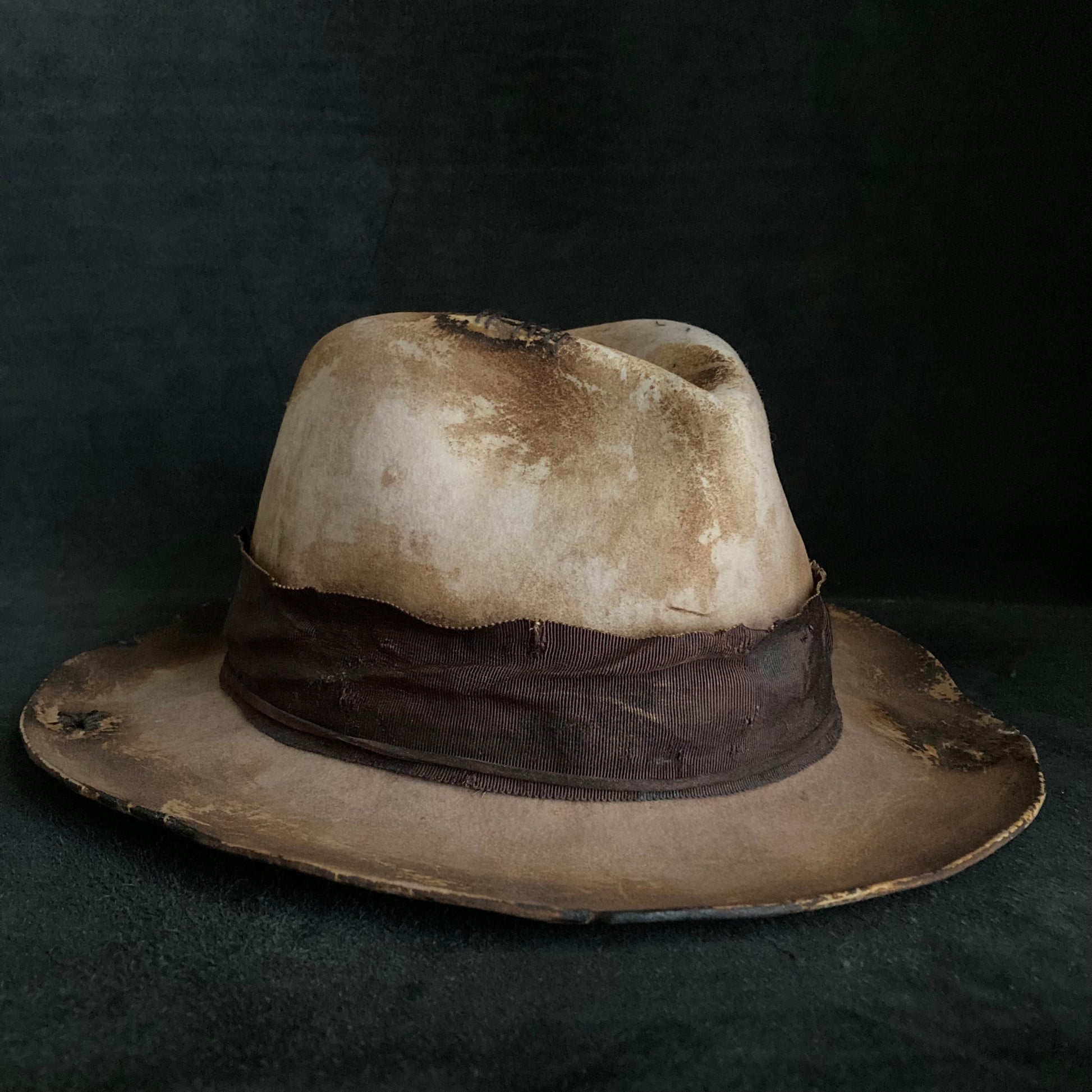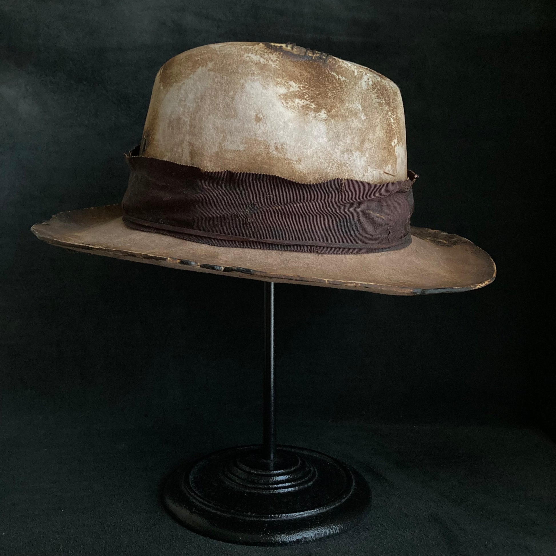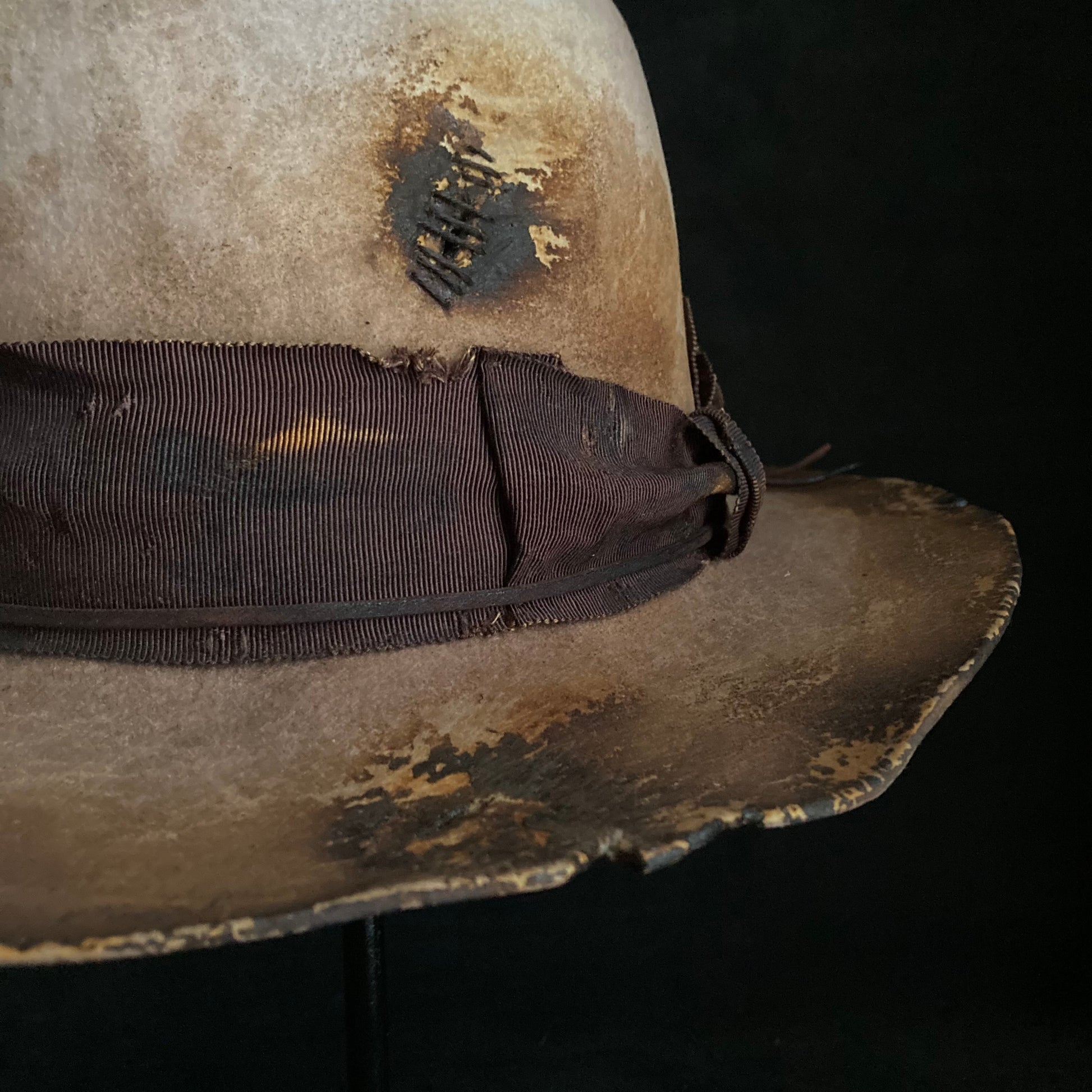 飾りには、バーン&ダメージ加工したグログランリボンを巻いています。