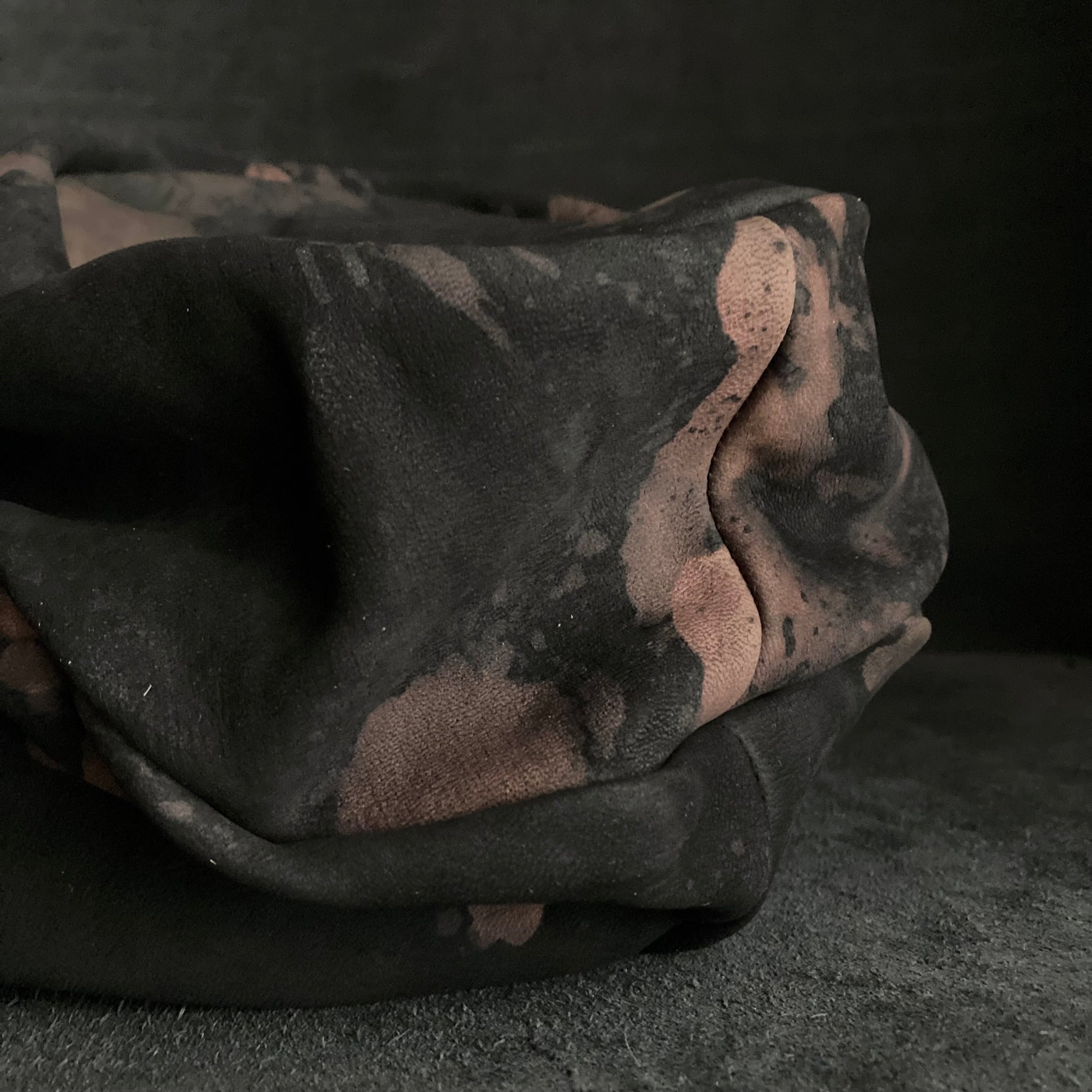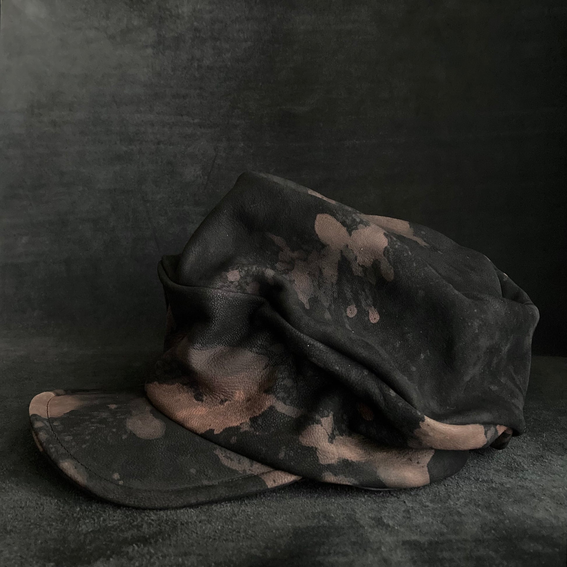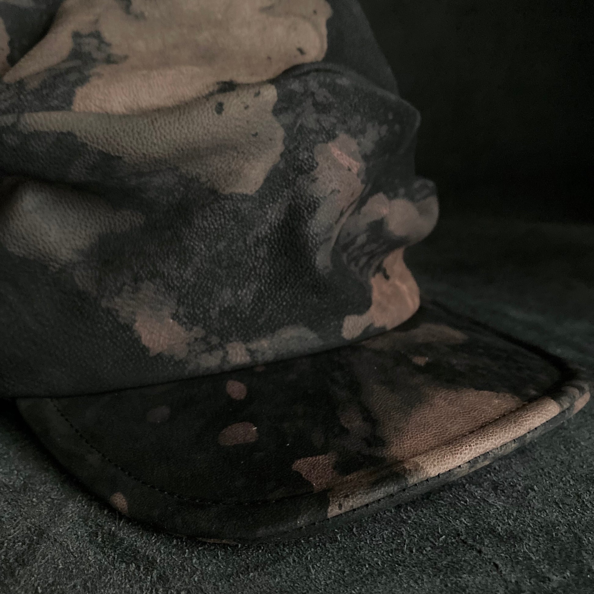 ブラックのレザーをブリーチ加工して、変色させました。