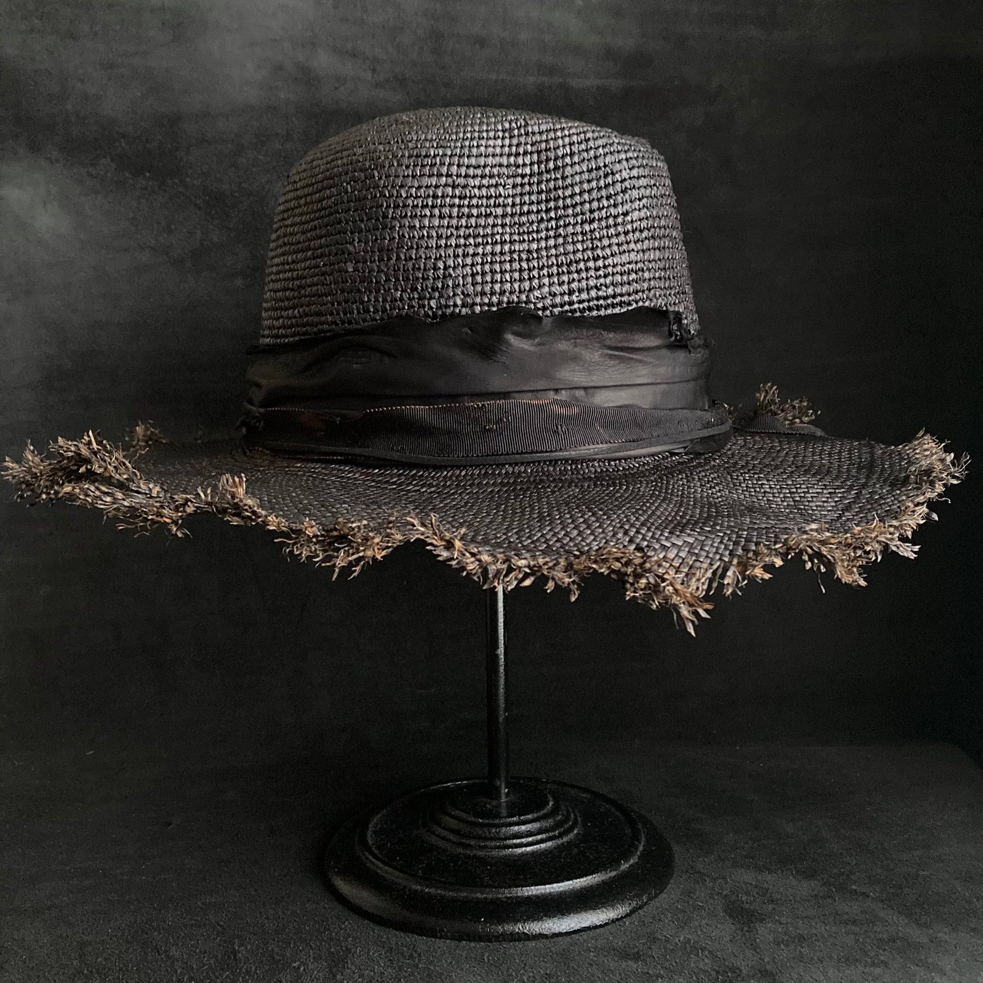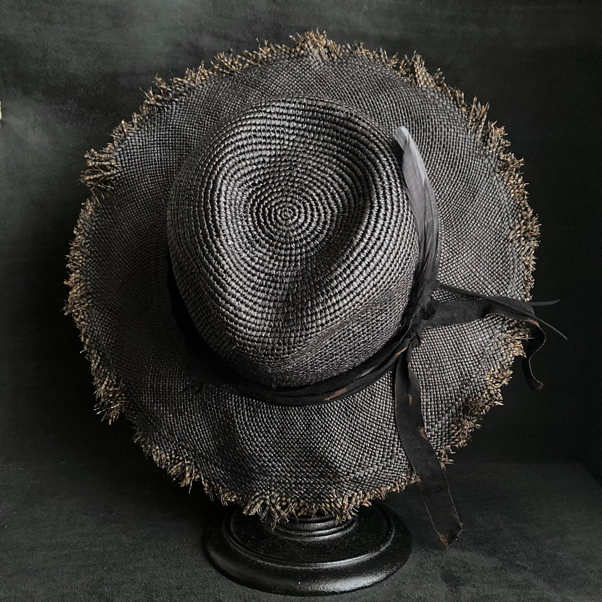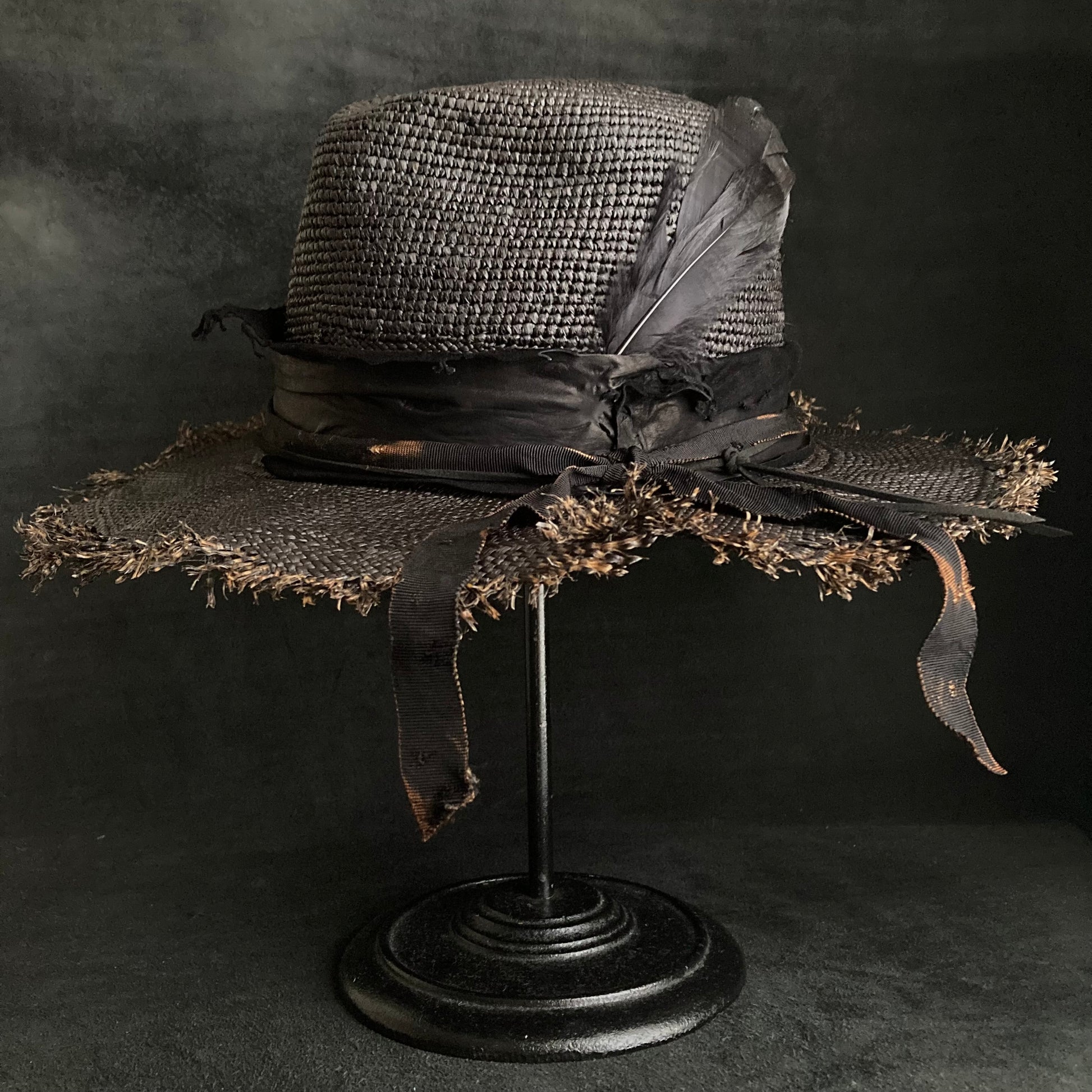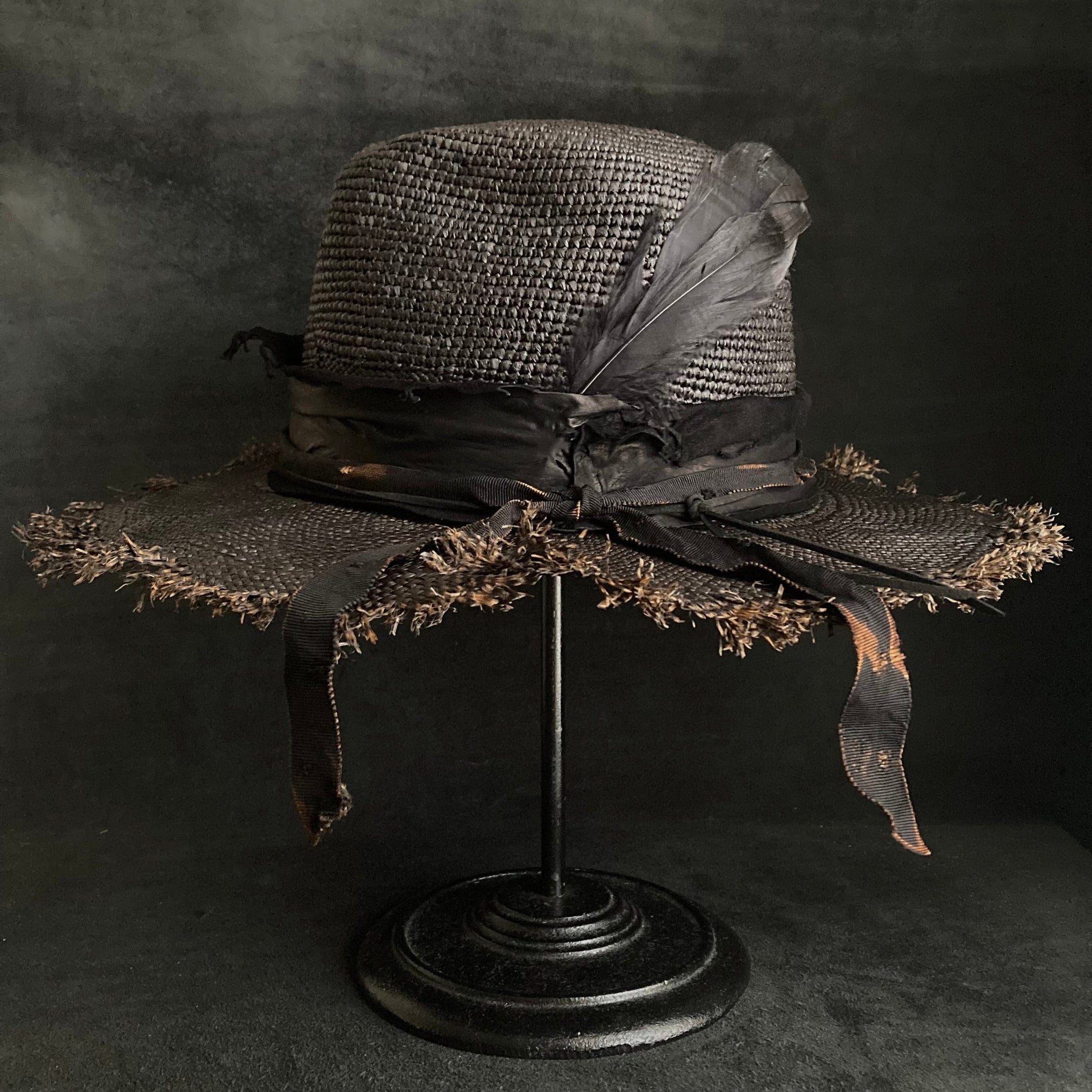 飾りには、バーン加工したグログランリボンとレザーを使用しています。。