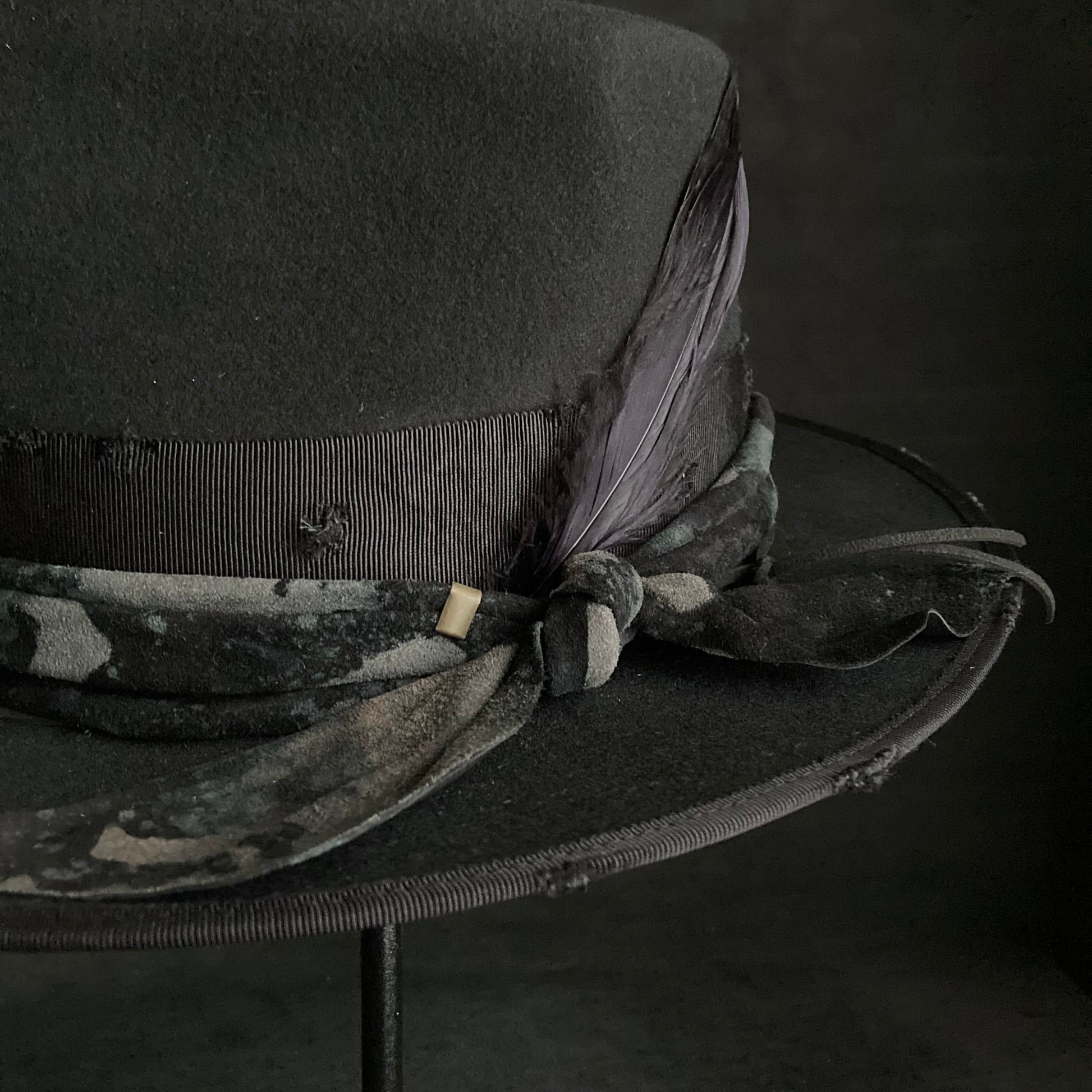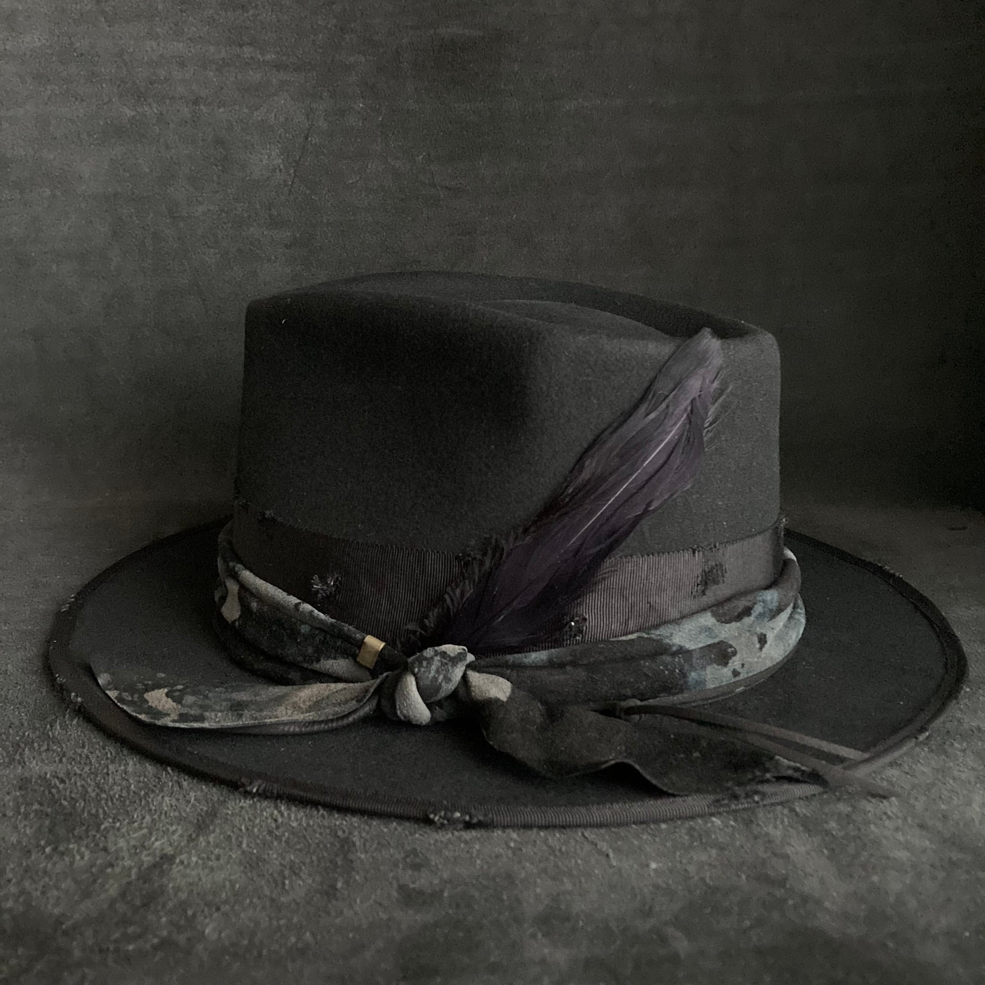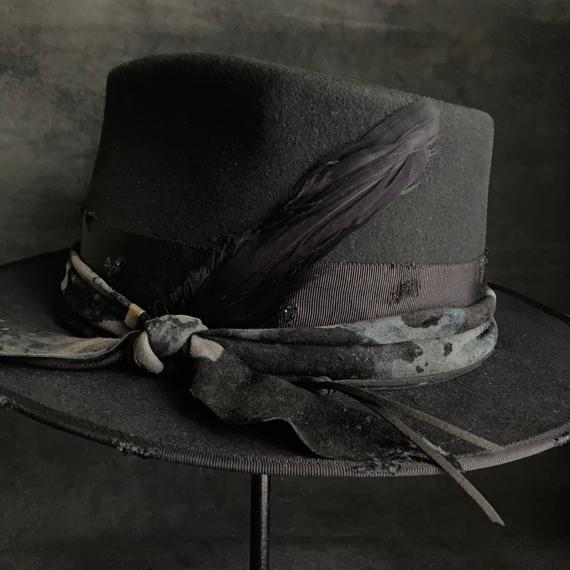 Muddy leather black fedora hat