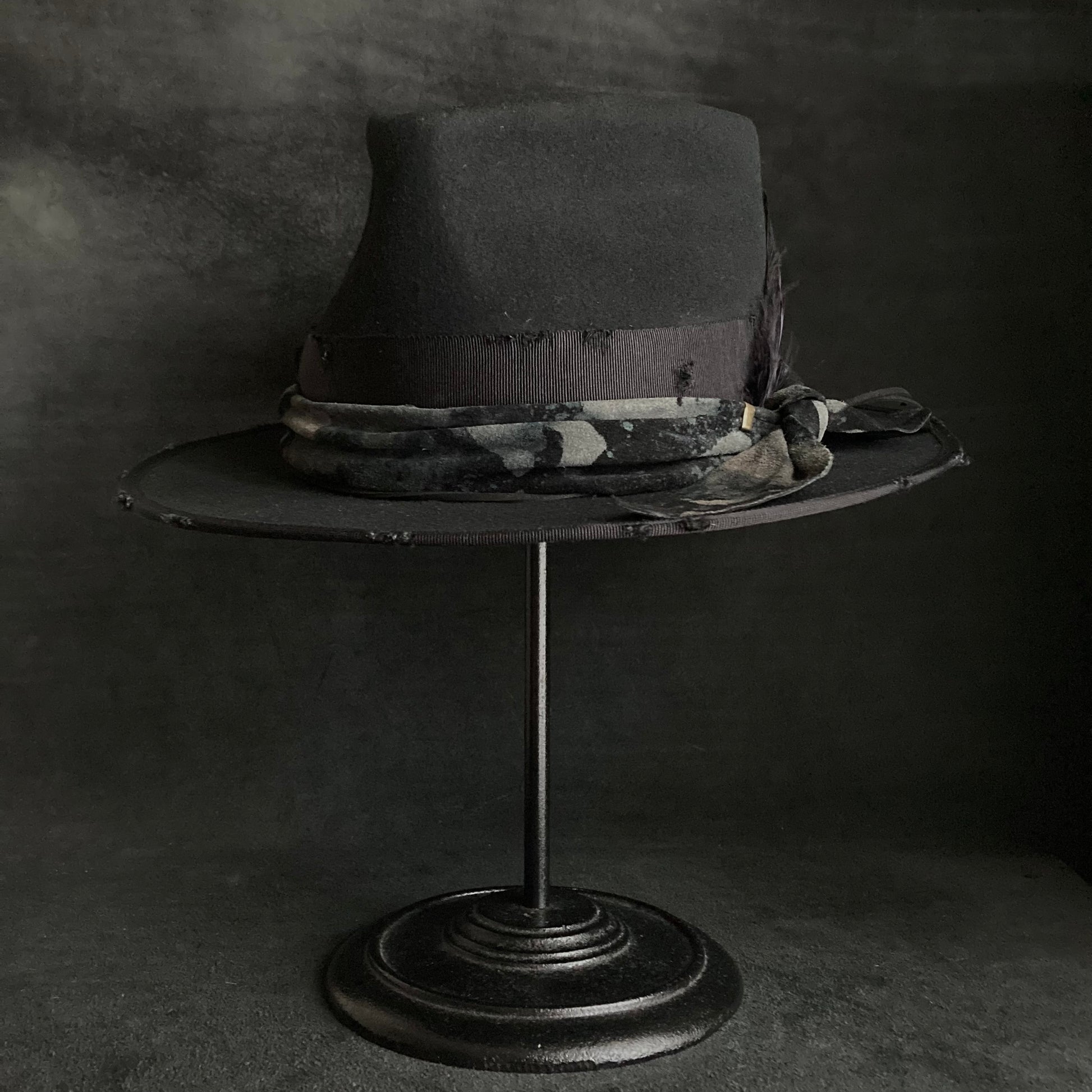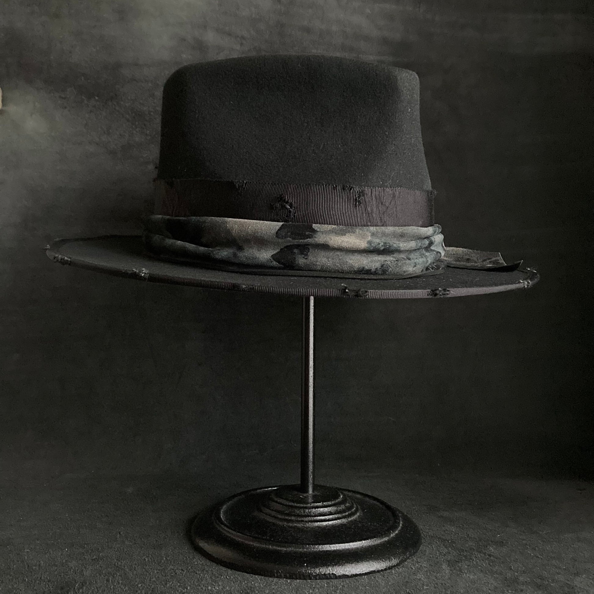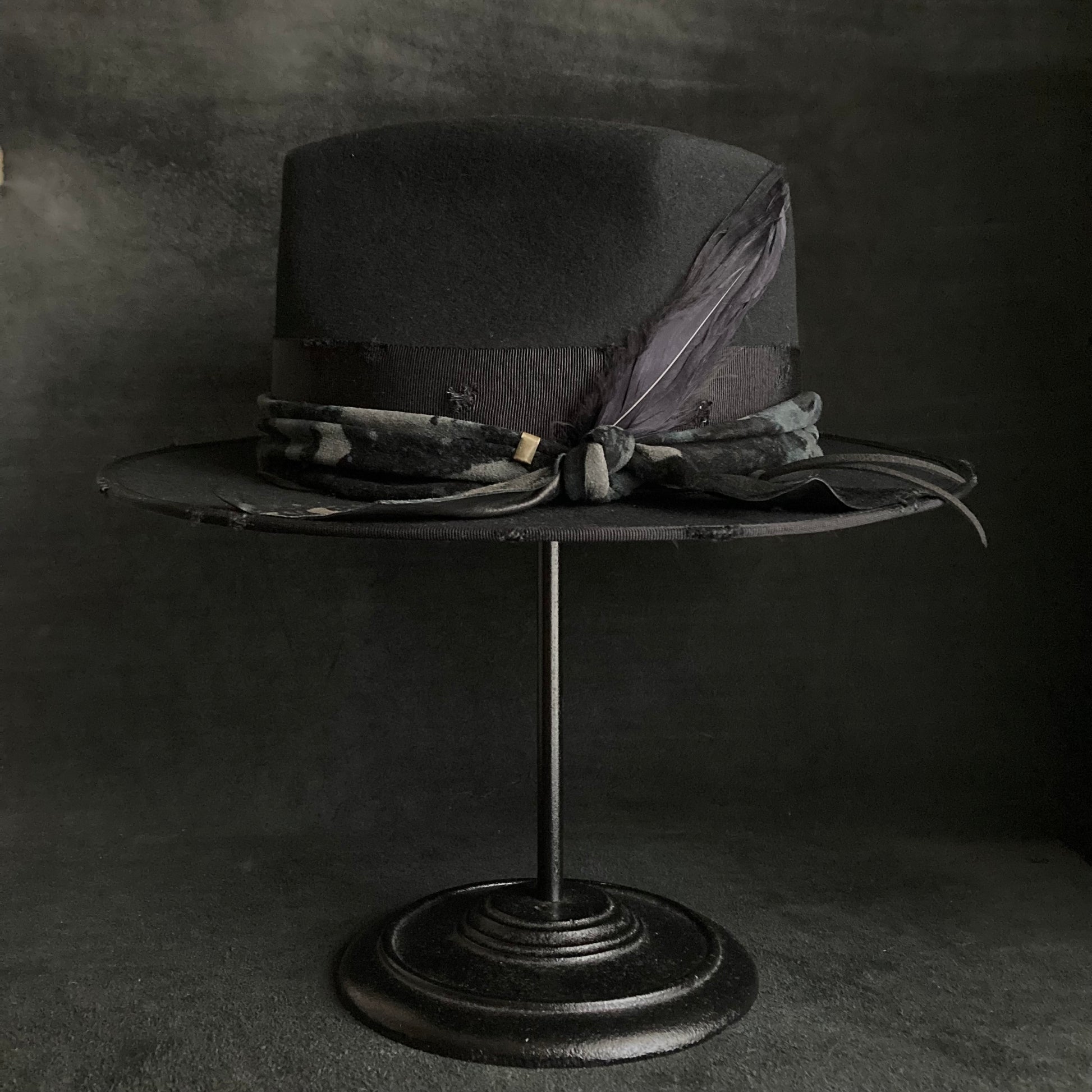 Muddy leather black fedora hat