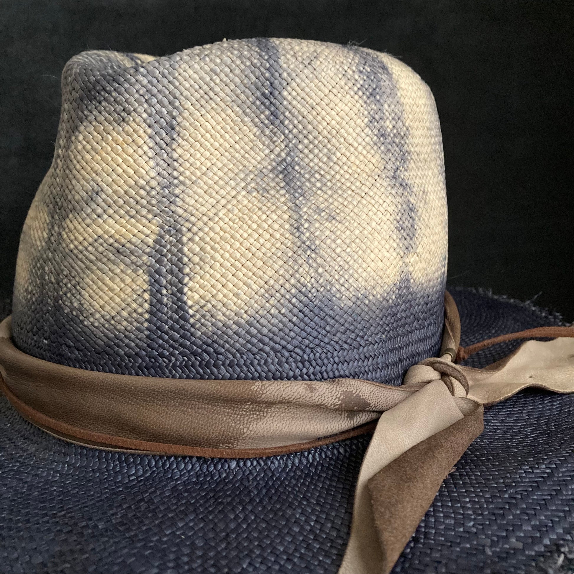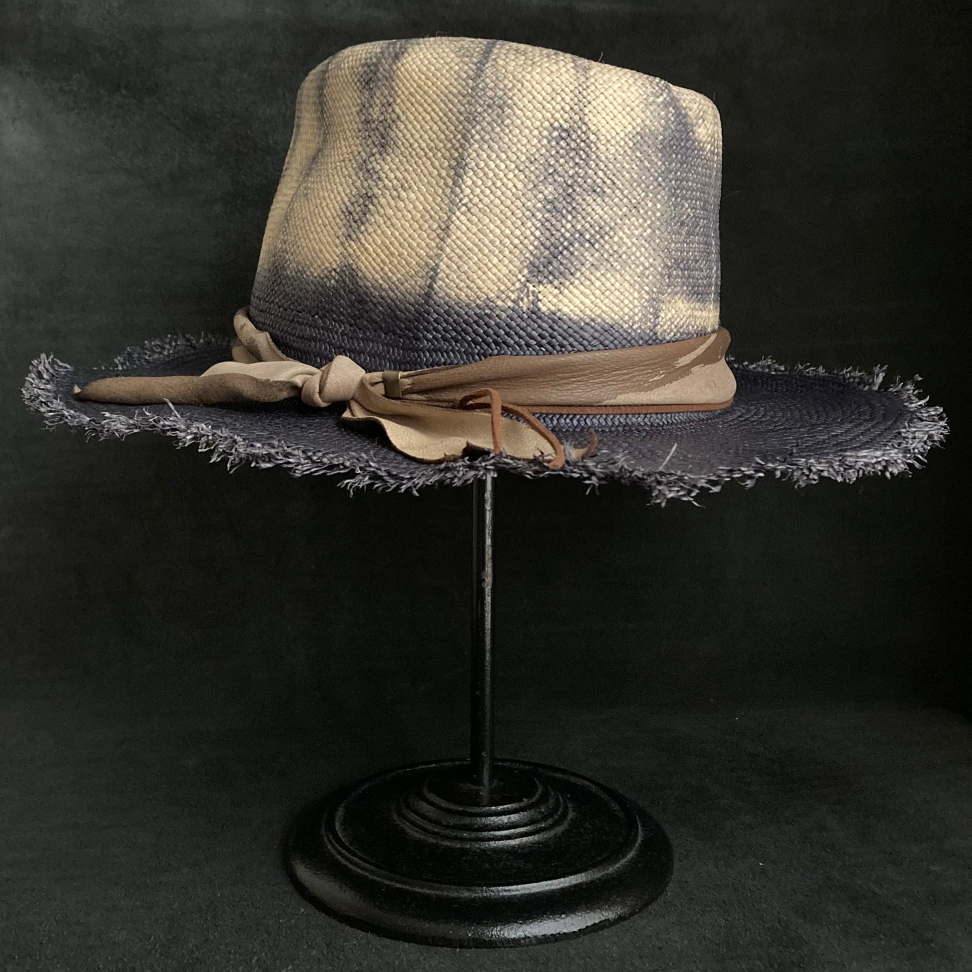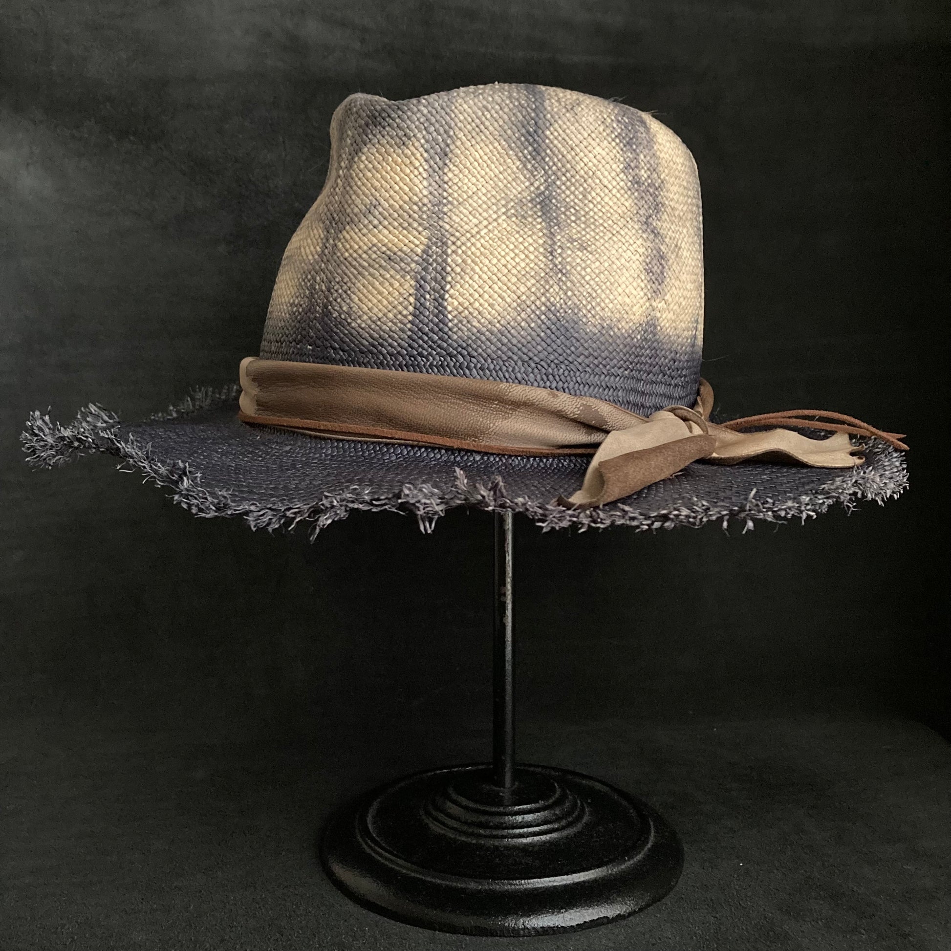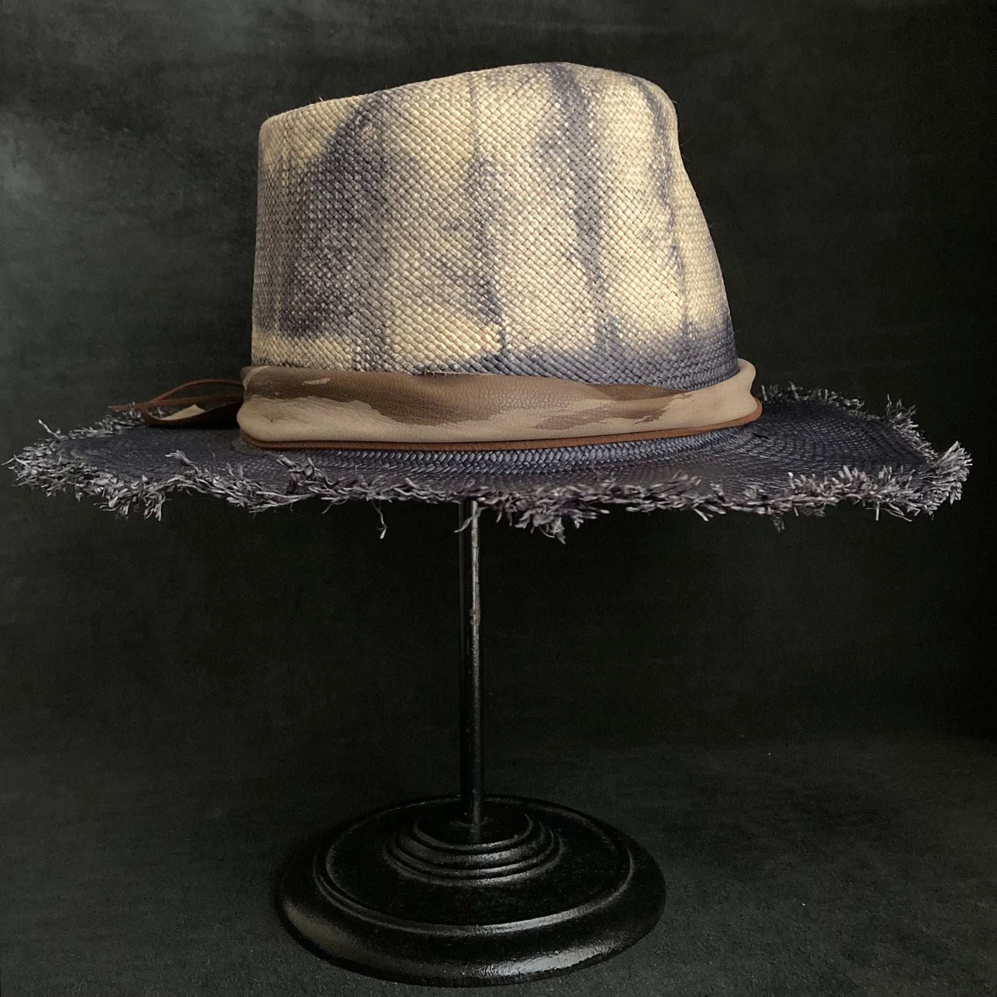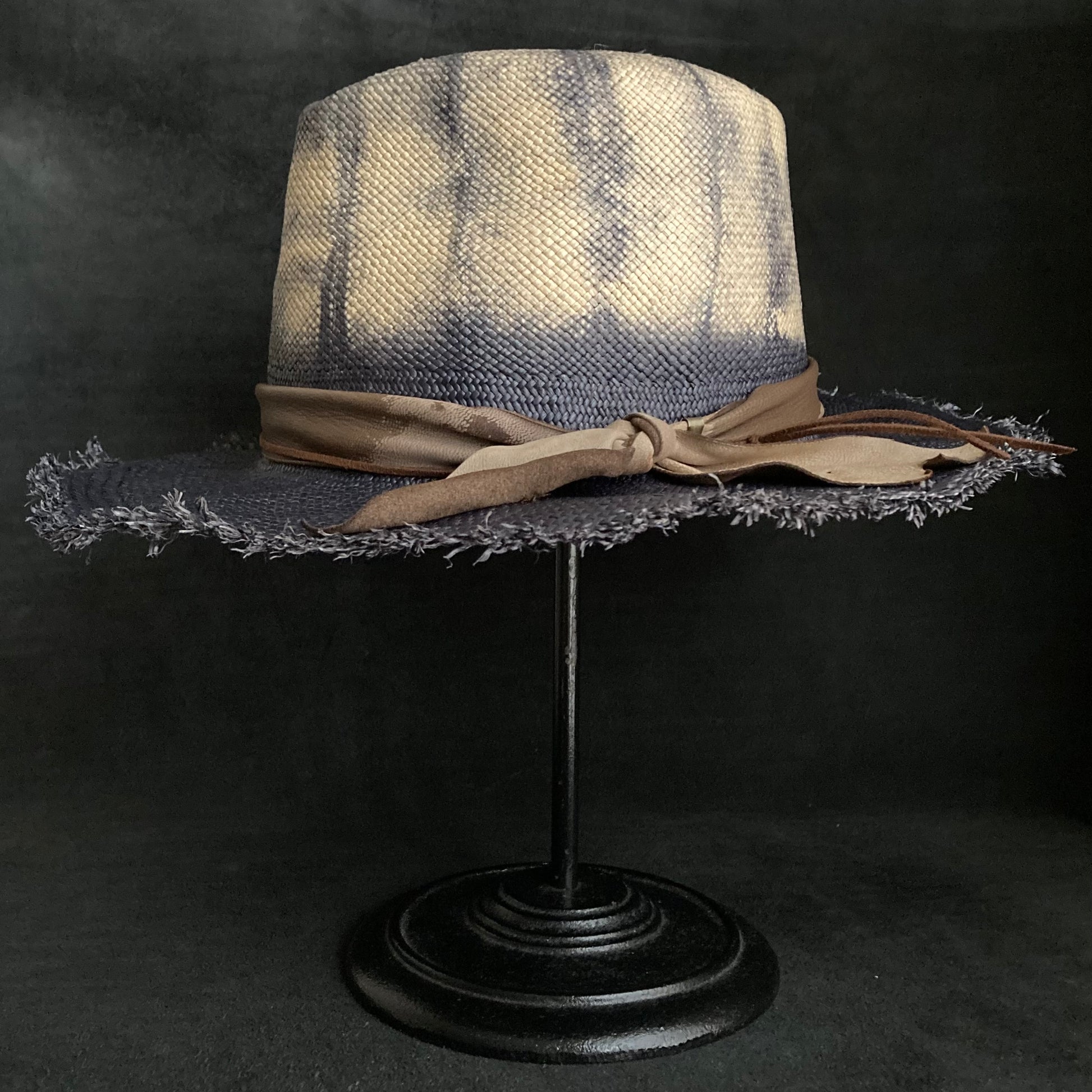 柄染めしたヴィンテージパナマを使用した中折れハット。
