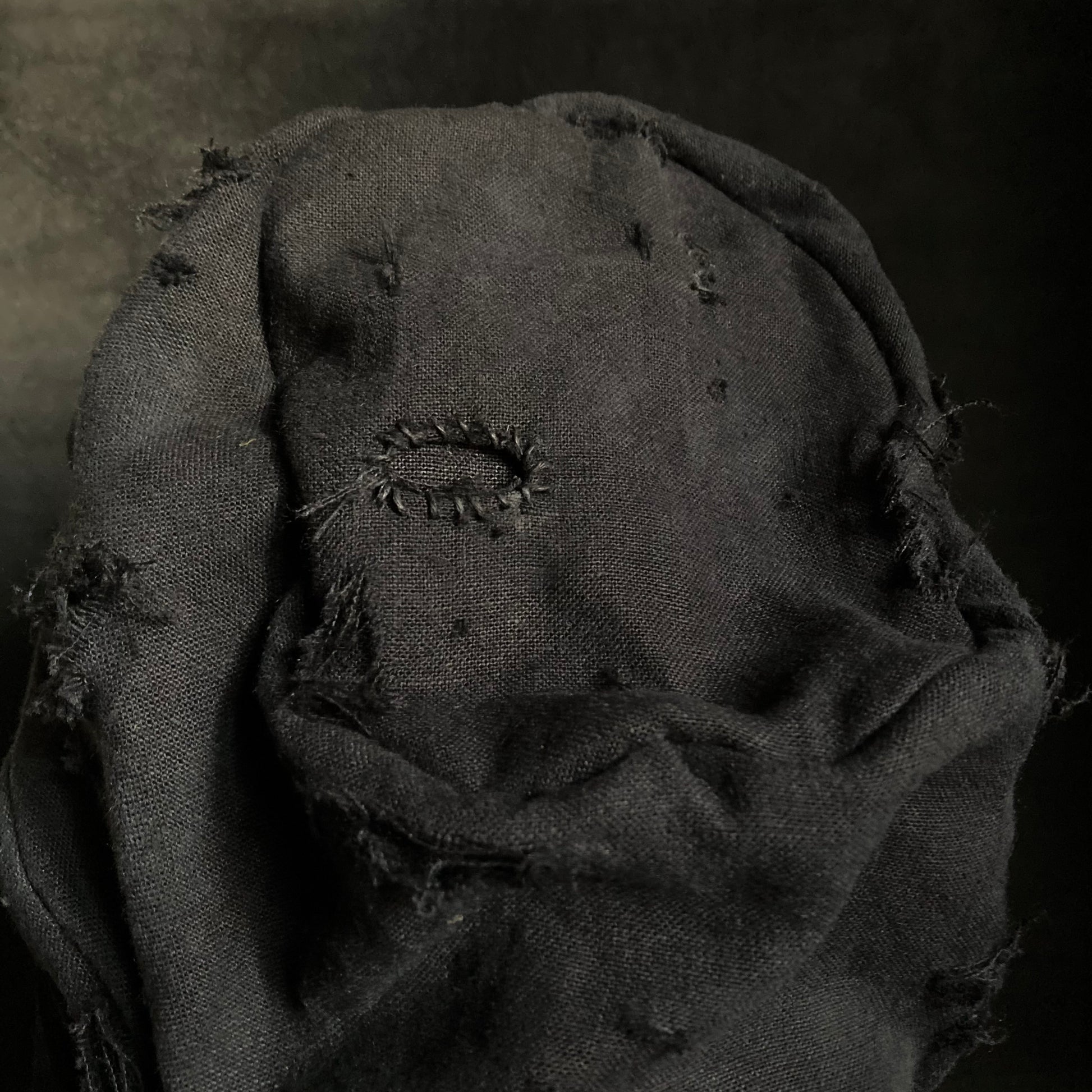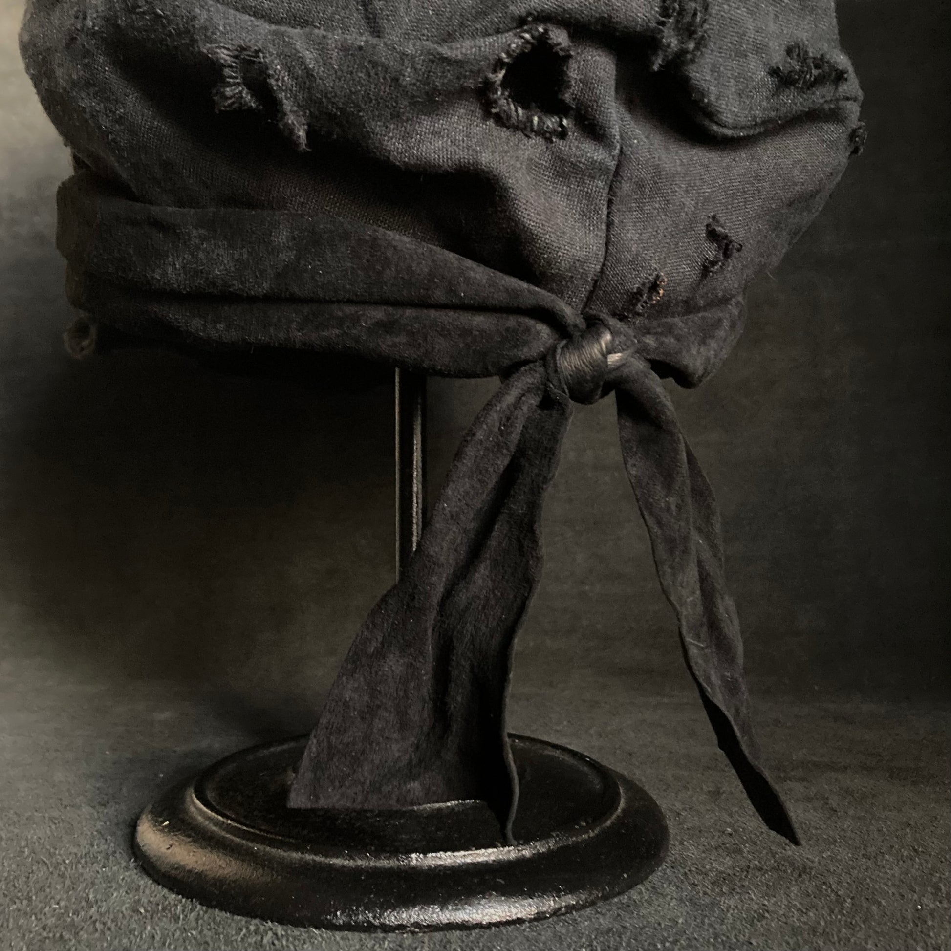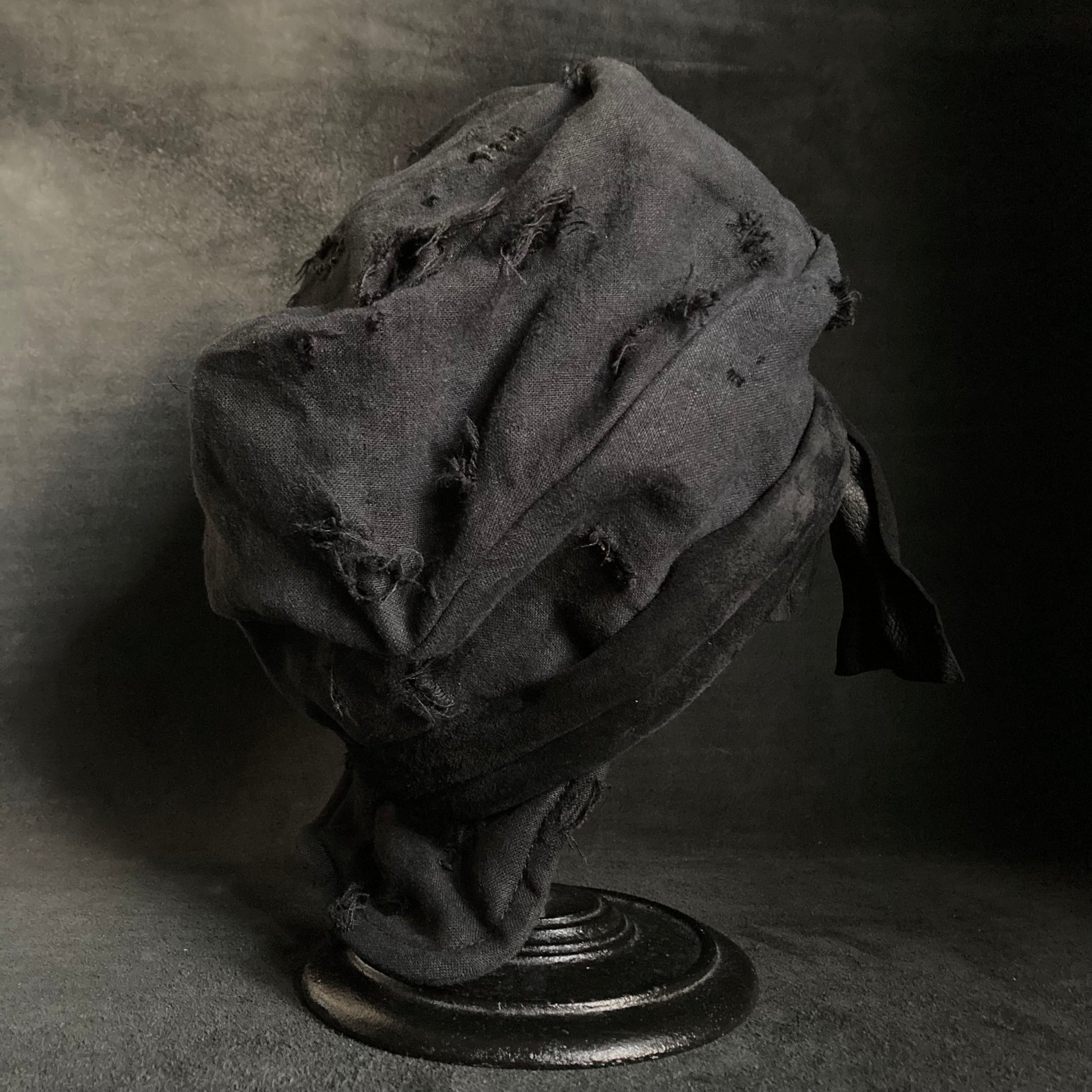 Black linen damage martial turn cap
