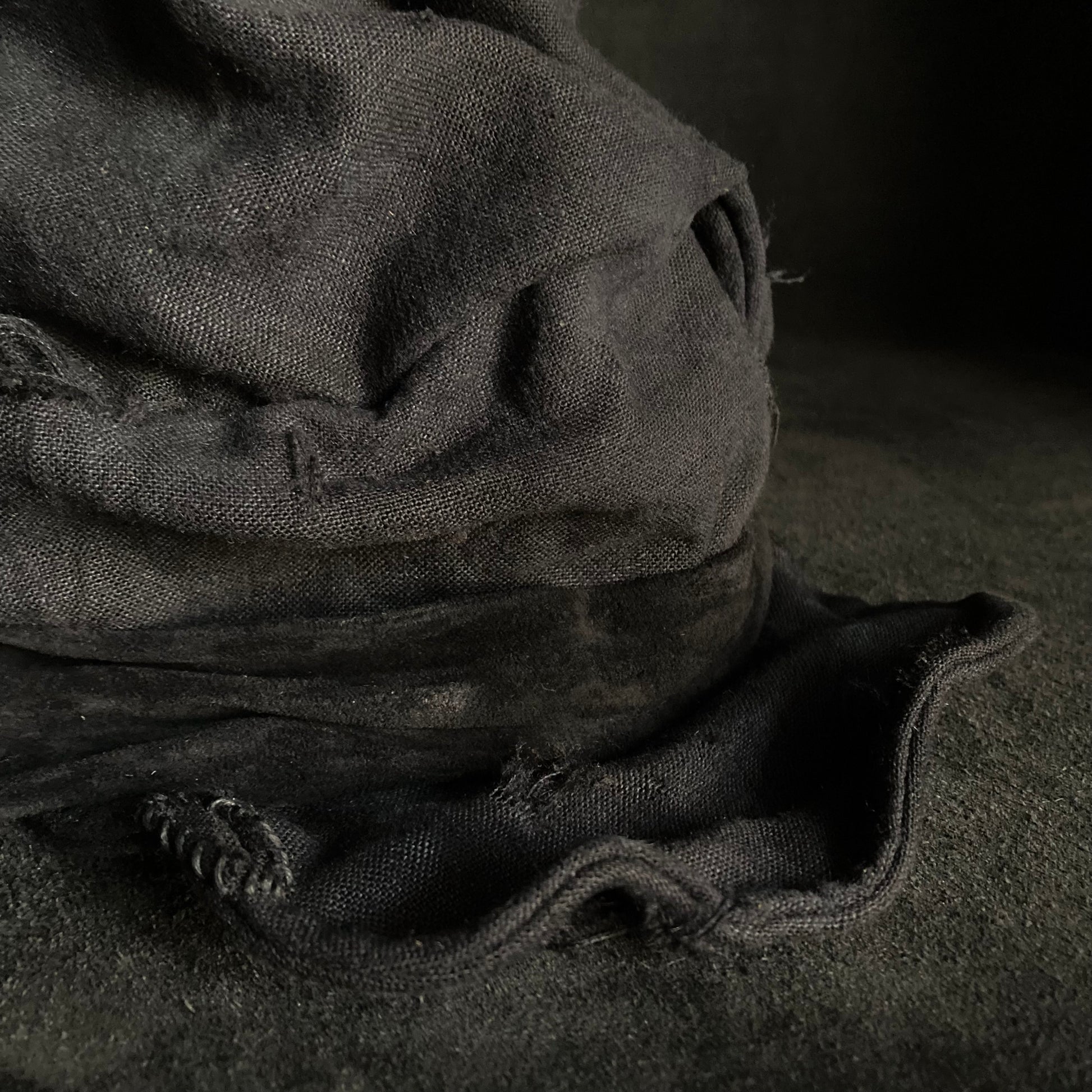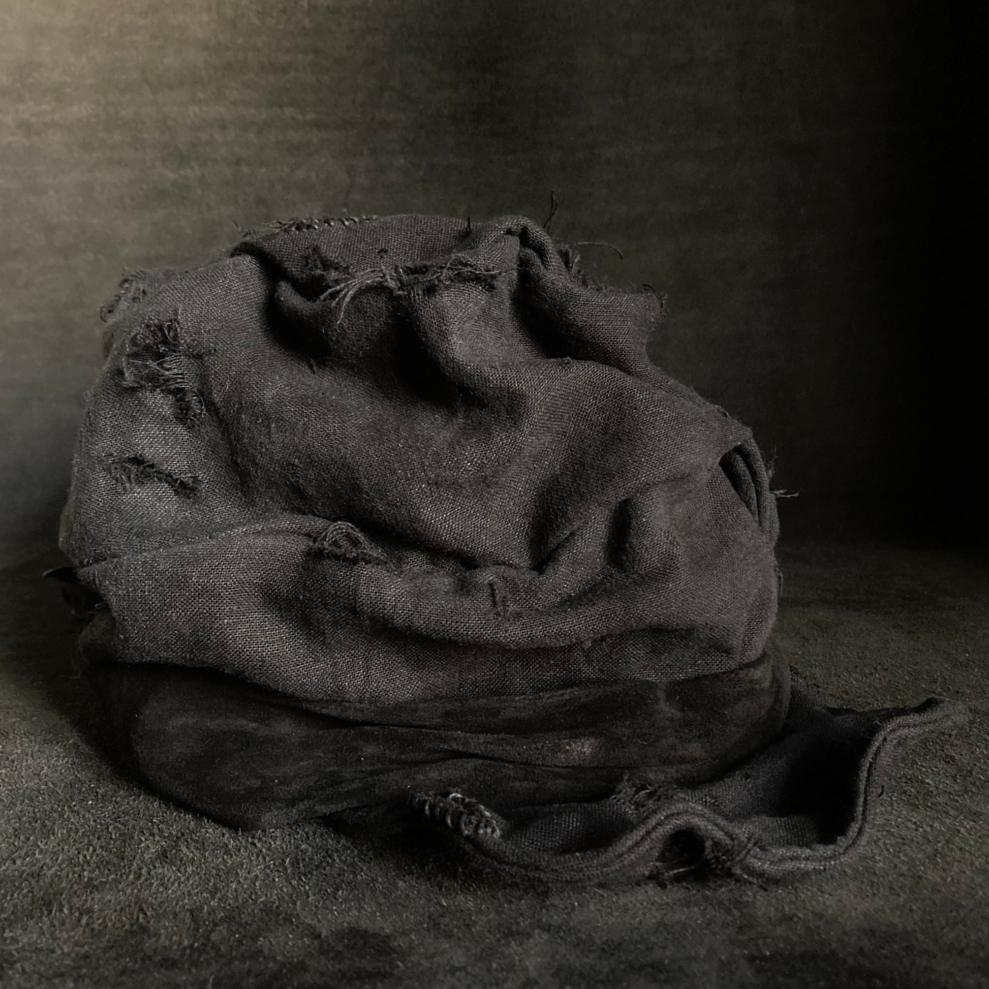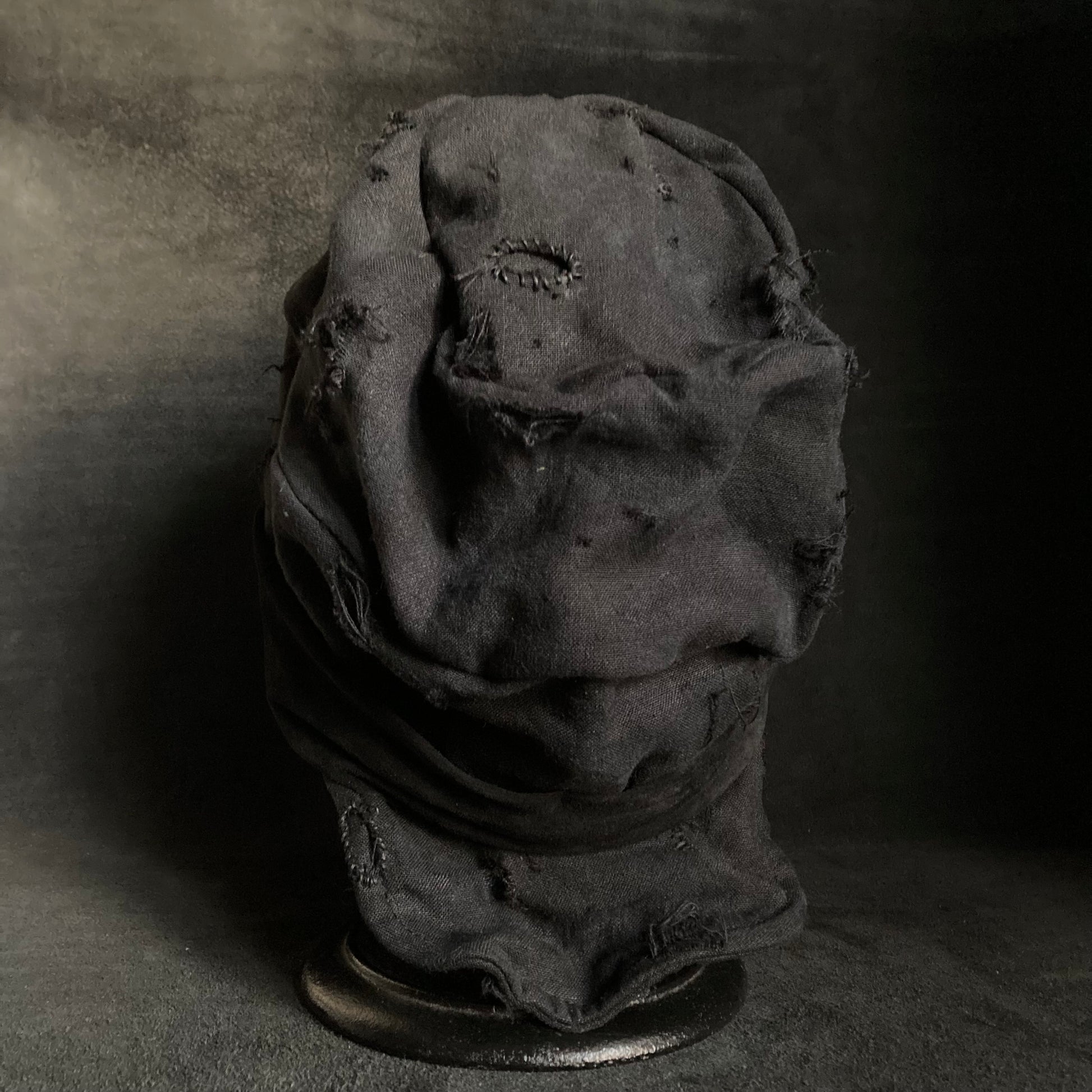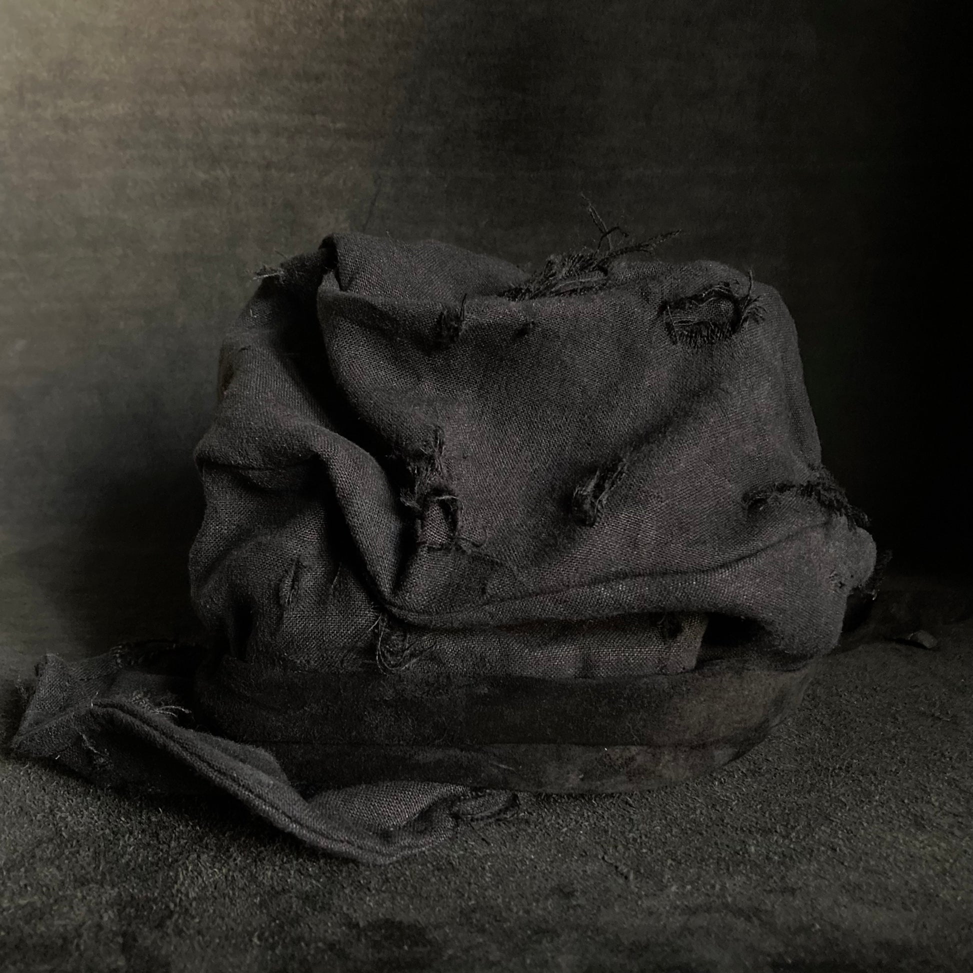 Black linen damage martial turn cap