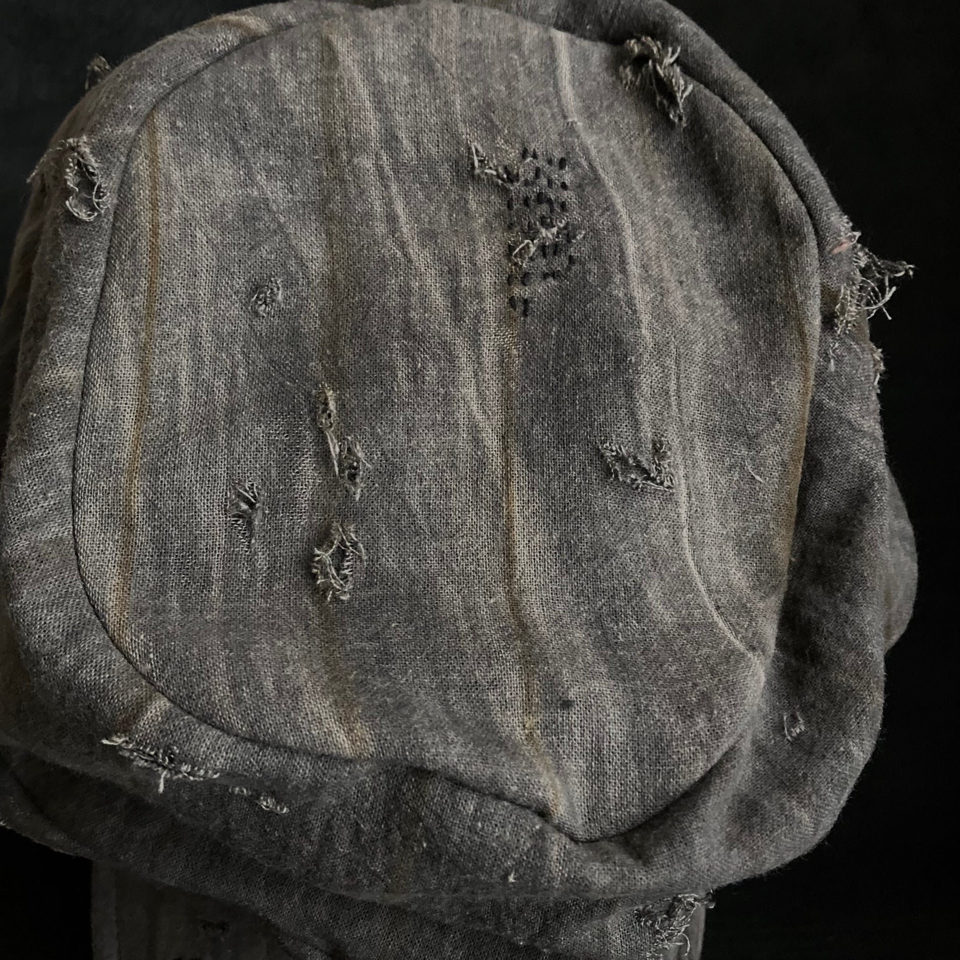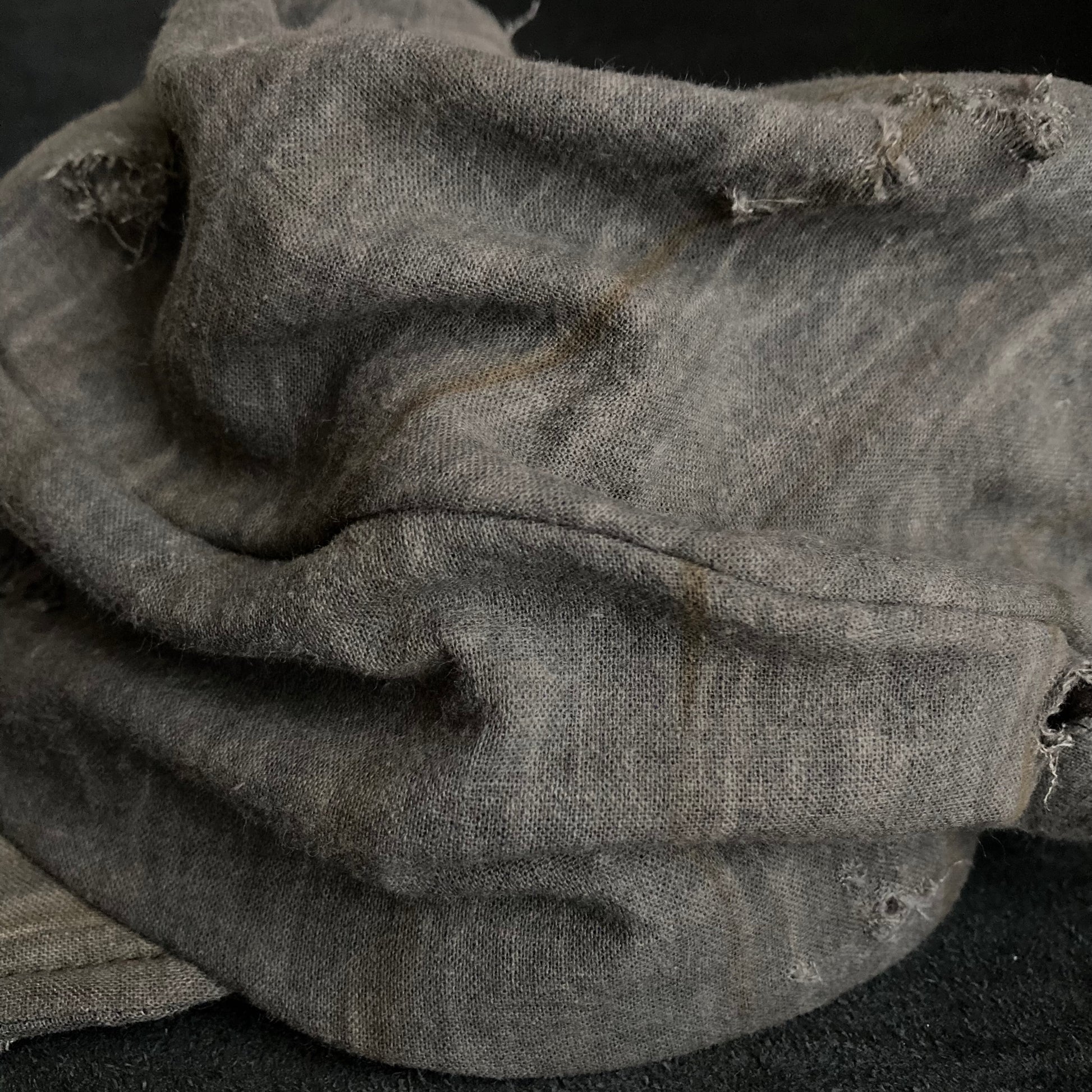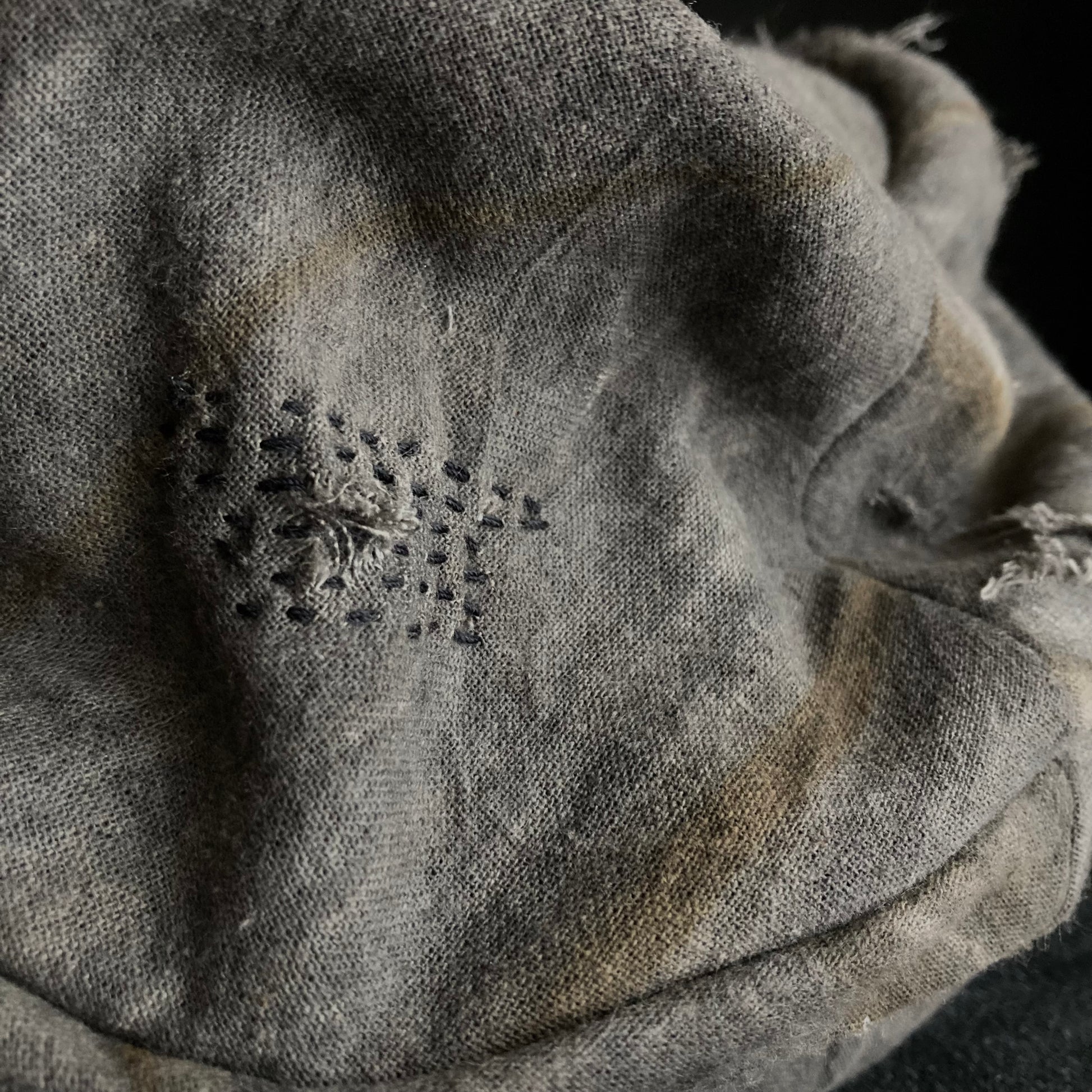 墨と柿渋の重ね染めの古布。