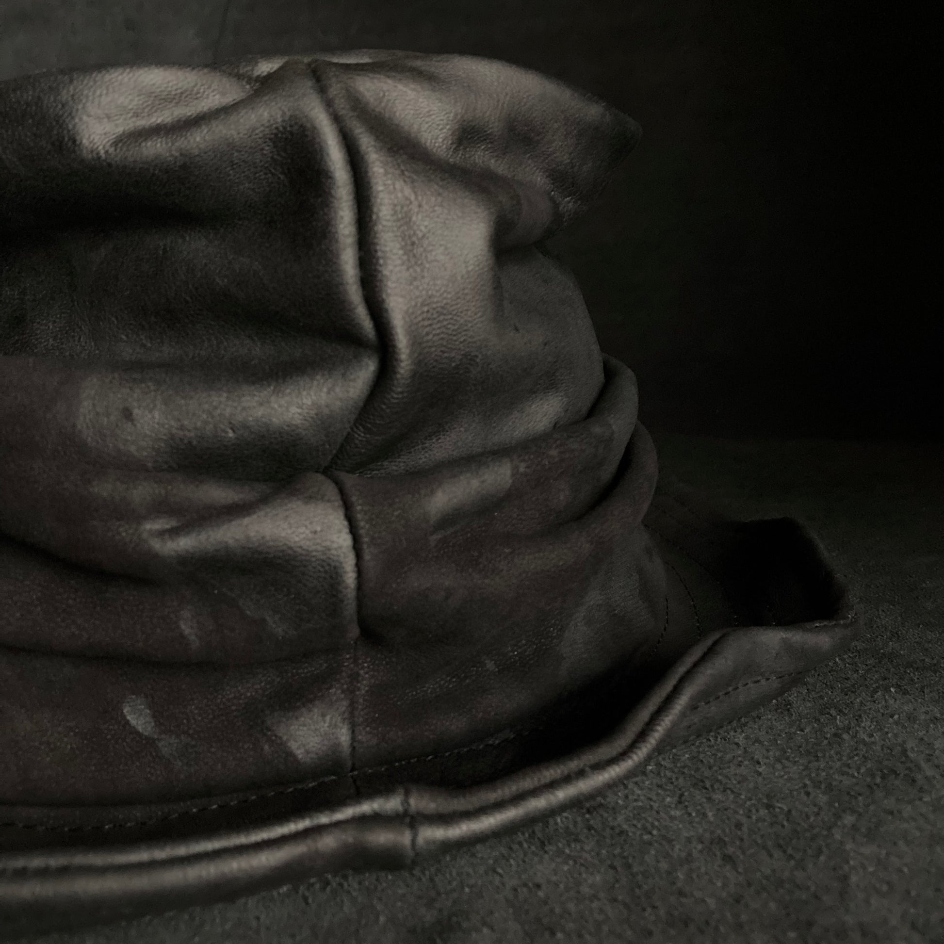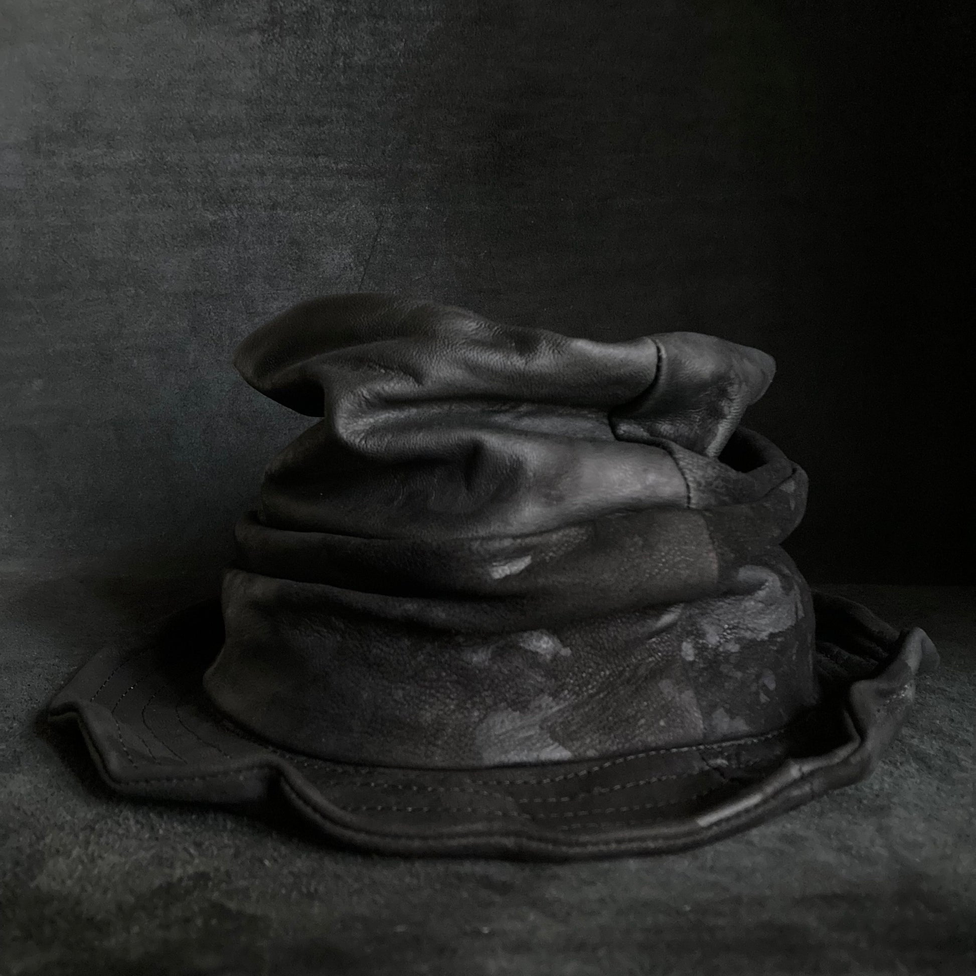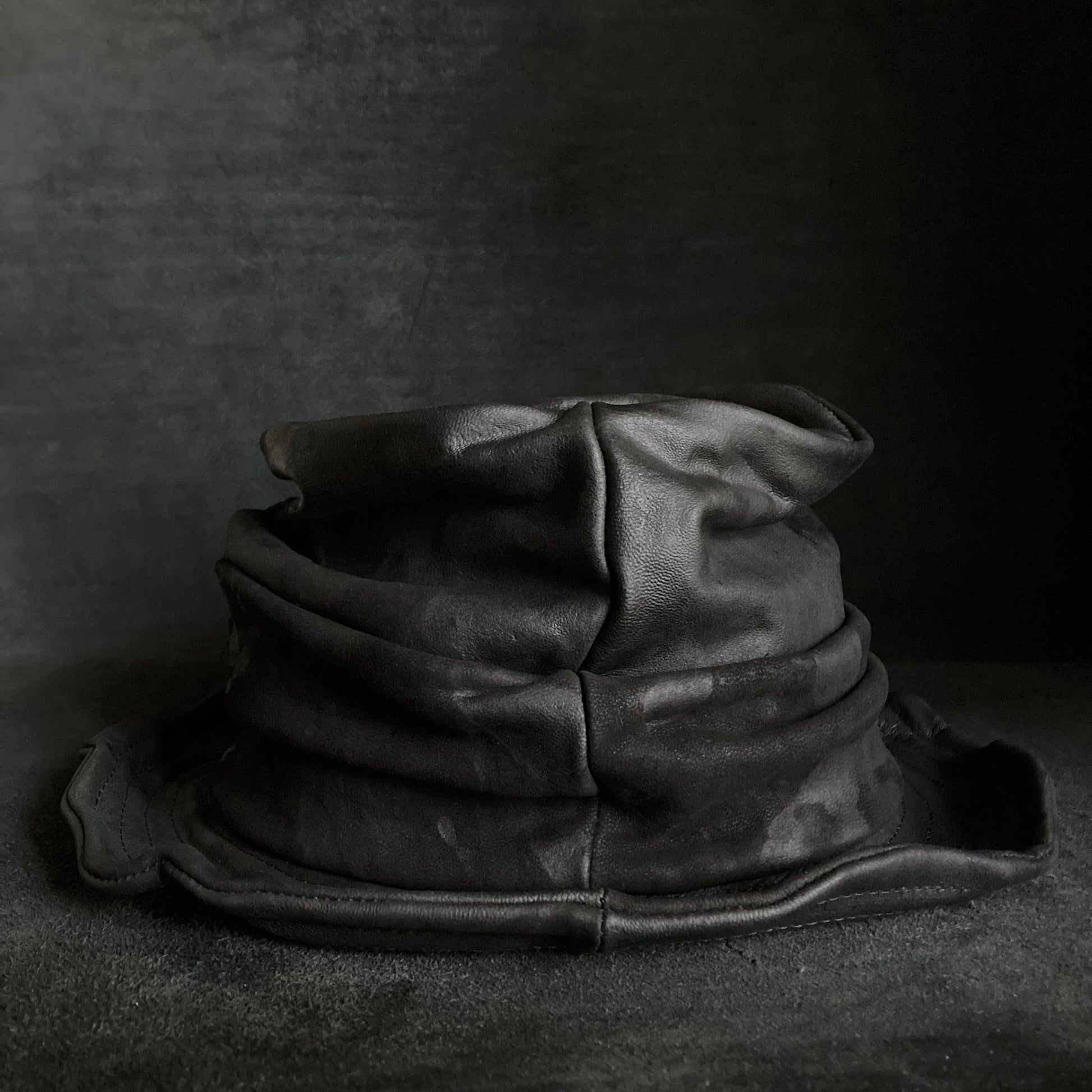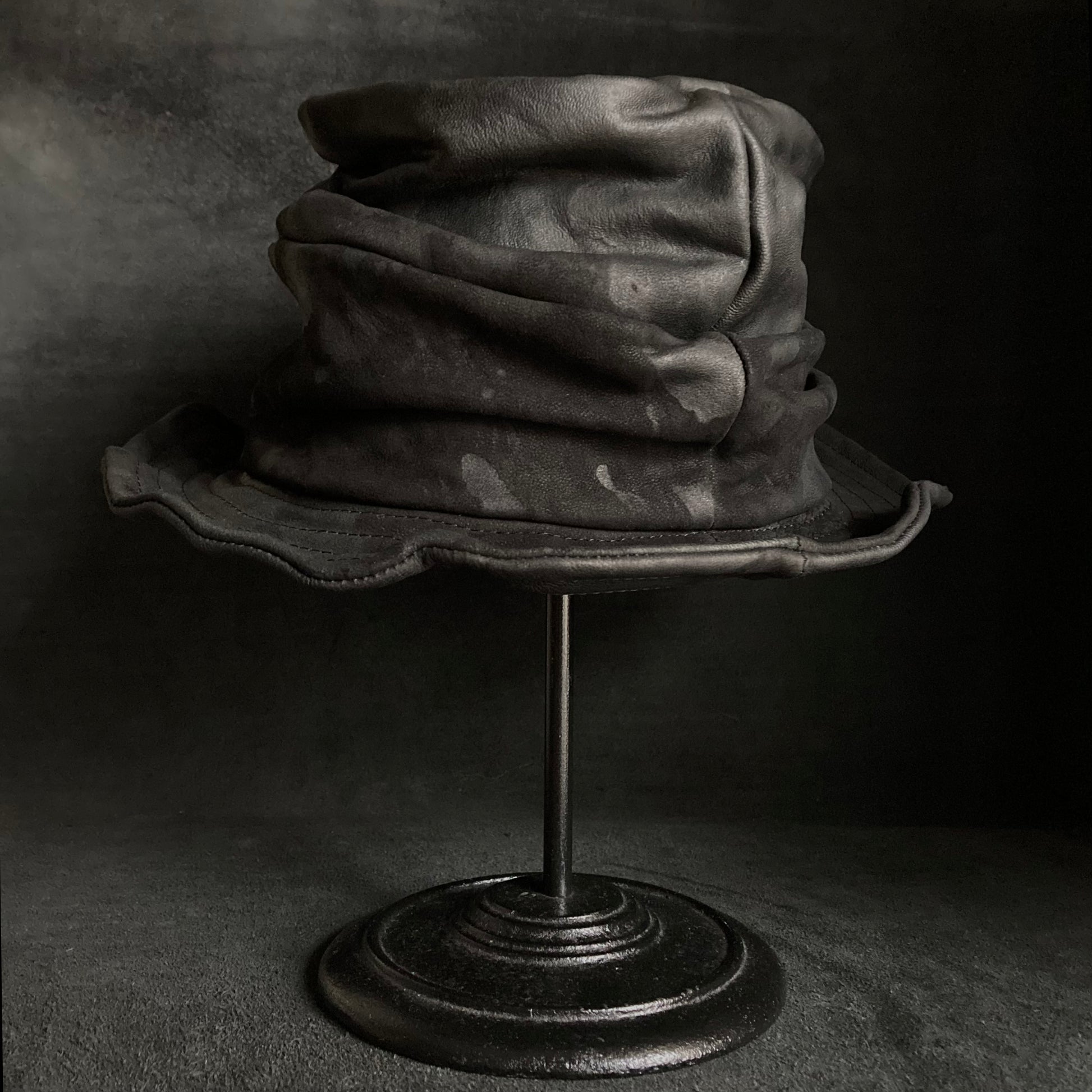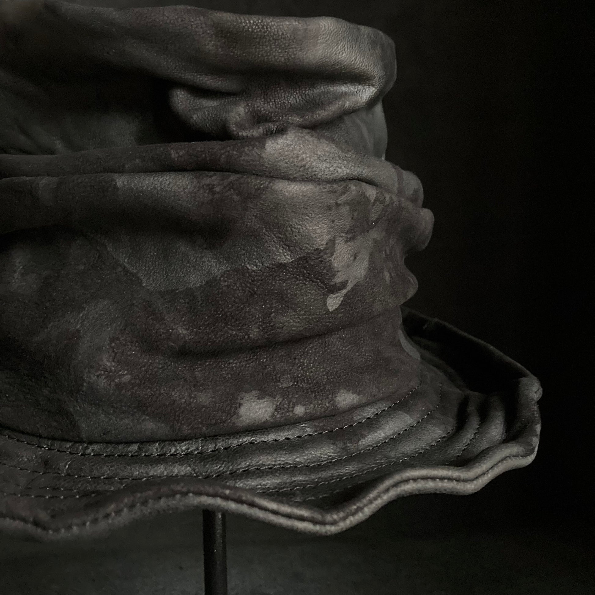 Bleached black leather turn bucket hat