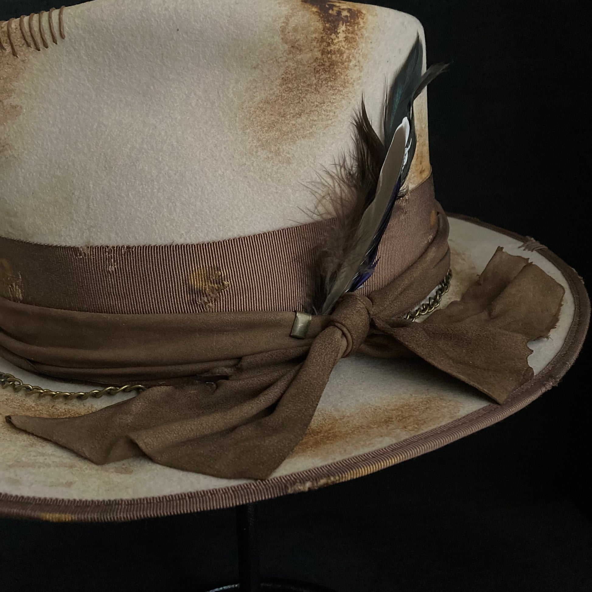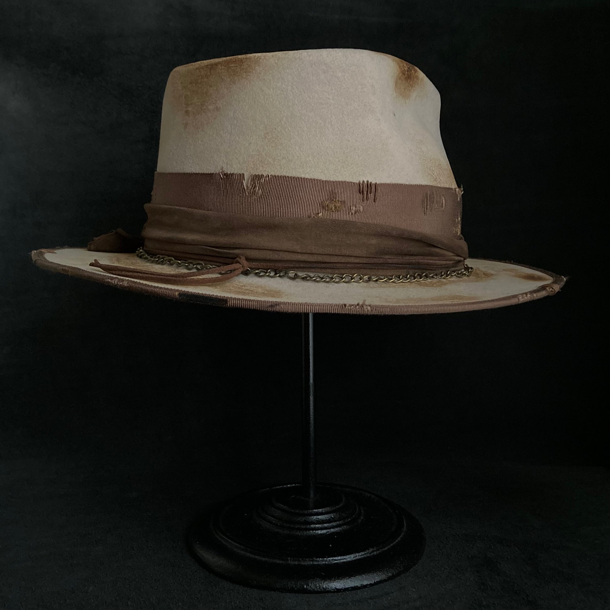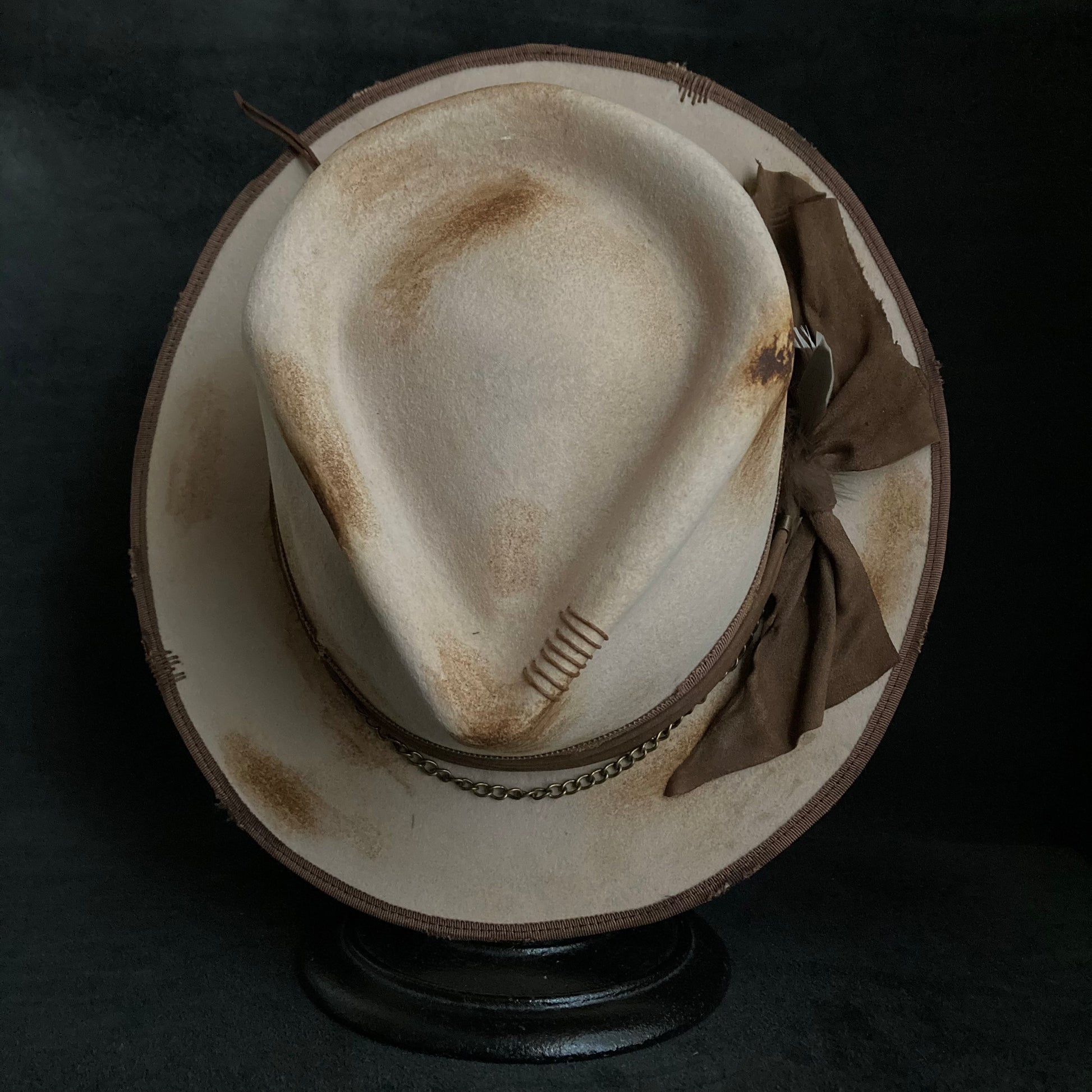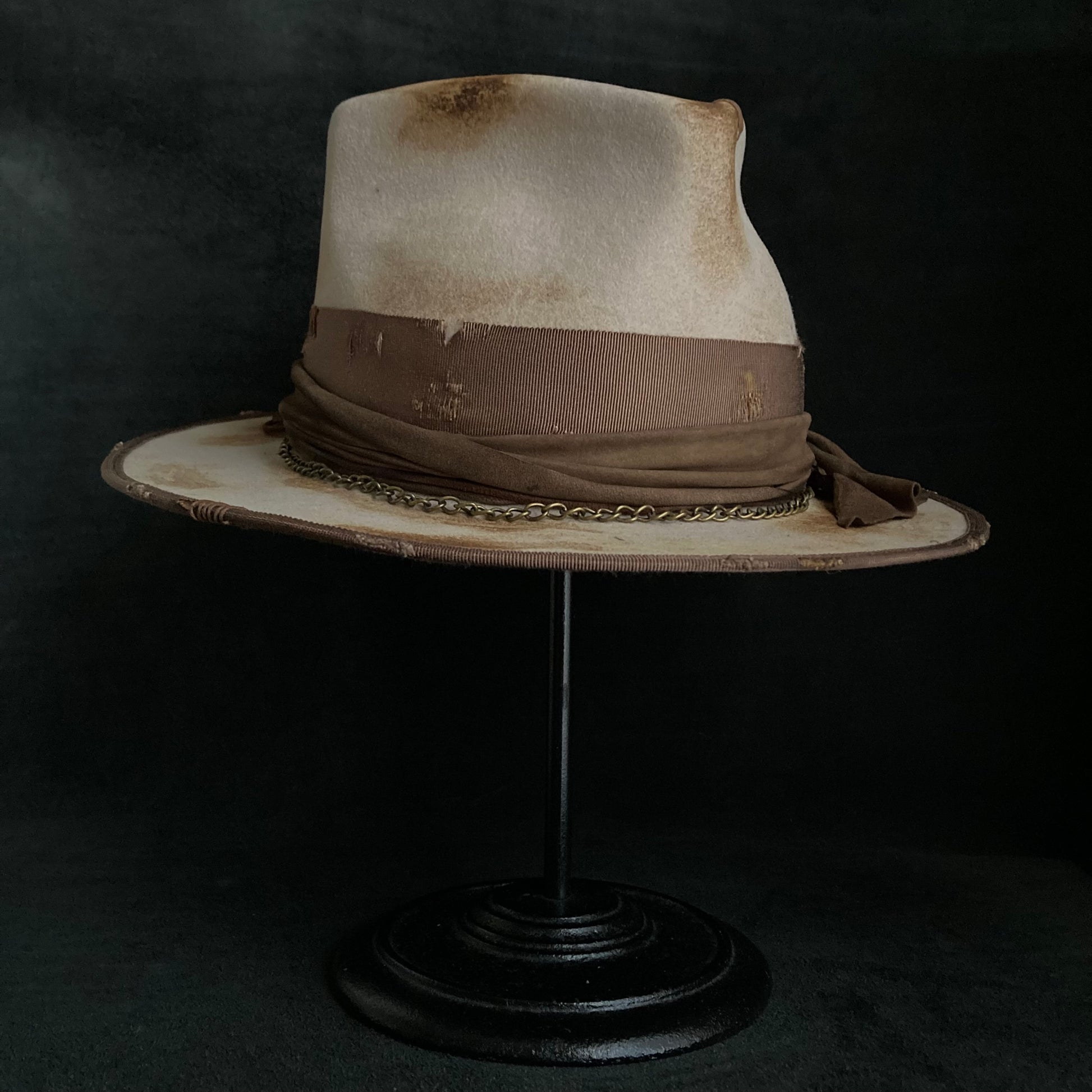 一顶用部分烧焦的美利奴羊毛制成的软呢帽。