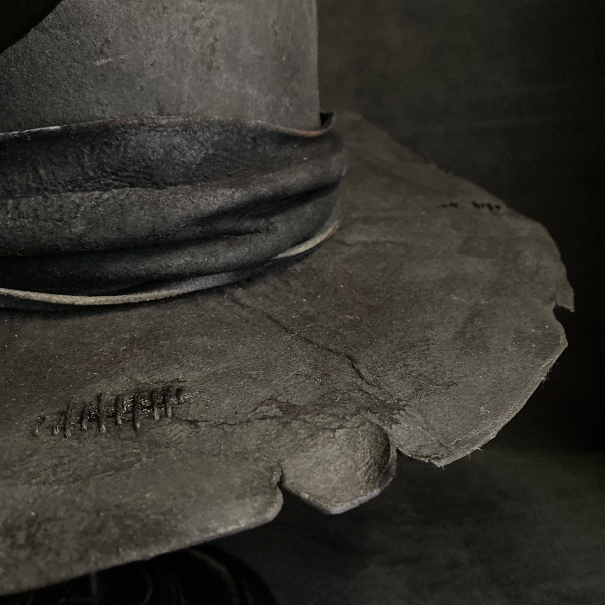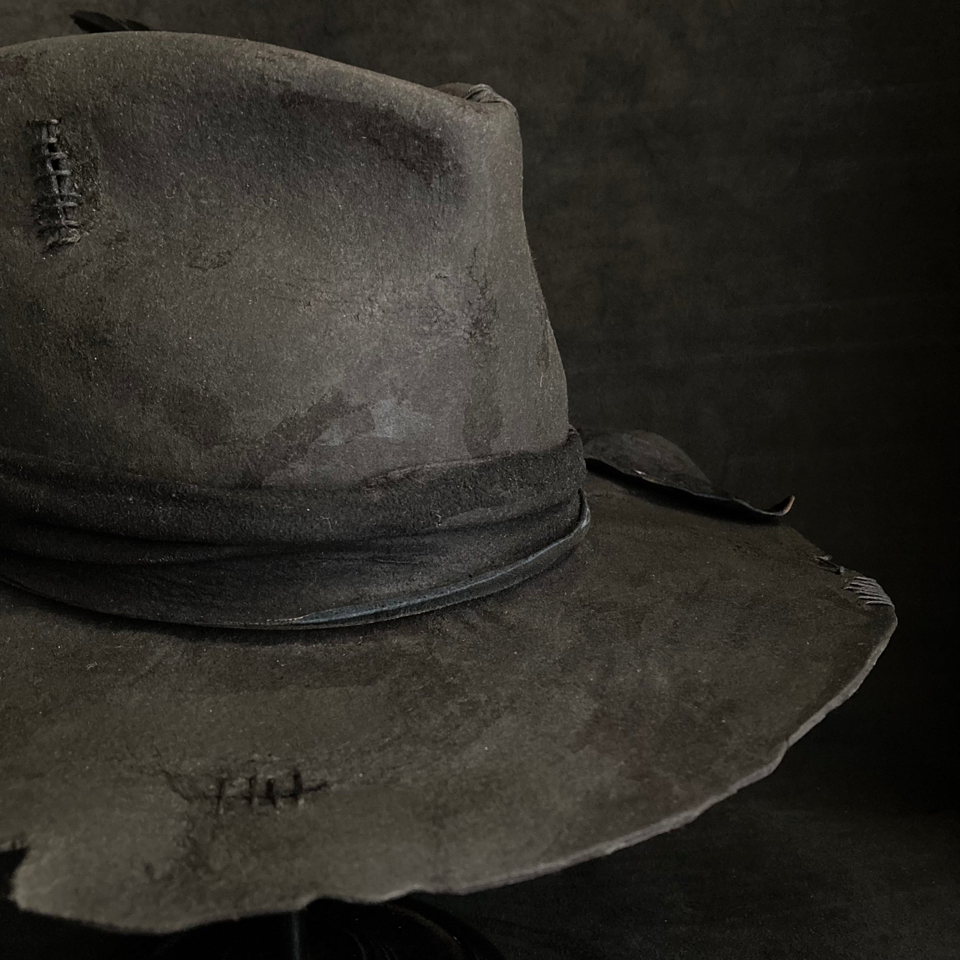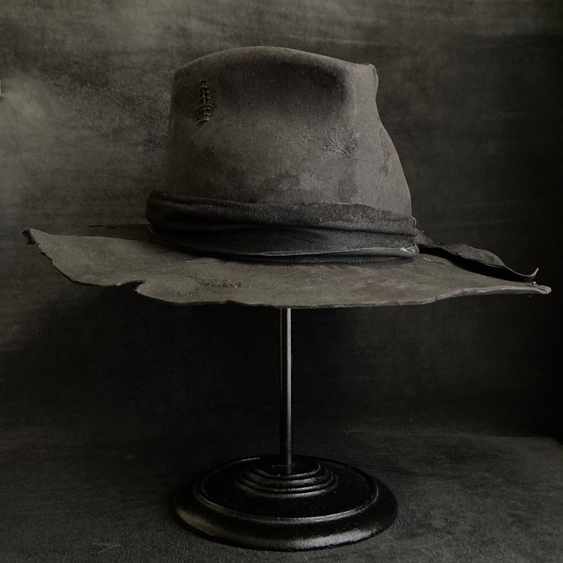 Charcoal wax stitch broken fedora hat