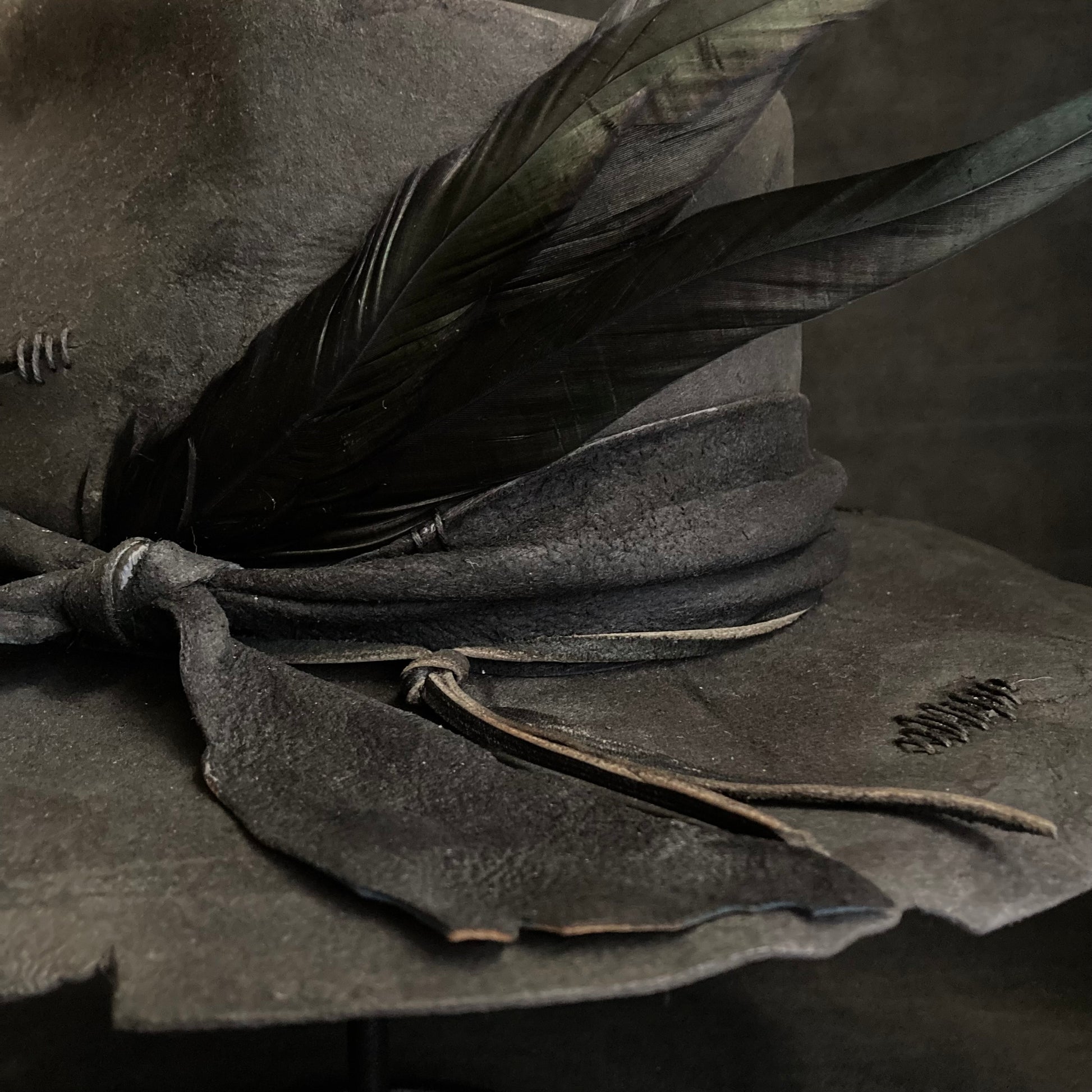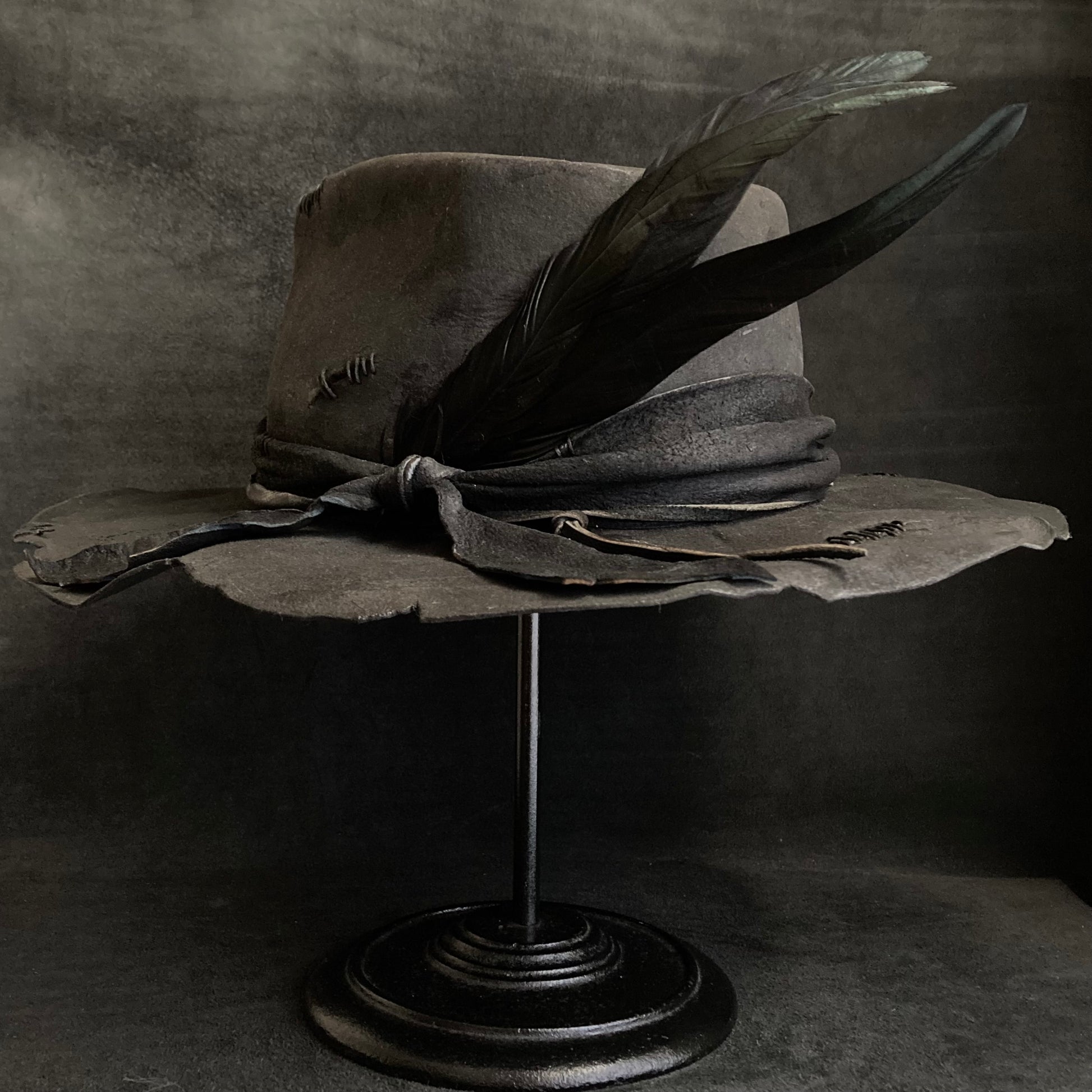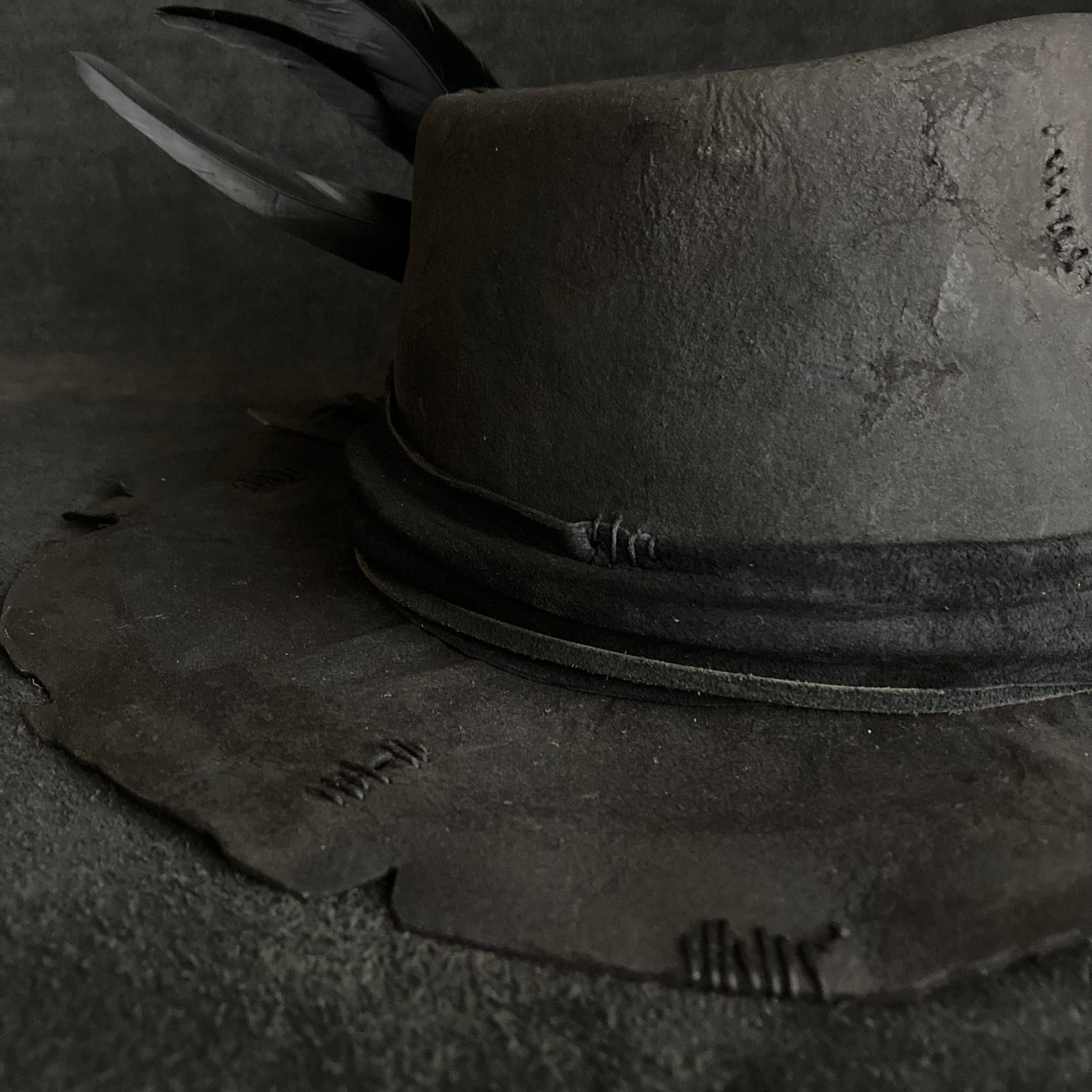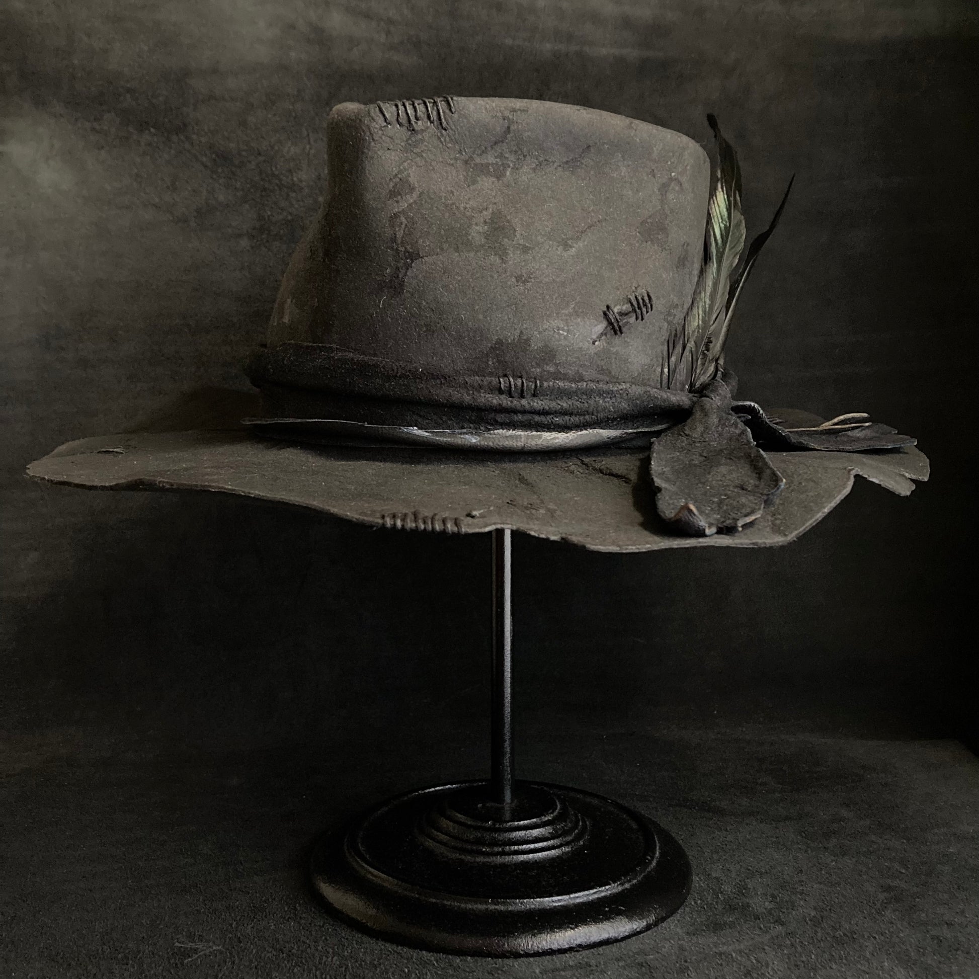 Charcoal wax stitch broken fedora hat