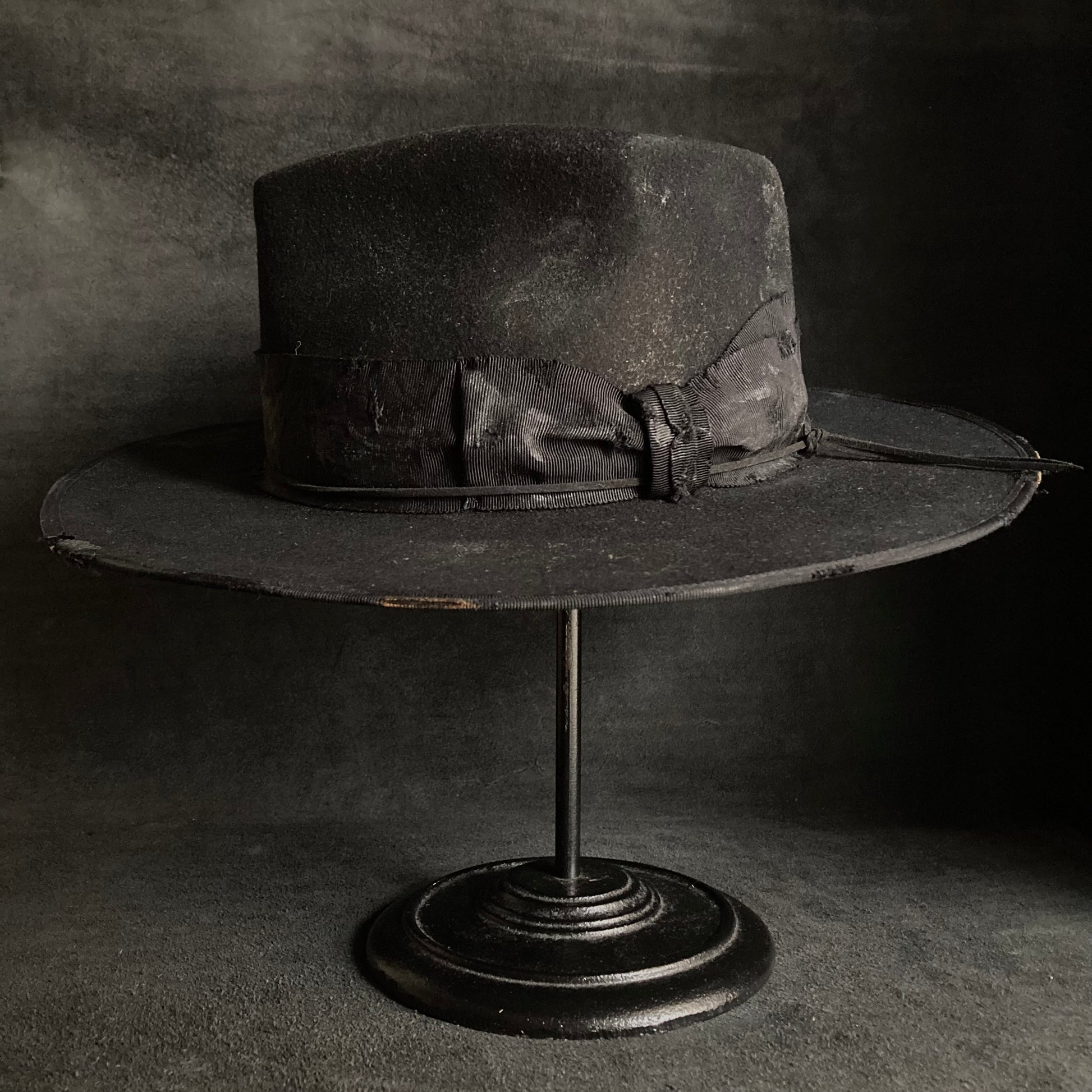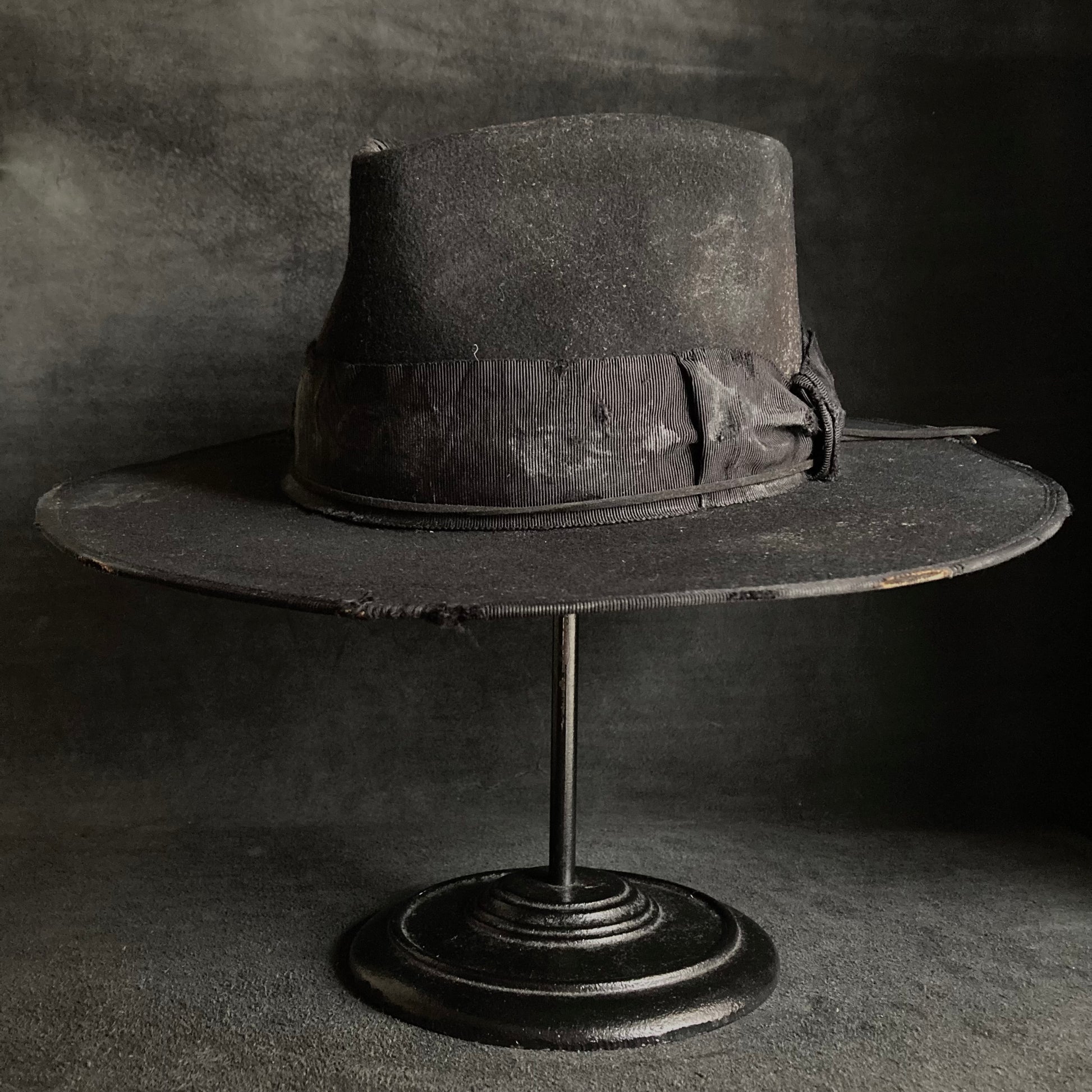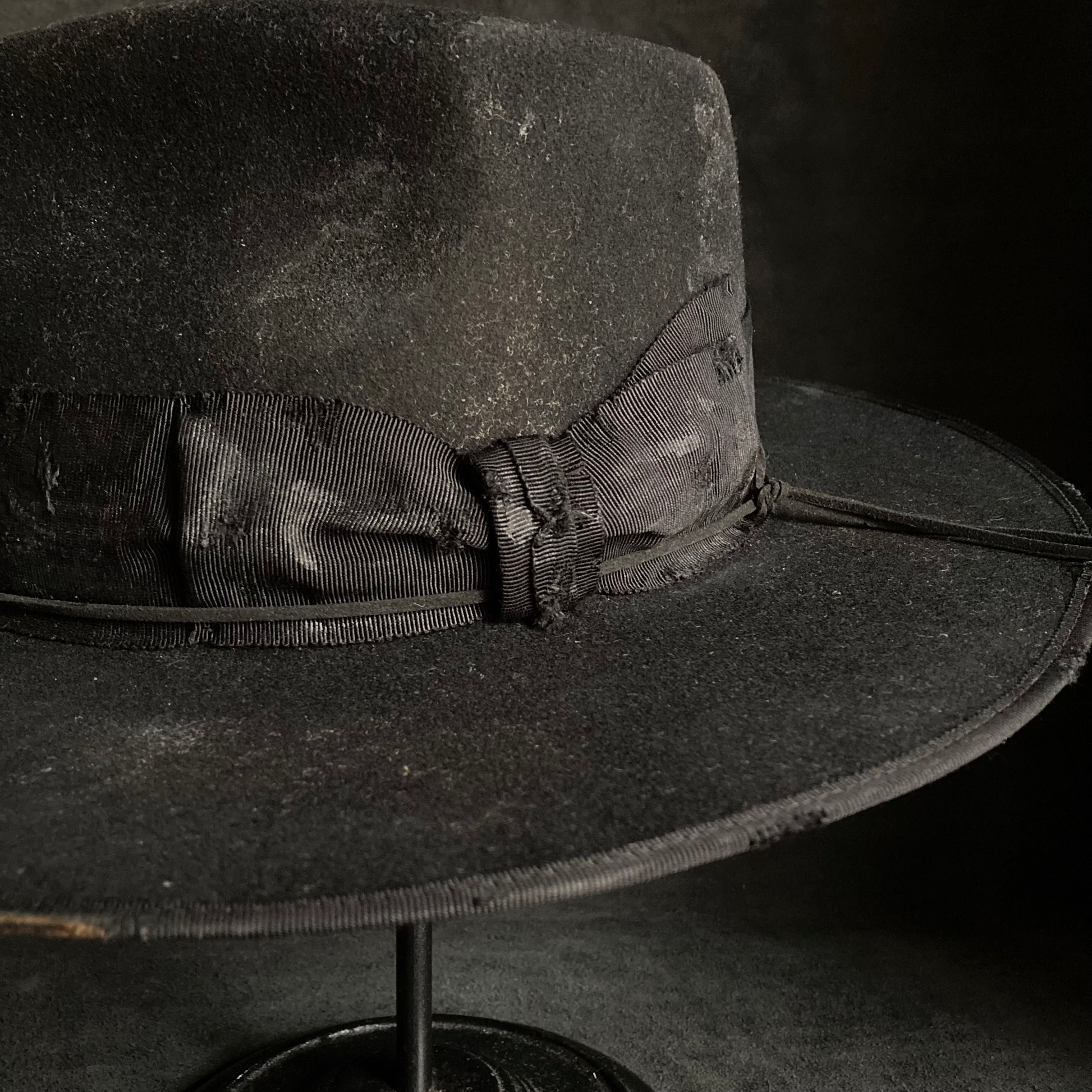 帽檐采用仿旧罗缎丝带制成,饰有滚边。