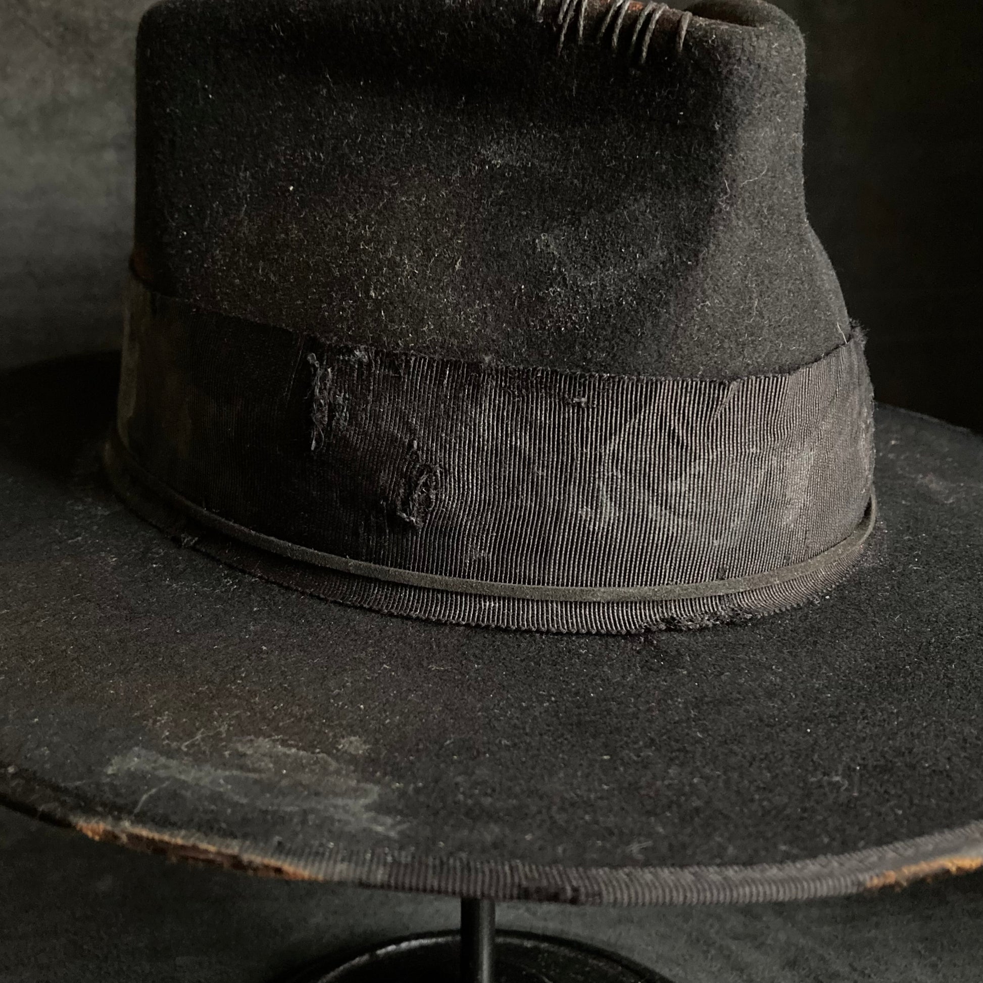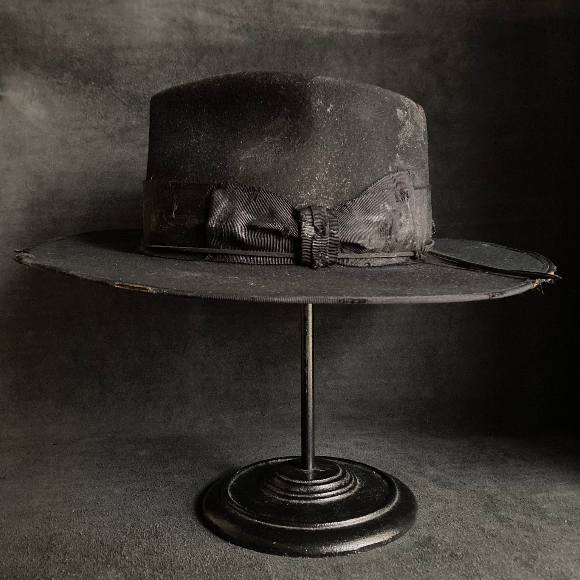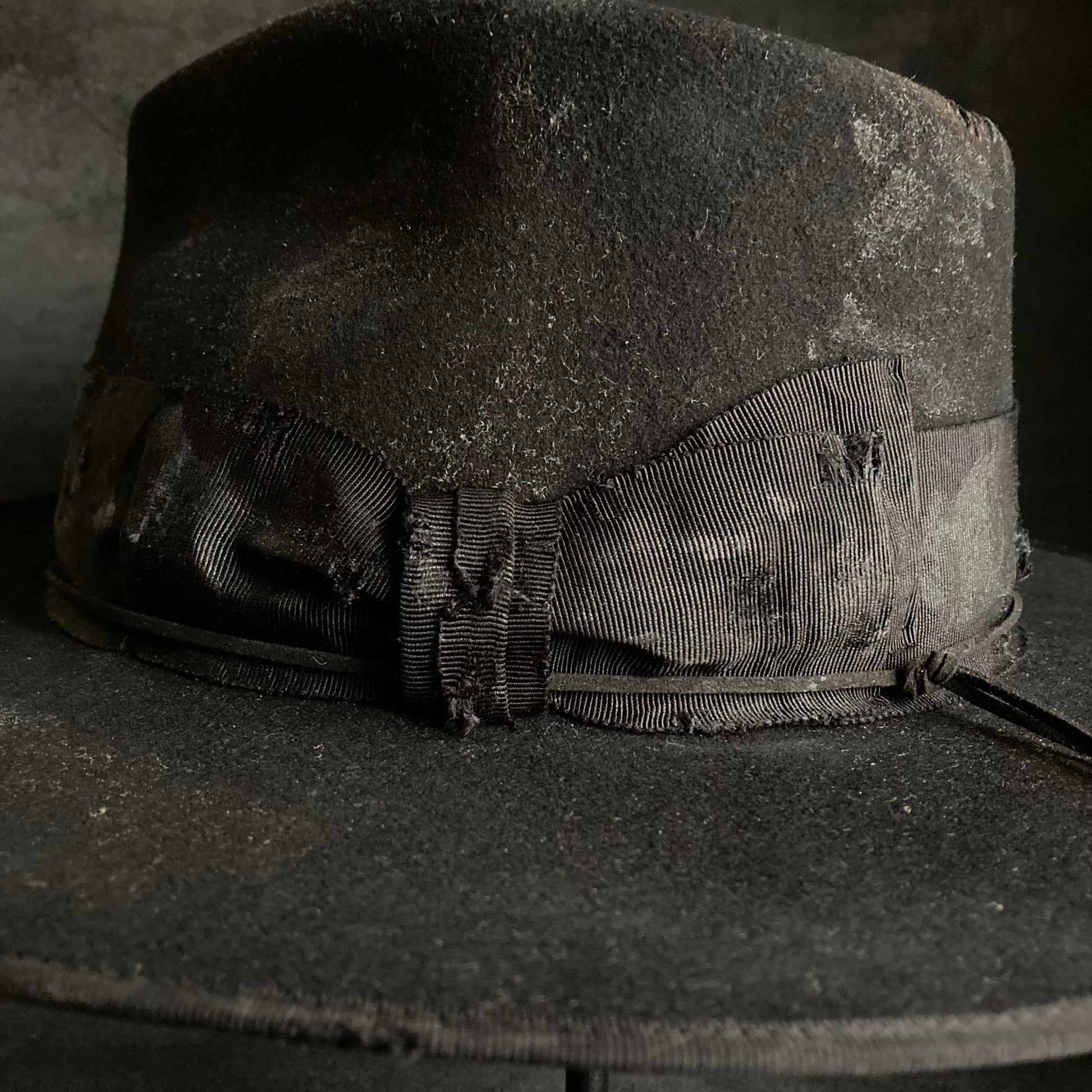 帽檐采用仿旧罗缎丝带制成,饰有滚边。