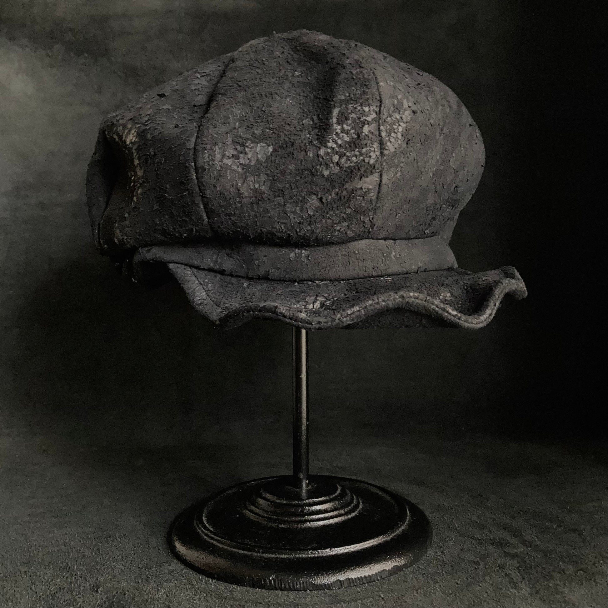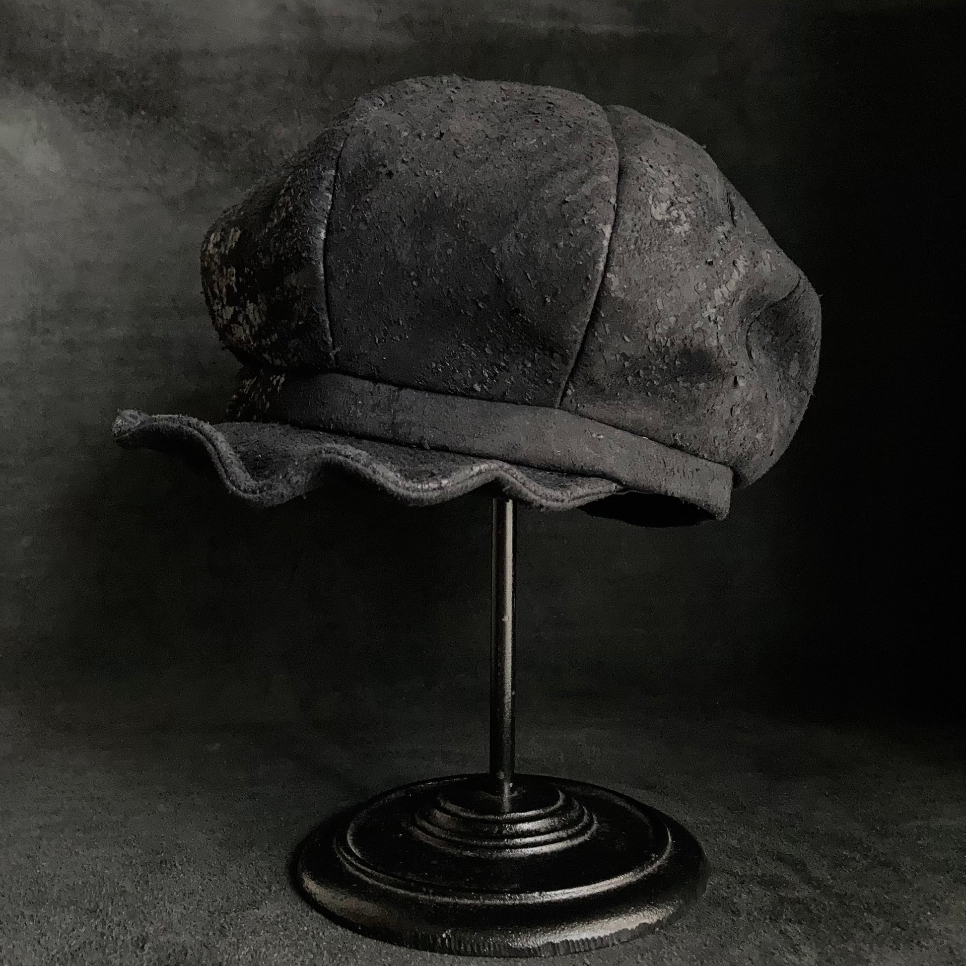 Scrape black leather casquette
